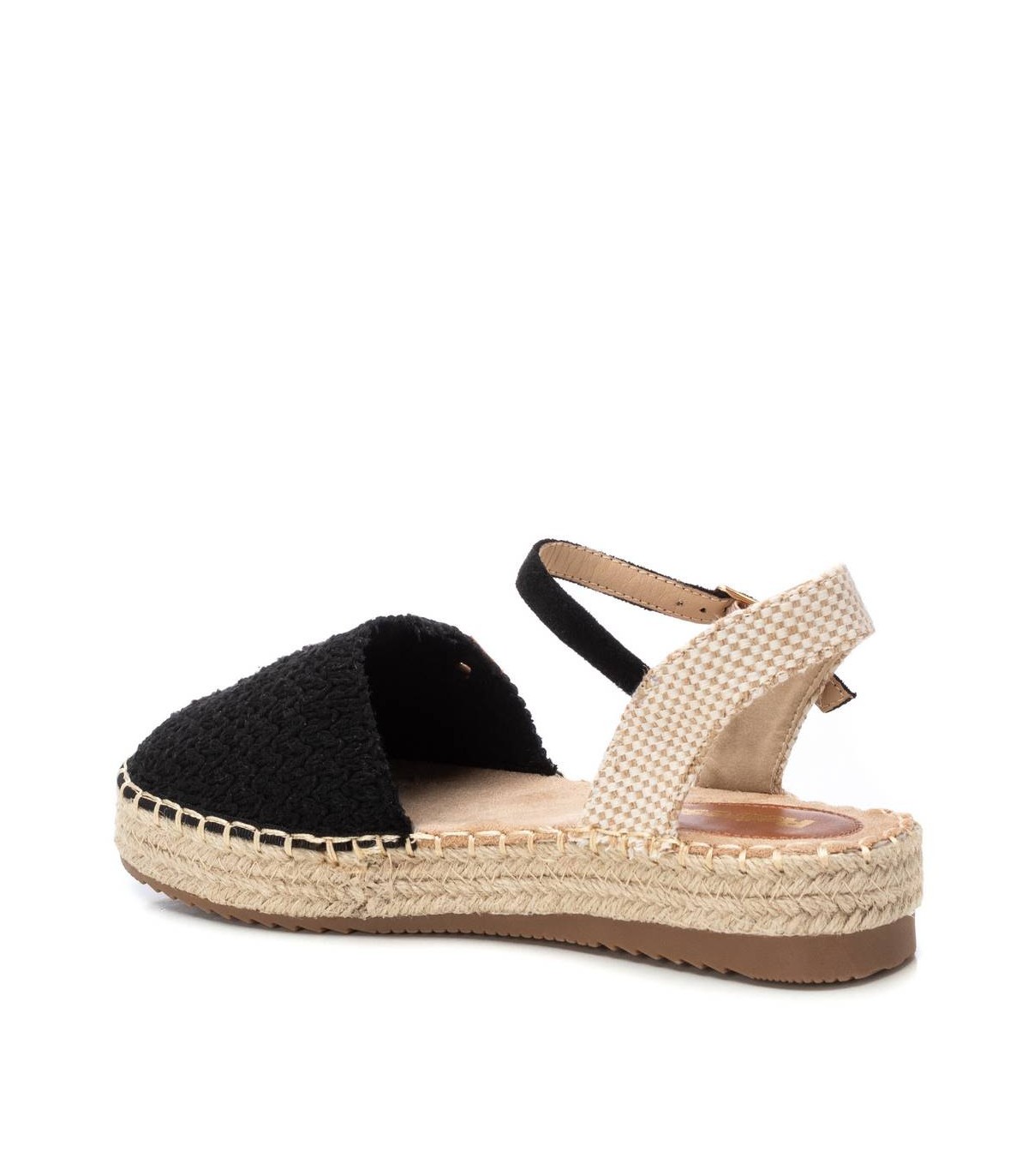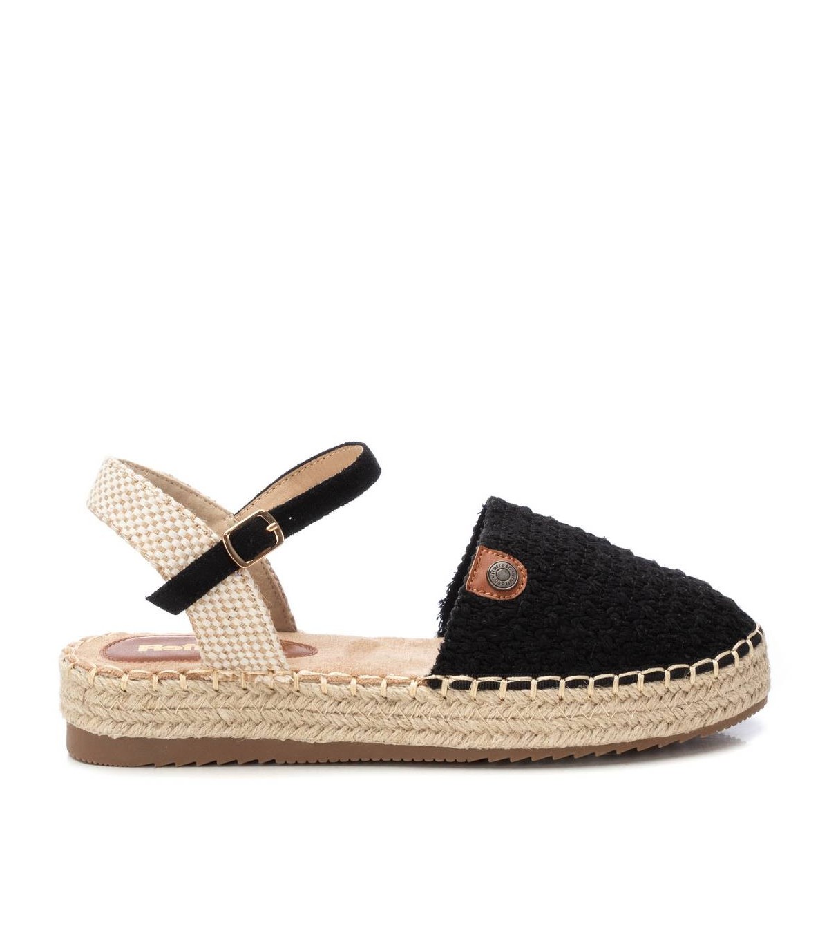 Alpargata tipo valenciana de la marca Refresh. Fabricada en textil. Pulsera trasera con hebilla. Cómoda planta. Piso recubierto en yute trenzado con suela de goma antideslizante. Este modelo ha obtenido el certificado vegano por la organización mundial PETA (Organización de los derechos de los animales).