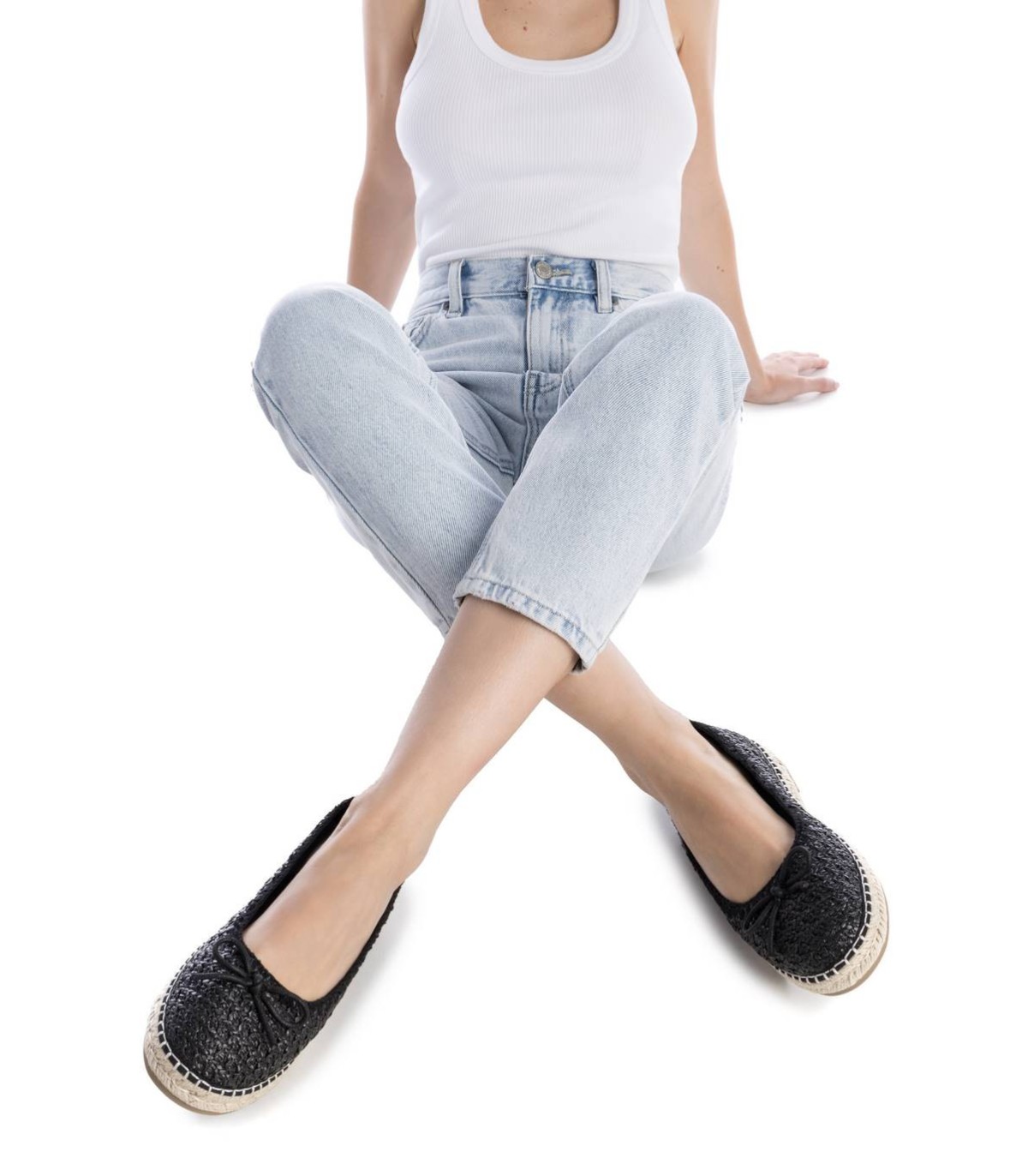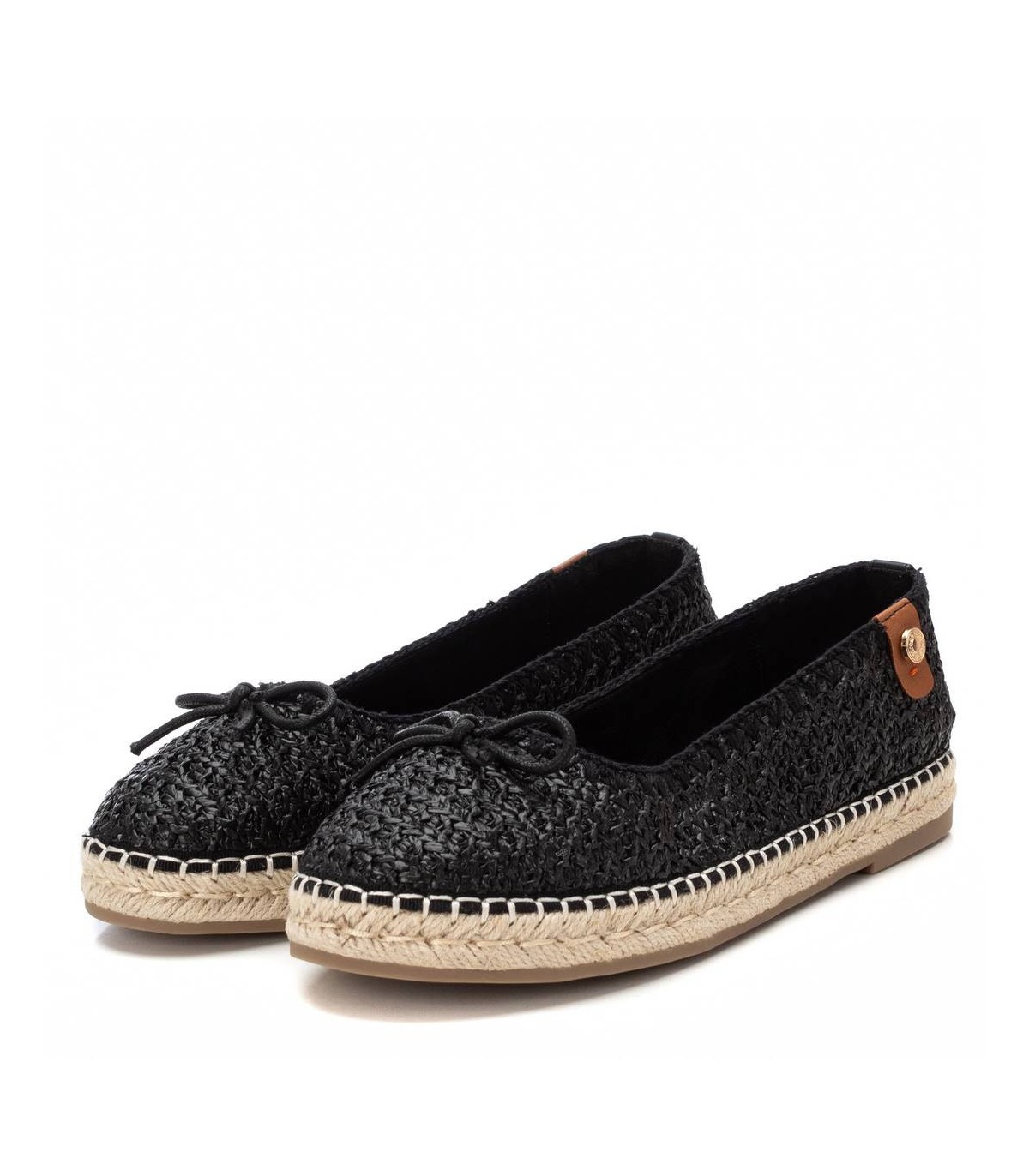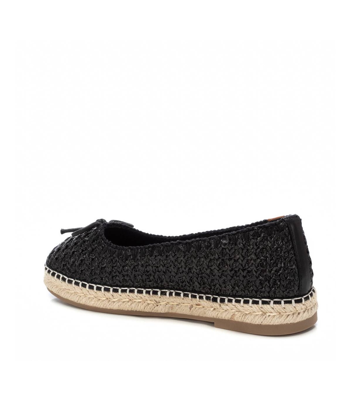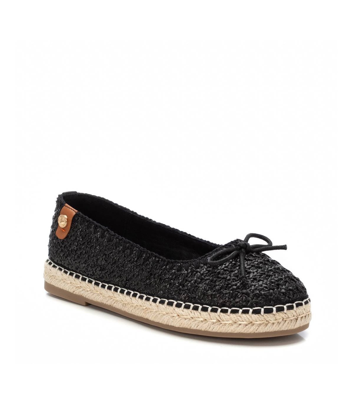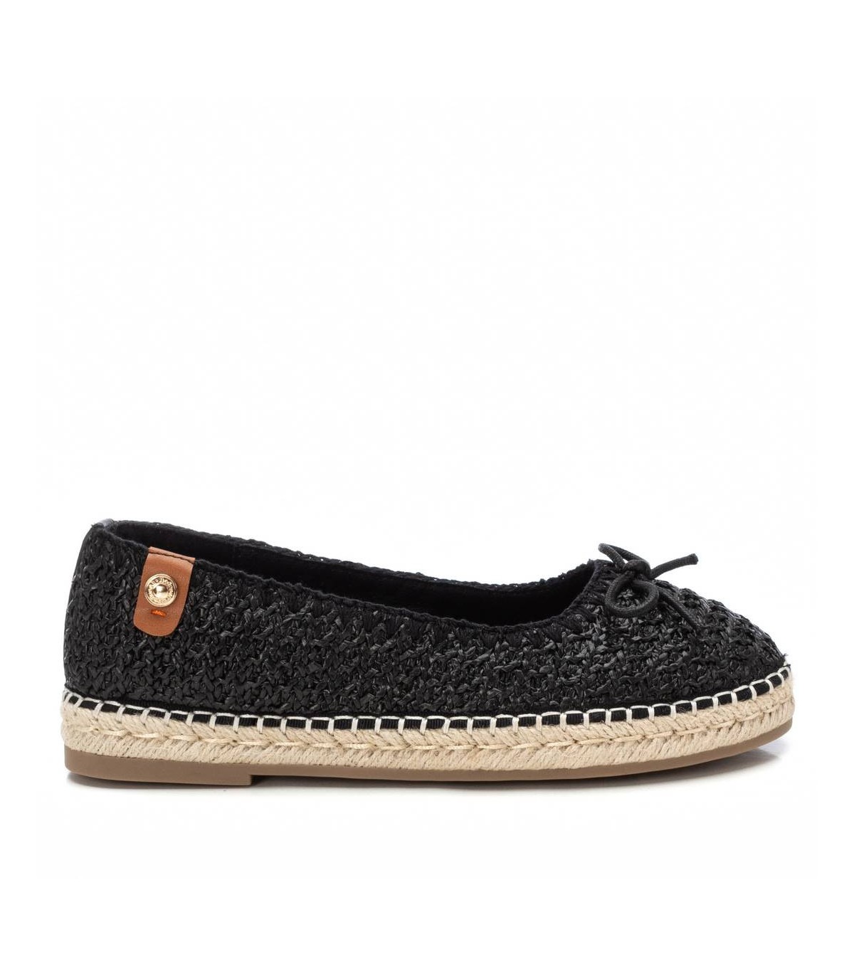 Zapato tipo bailarina, de la marca Refresh. Fabricado en material que simula rafia. Lazo decorativo. Piso de 3 cm con tira de yute. Suela de goma antideslizante. Este modelo ha obtenido el certificado vegano por la organización mundial PETA (Organización de los derechos de los animales).