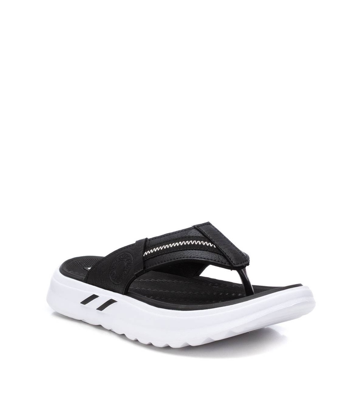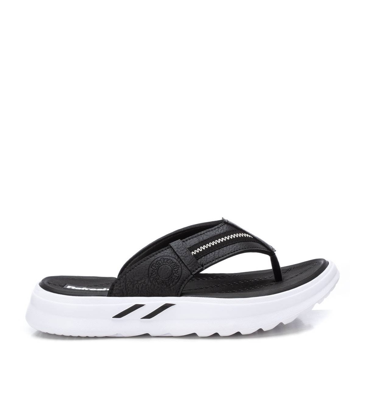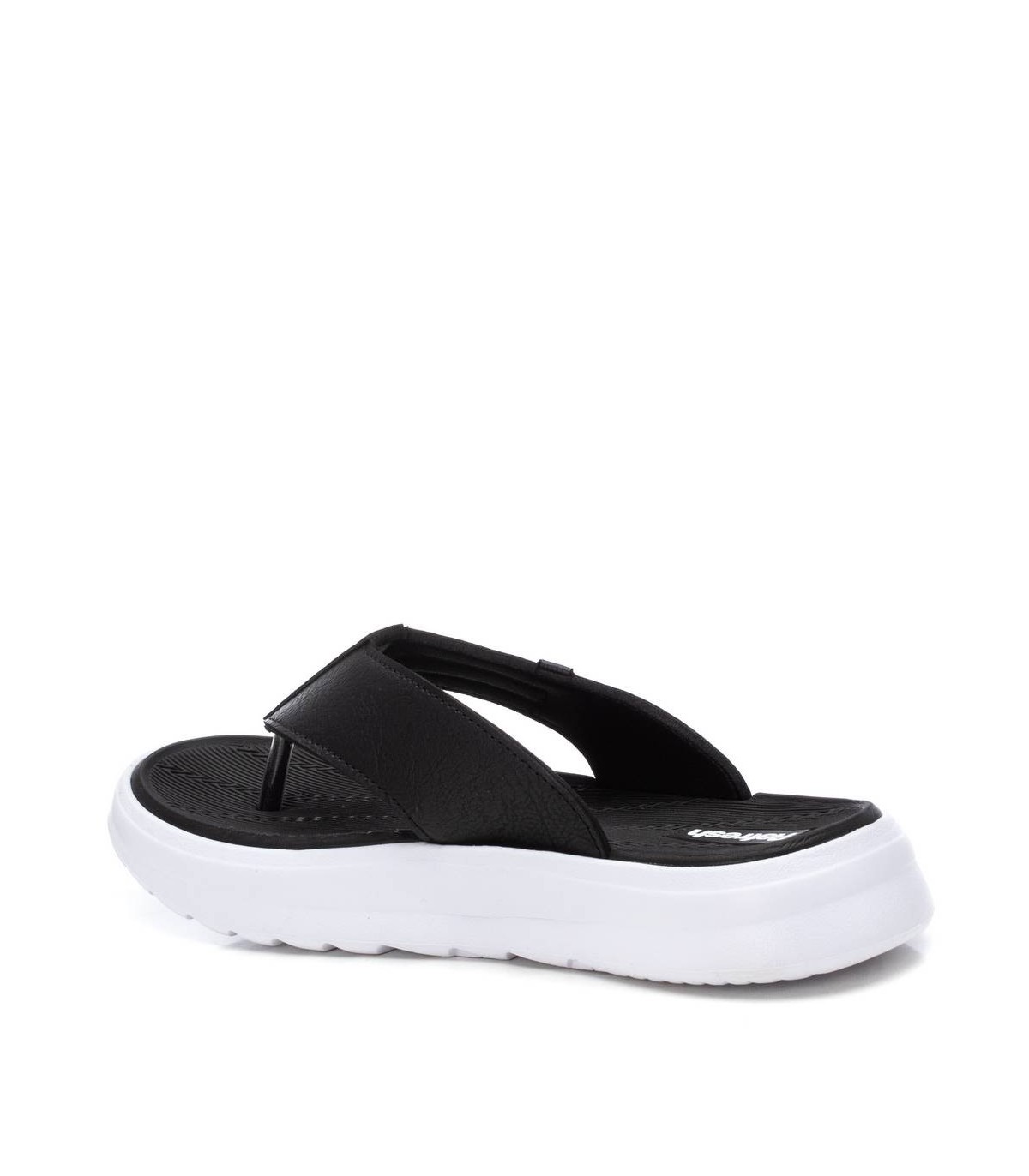 Sandalia de hombre, de la marca Refresh. Fabricada en material que imita a la piel con logo de la marca grabado en el lateral. Suela gruesa de caucho antideslizante. Este modelo ha obtenido el certificado vegano por la organización mundial PETA (Organización de los derechos de los animales).