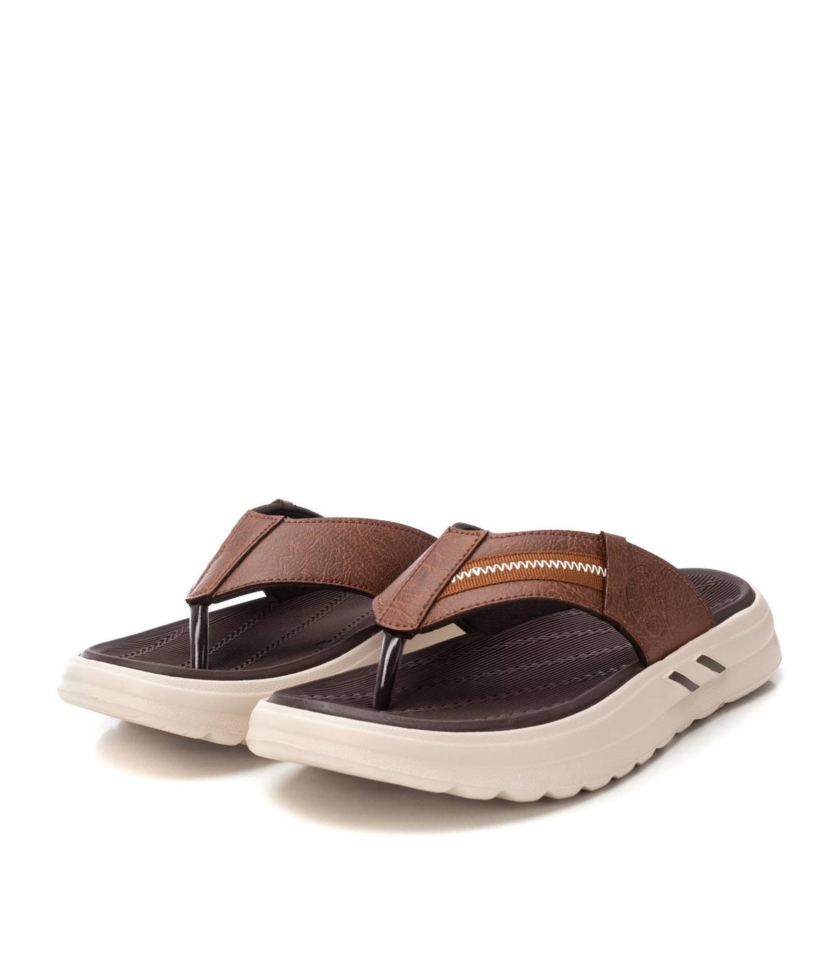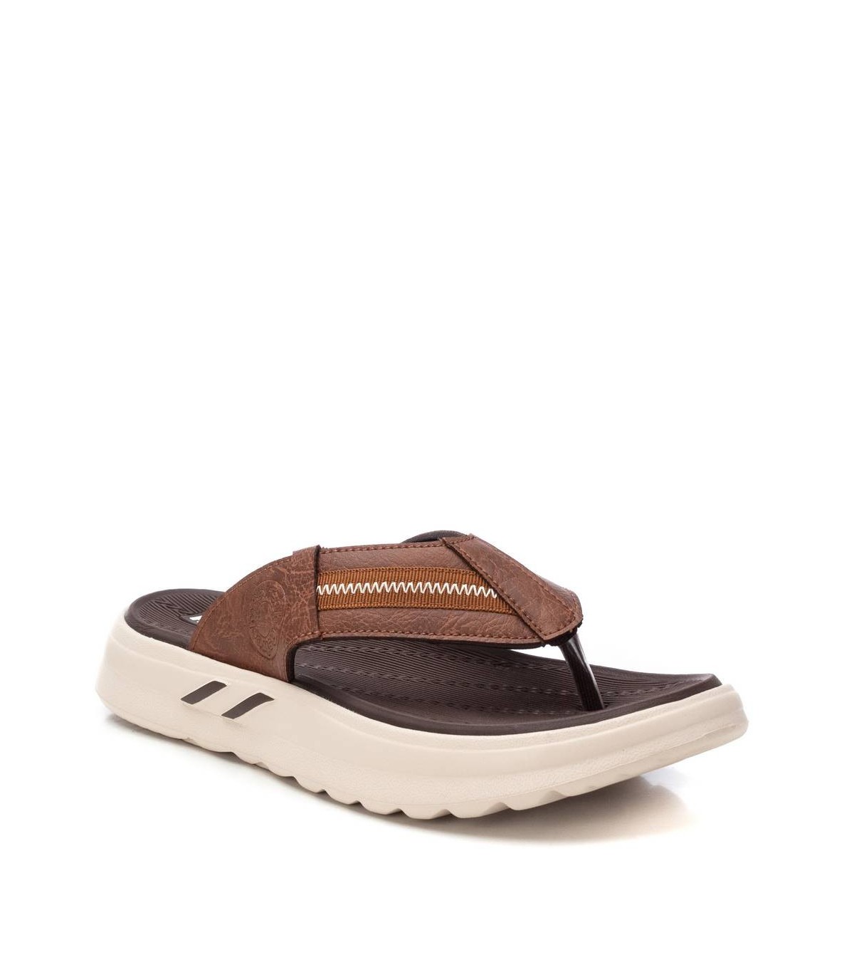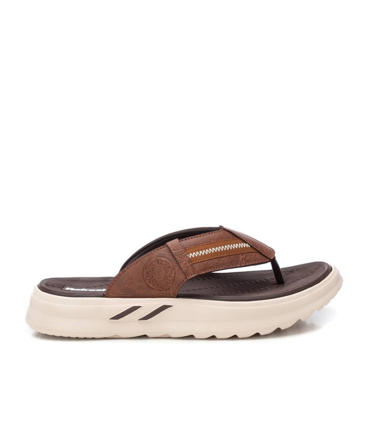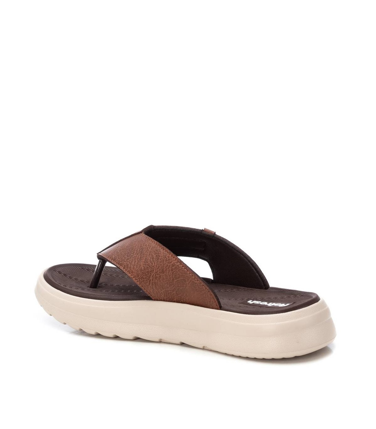 Sandalia de hombre, de la marca Refresh. Fabricada en material que imita a la piel con logo de la marca grabado en el lateral. Suela gruesa de caucho antideslizante. Este modelo ha obtenido el certificado vegano por la organización mundial PETA (Organización de los derechos de los animales).