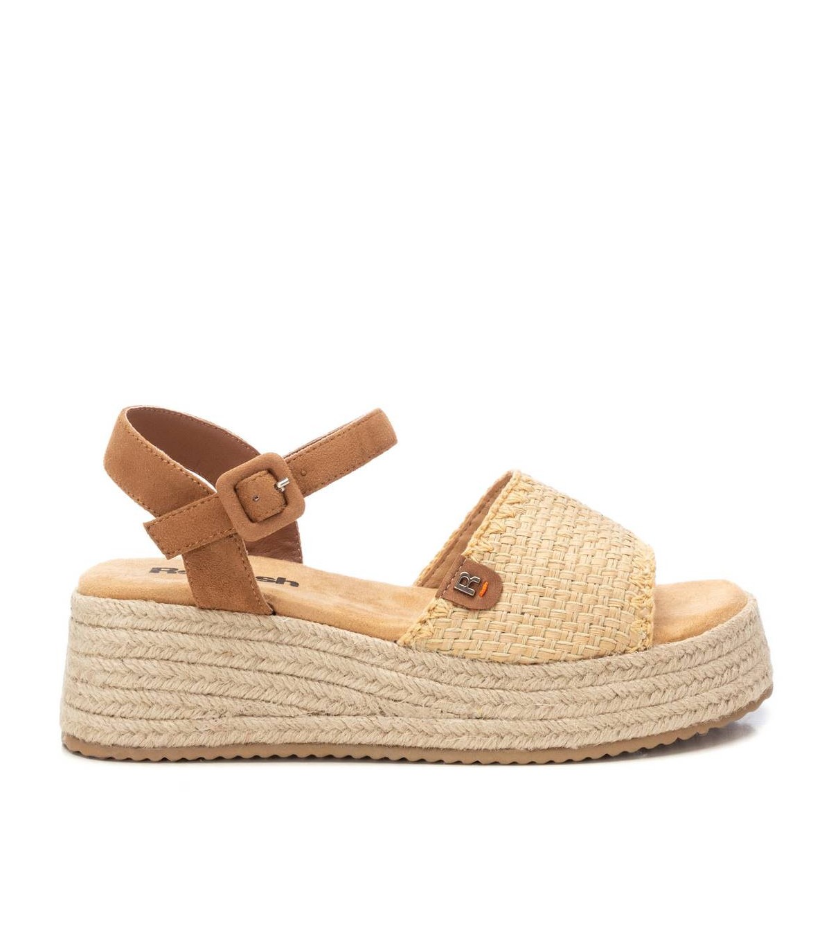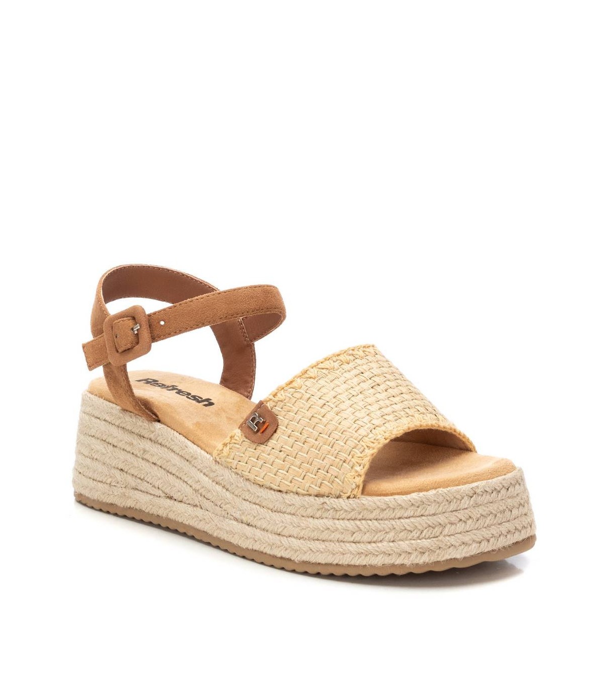 Sandalia de mujer, de la marca Refresh. Con diseño de pala sencilla con pulsera trasera. Hebilla forrada para ajustar al tobillo. Cómoda planta acolchada. Plataforma de 6 cm recubierta con tiras de yute. Suela de goma antideslizante. Este modelo ha obtenido el certificado vegano por la organización mundial PETA (Organización de los derechos de los animales).