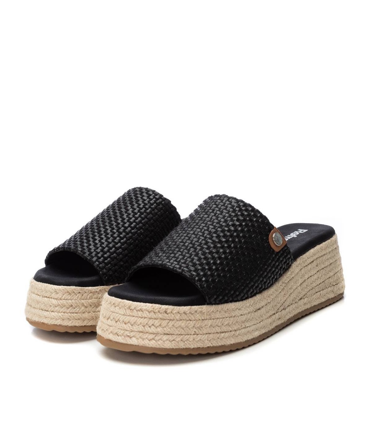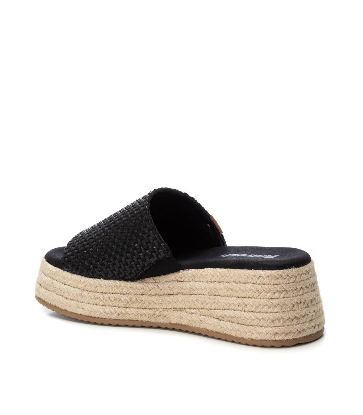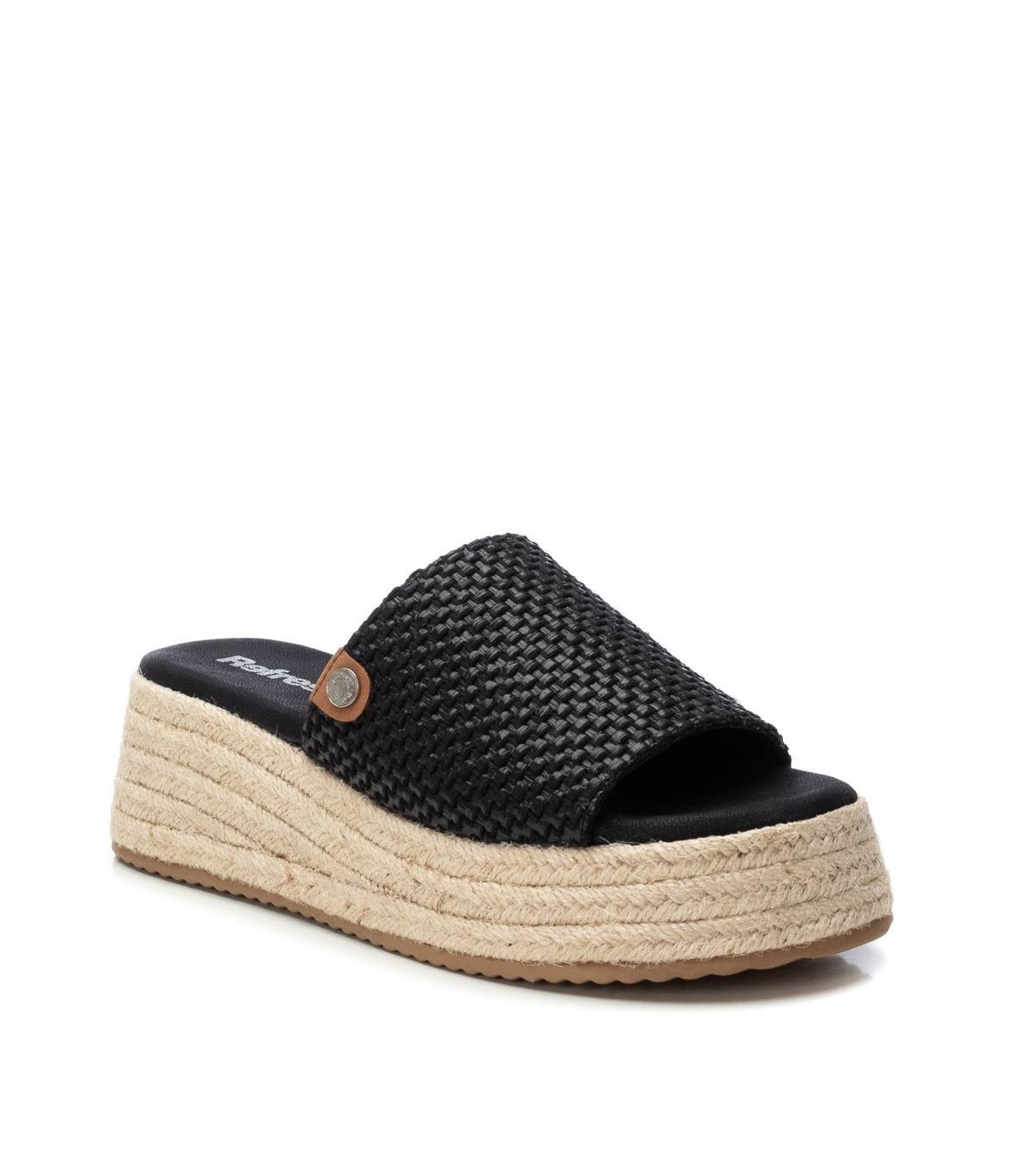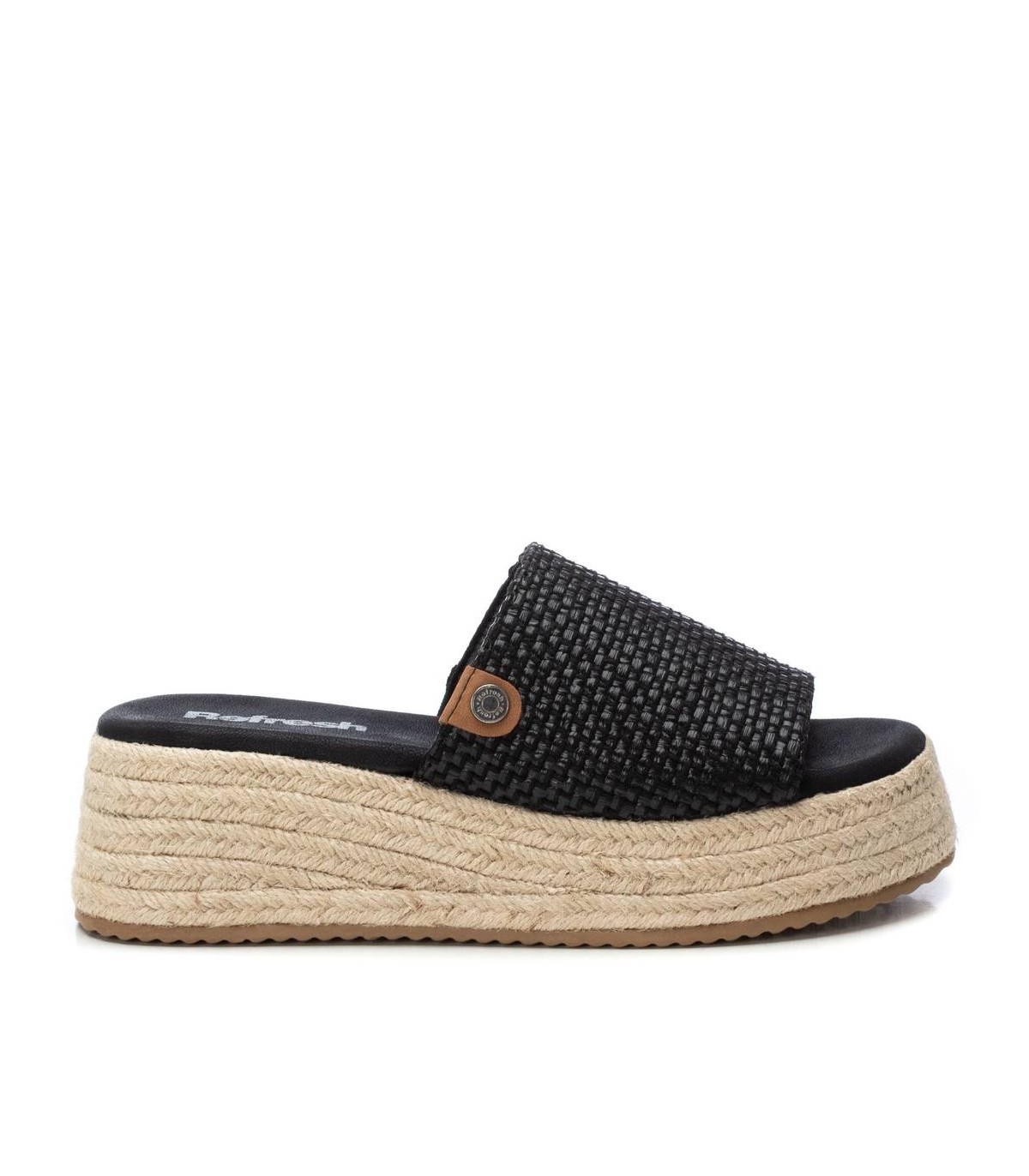 Sandalia de mujer, de la marca Refresh. Diseño de pala ancha destalonada. Cómoda planta acolchada. Plataforma de 6 cm recubierta con tiras de yute. Suela de goma antideslizante. Este modelo ha obtenido el certificado vegano por la organización mundial PETA (Organización de los derechos de los animales).