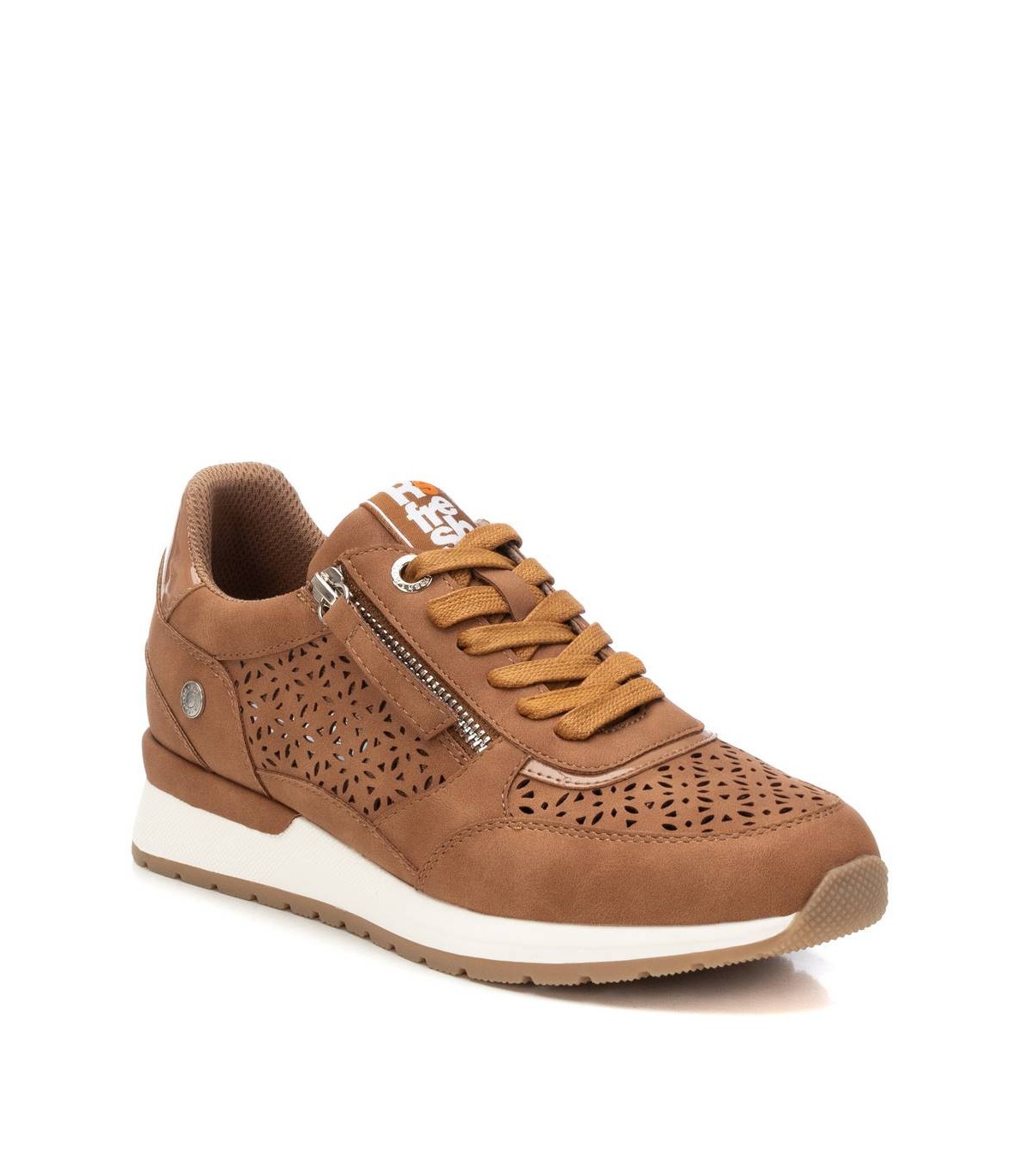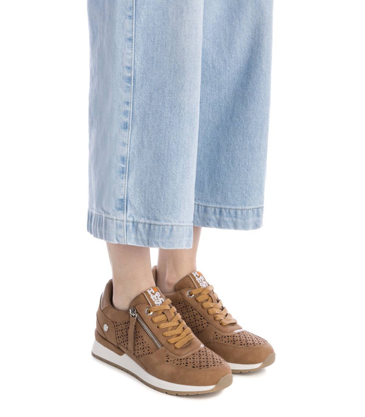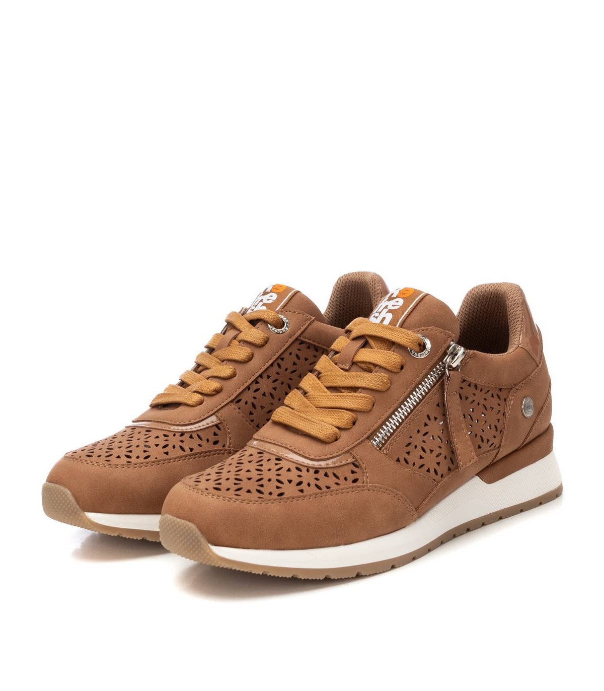 Zapatilla de mujer, de la marca Refresh. Fabricada en material que imita a la piel decorado con troquel floral. Cierre mediante cremallera lateral. Cordones regulables para un mejor ajuste. Suela de goma antideslizante. Este modelo ha obtenido el certificado vegano por la organización mundial PETA (Organización de los derechos de los animales).