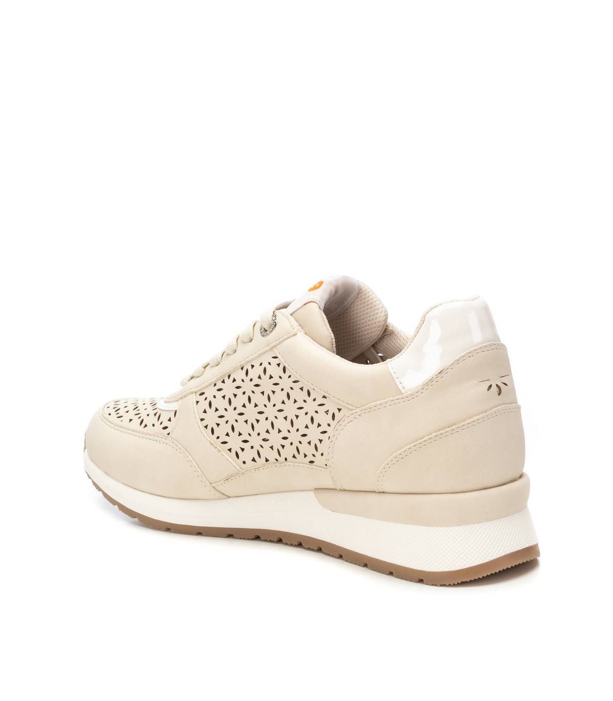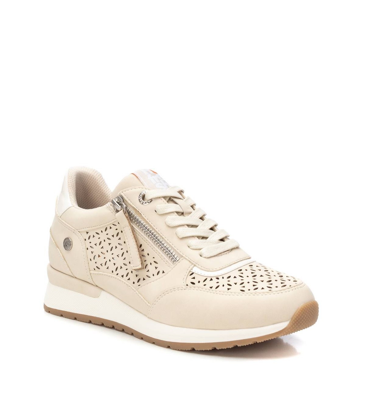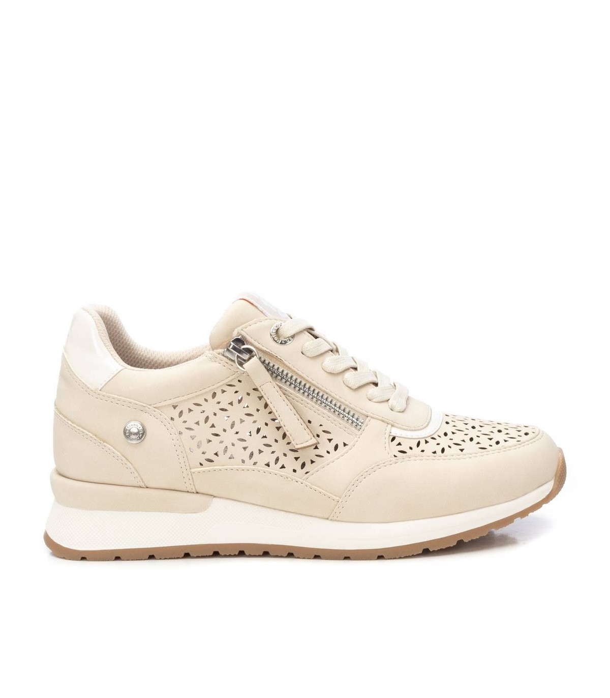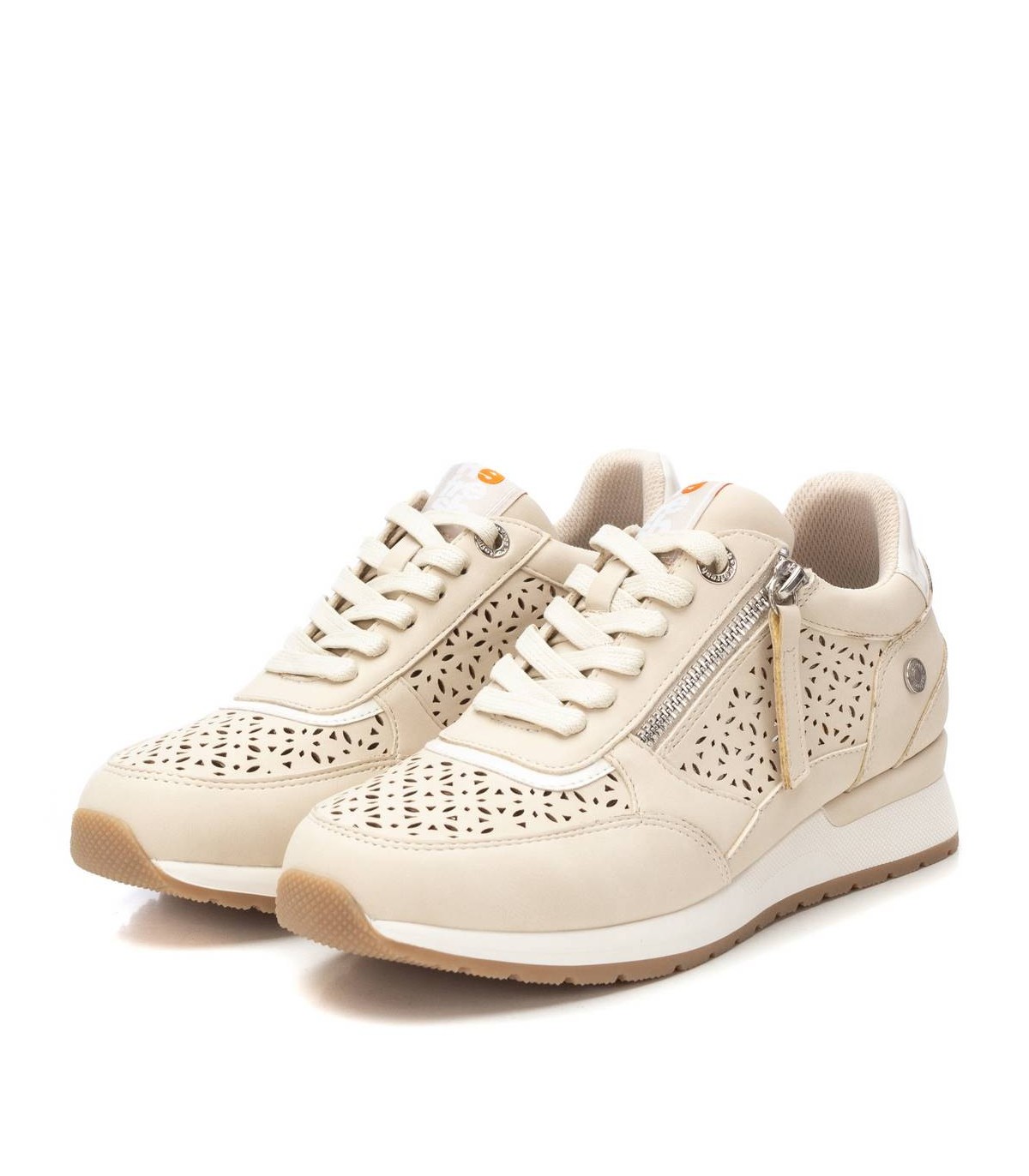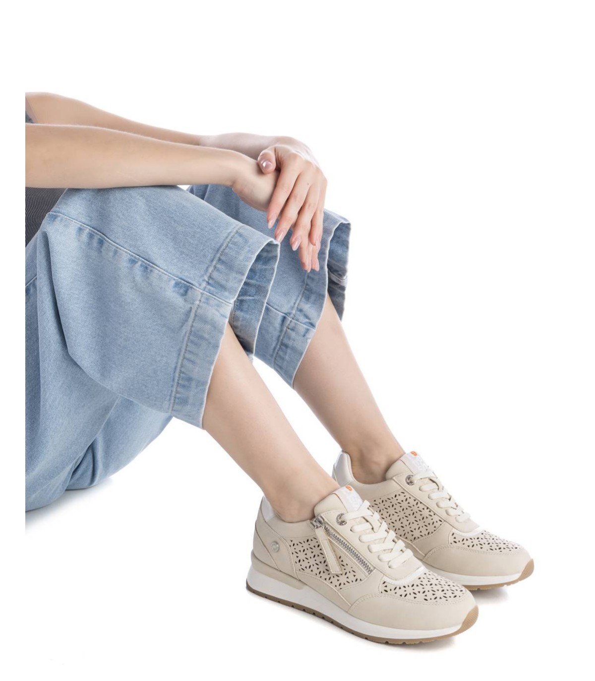 Zapatilla de mujer, de la marca Refresh. Fabricada en material que imita a la piel decorado con troquel floral. Cierre mediante cremallera lateral. Cordones regulables para un mejor ajuste. Suela de goma antideslizante. Este modelo ha obtenido el certificado vegano por la organización mundial PETA (Organización de los derechos de los animales).