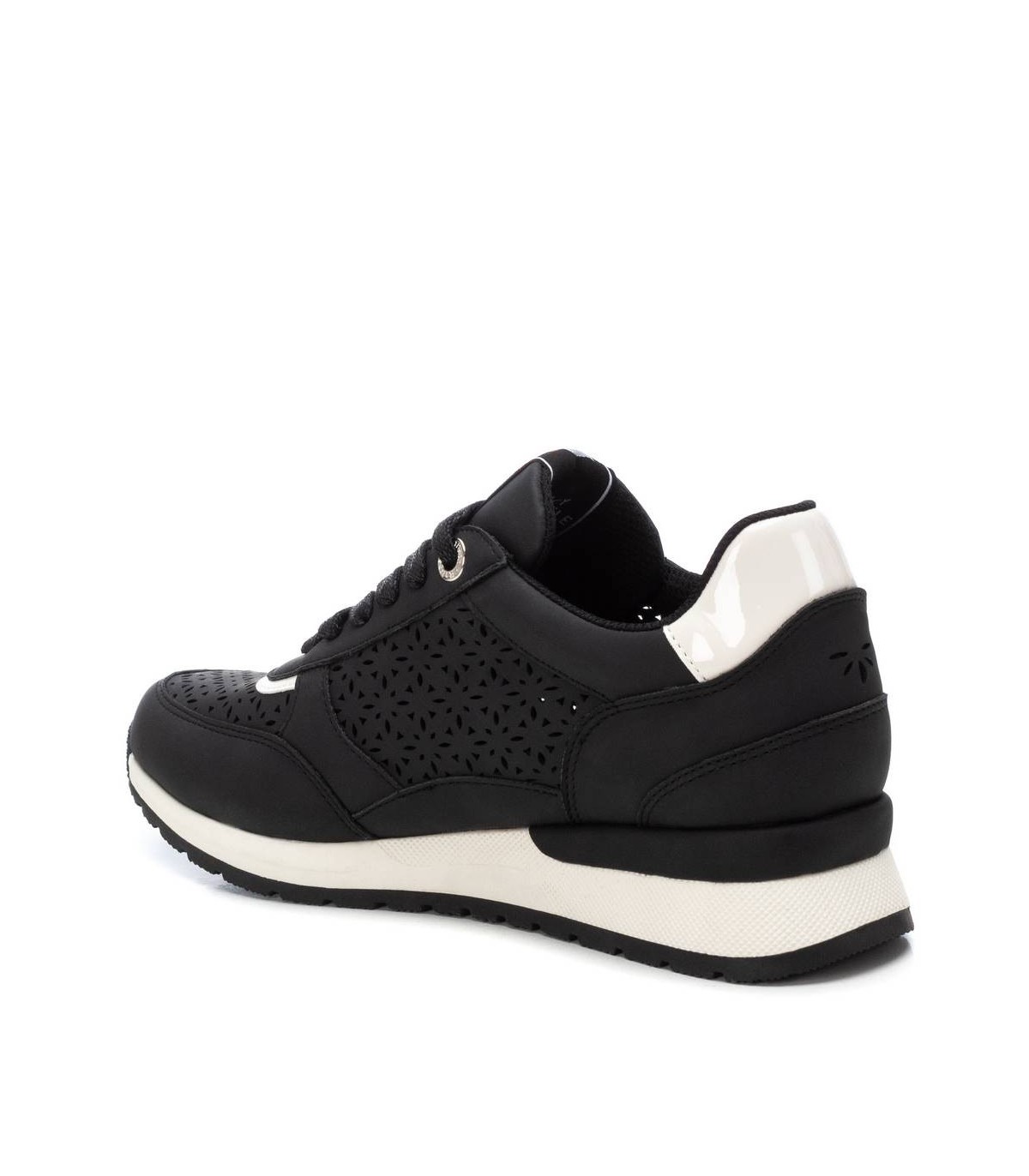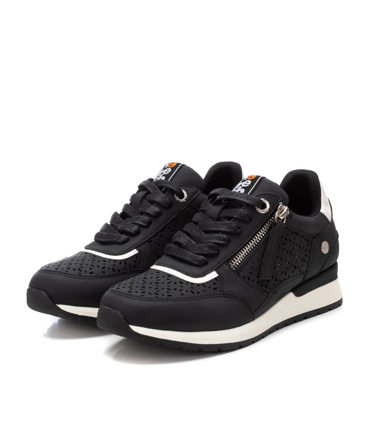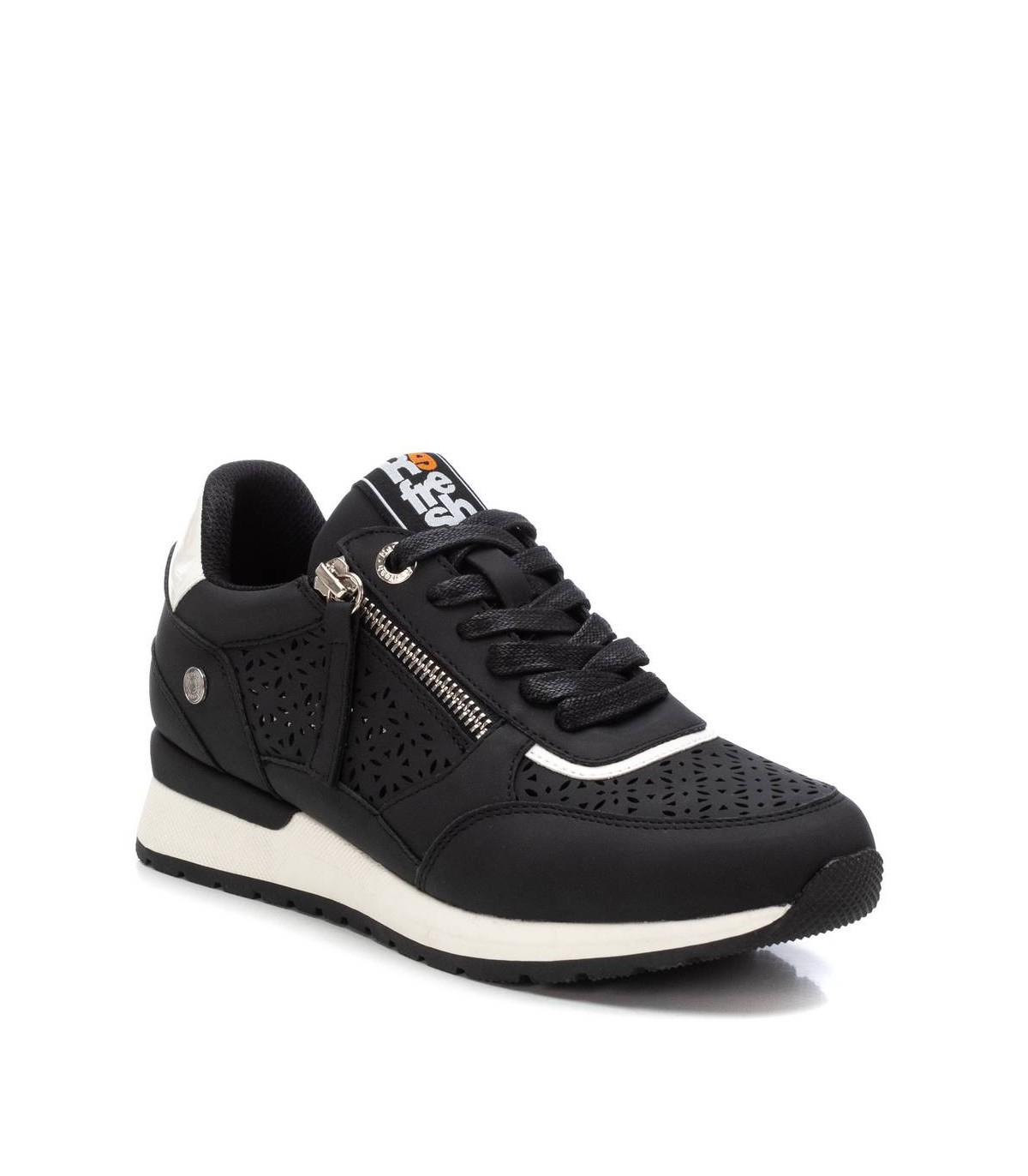 Zapatilla de mujer, de la marca Refresh. Fabricada en material que imita a la piel decorado con troquel floral. Cierre mediante cremallera lateral. Cordones regulables para un mejor ajuste. Suela de goma antideslizante. Este modelo ha obtenido el certificado vegano por la organización mundial PETA (Organización de los derechos de los animales).