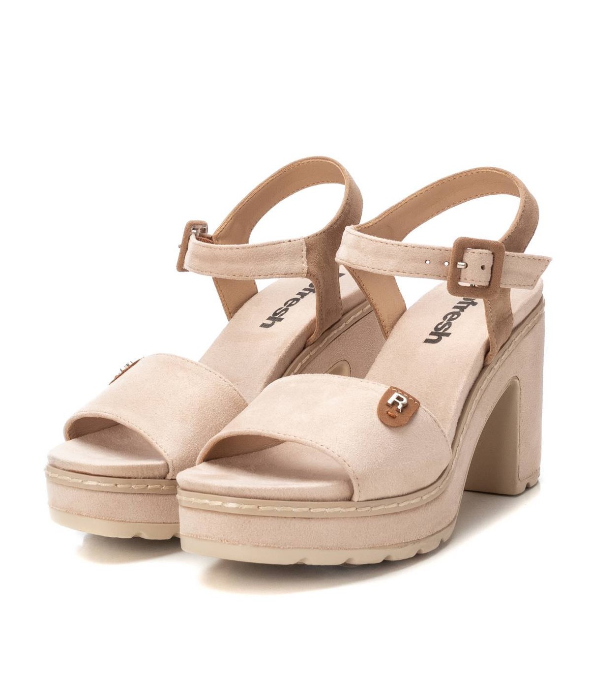 Sandalia de mujer, de la marca Refresh. Fabricada en antelina. Diseño de pala con pulsera trasera multicolor. Cierre de hebilla forrada del mismo material del corte. Cómoda planta acolchada. Tacón ancho de 10 cm con plataforma. Suela de goma antideslizante. Este modelo ha obtenido el certificado vegano por la organización mundial PETA (Organización de los derechos de los animales).