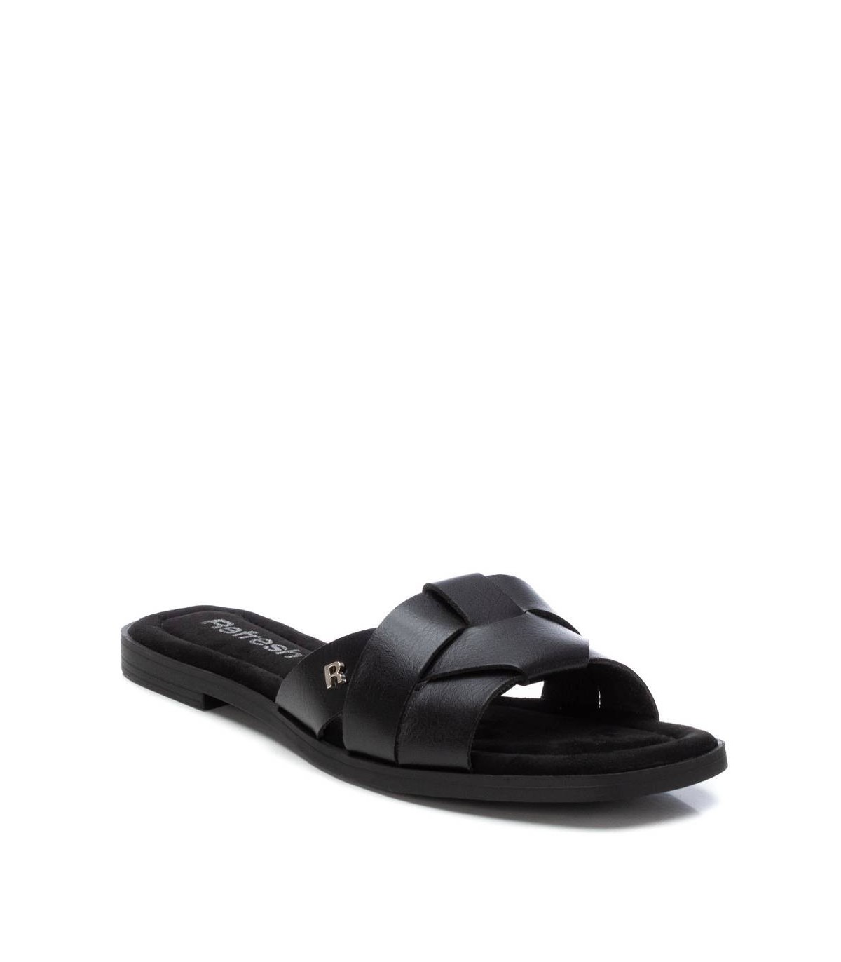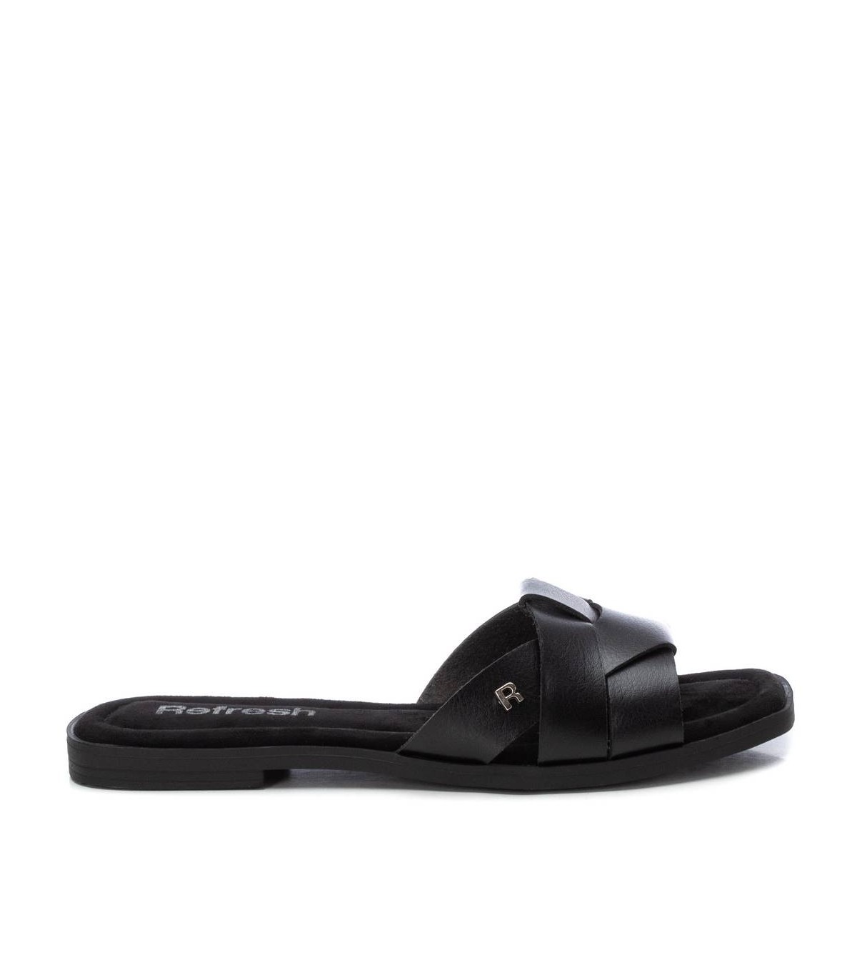 Sandalia de mujer, de la marca Refresh. Fabricada en material que imita la piel. Diseño tipo pala entrelazada. Cómoda planta acolchada. Suela flexible de goma antideslizante. Este modelo ha obtenido el certificado vegano por la organización mundial PETA (Organización de los derechos de los animales).
