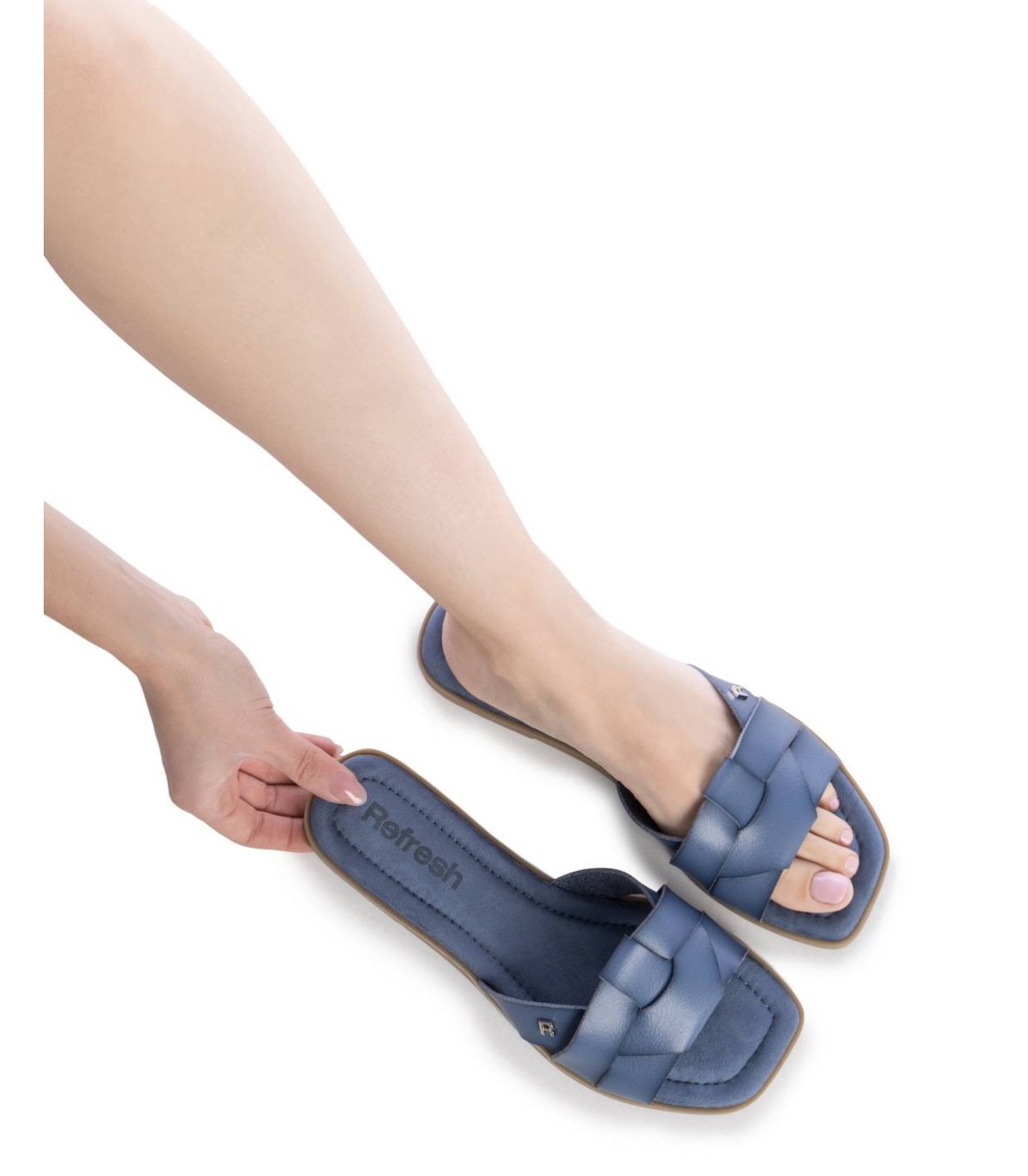 Sandalia de mujer, de la marca Refresh. Fabricada en material que imita la piel. Diseño tipo pala entrelazada. Cómoda planta acolchada. Suela flexible de goma antideslizante. Este modelo ha obtenido el certificado vegano por la organización mundial PETA (Organización de los derechos de los animales).
