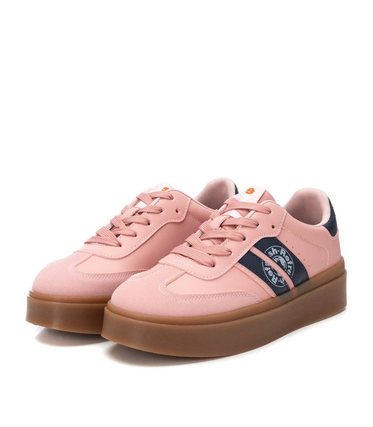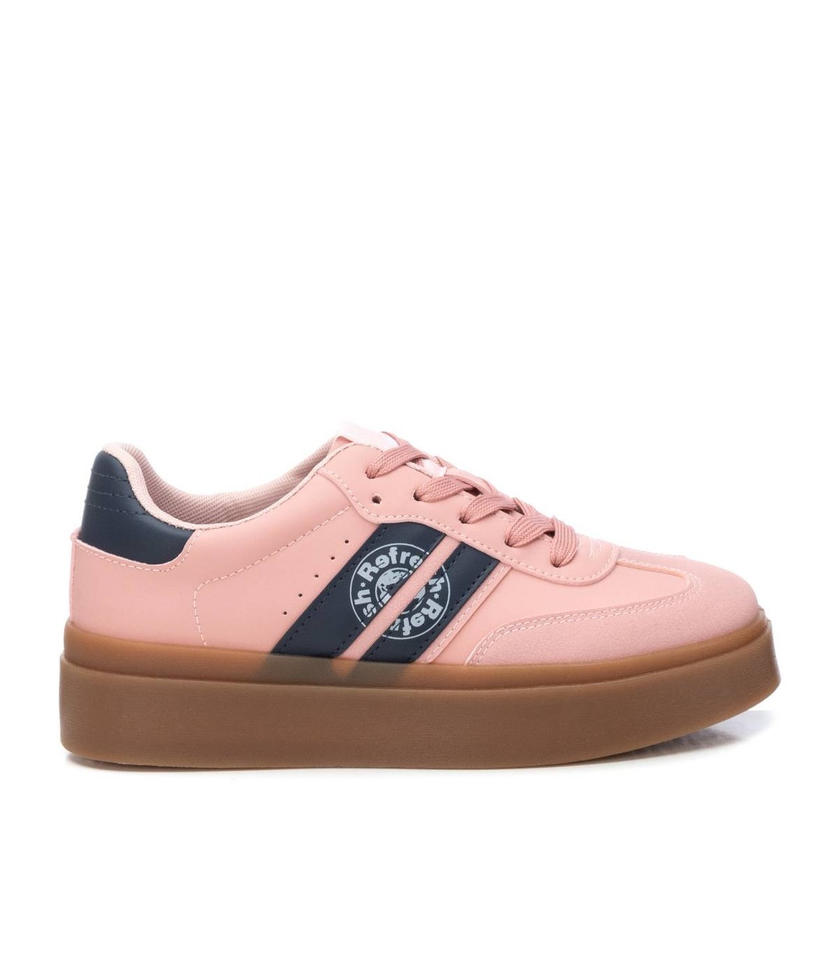 Zapatilla urbana de la marca Refresh. Fabricada en diferentes materiales que imitan a la piel. Cordones regulables. Suela volumen de goma antideslizante. Con plantilla extraíble. Este modelo ha obtenido el certificado vegano por la organización mundial PETA (Organización de los derechos de los animales).