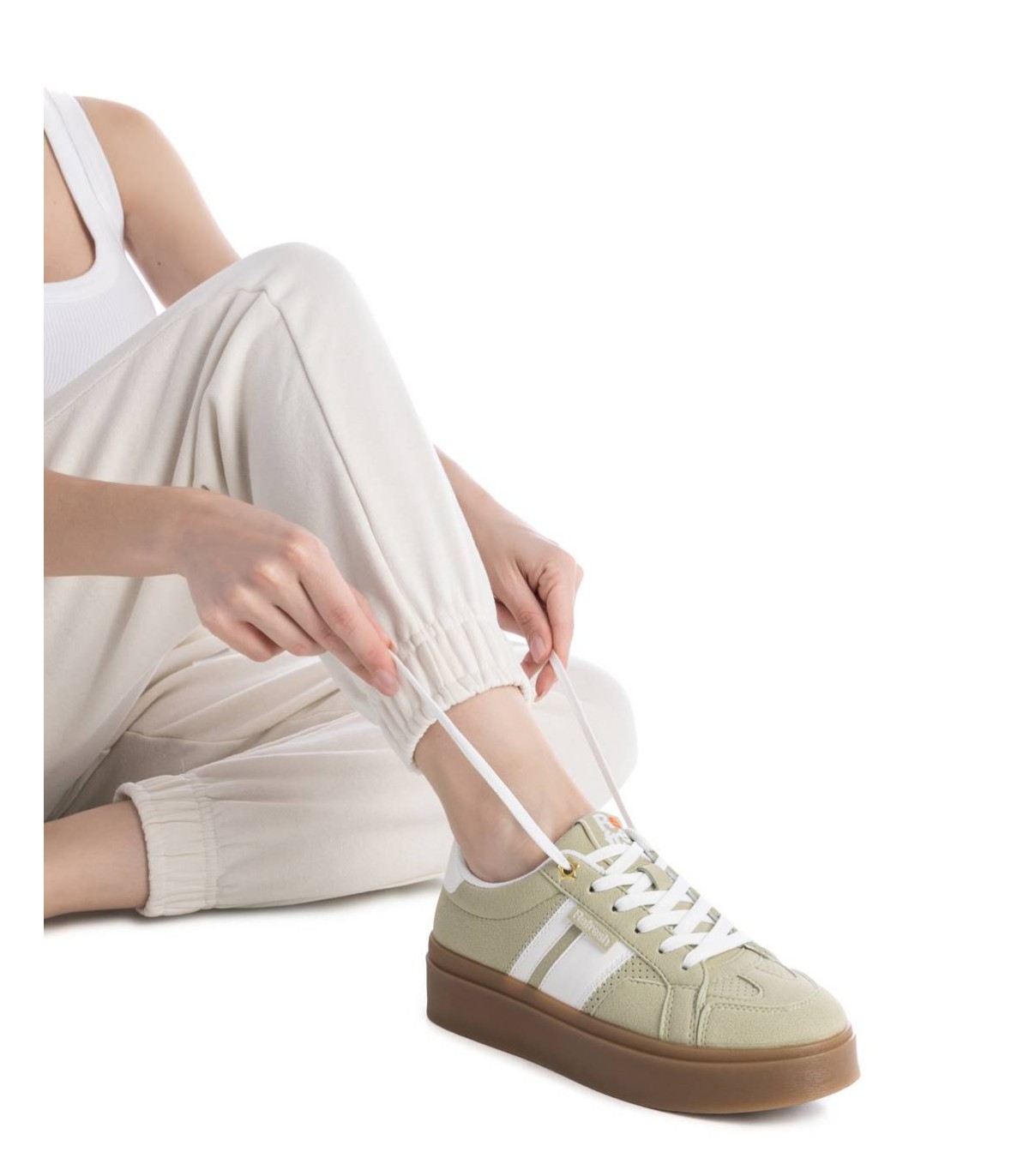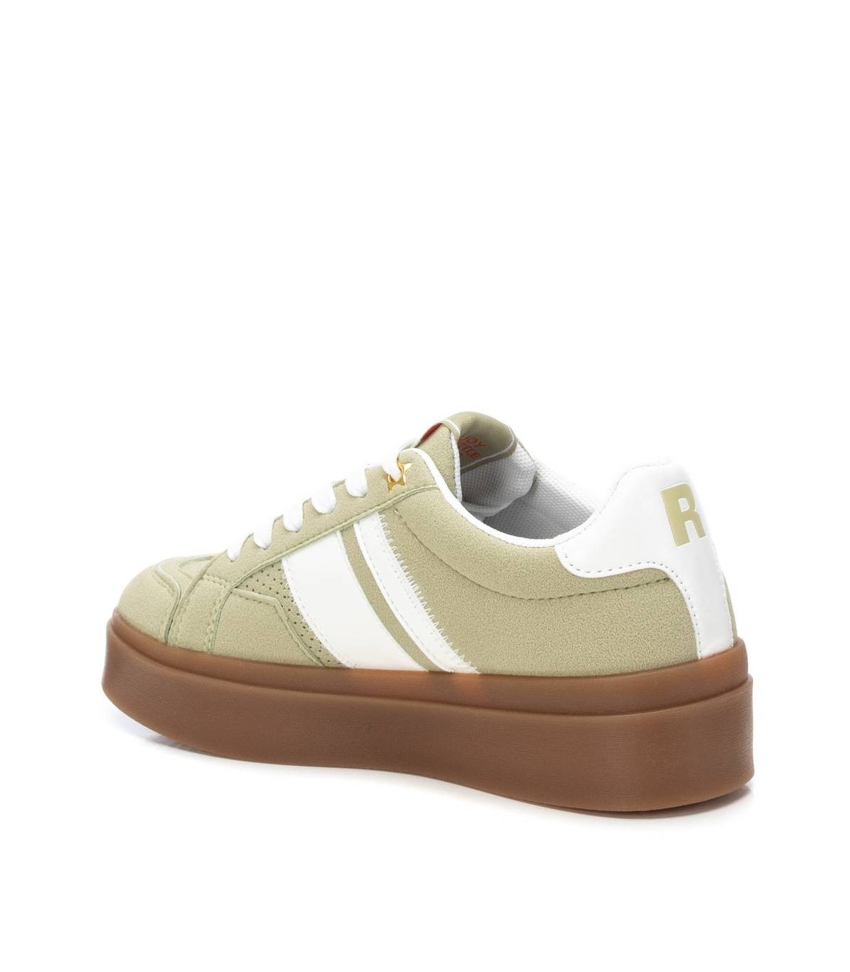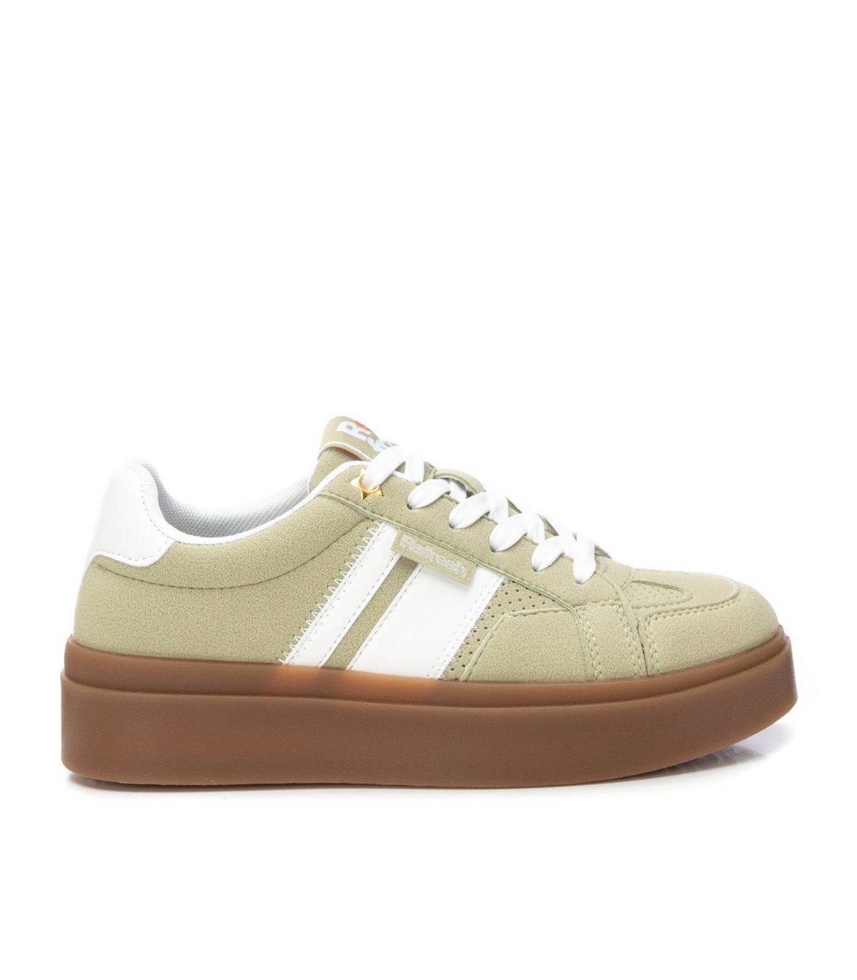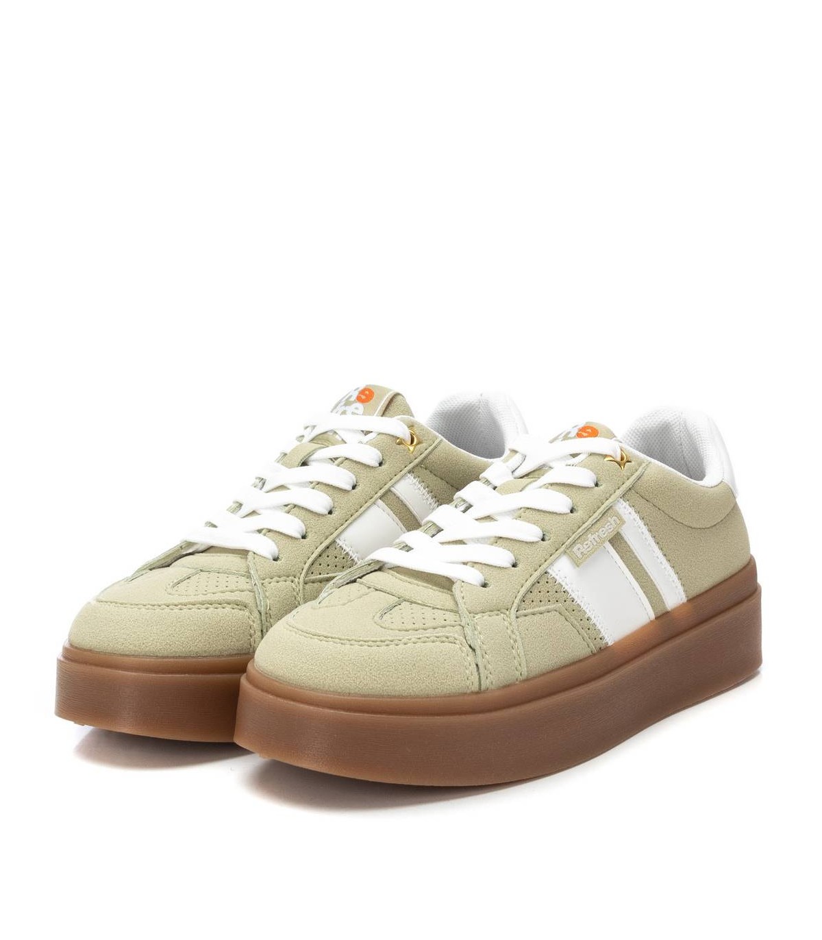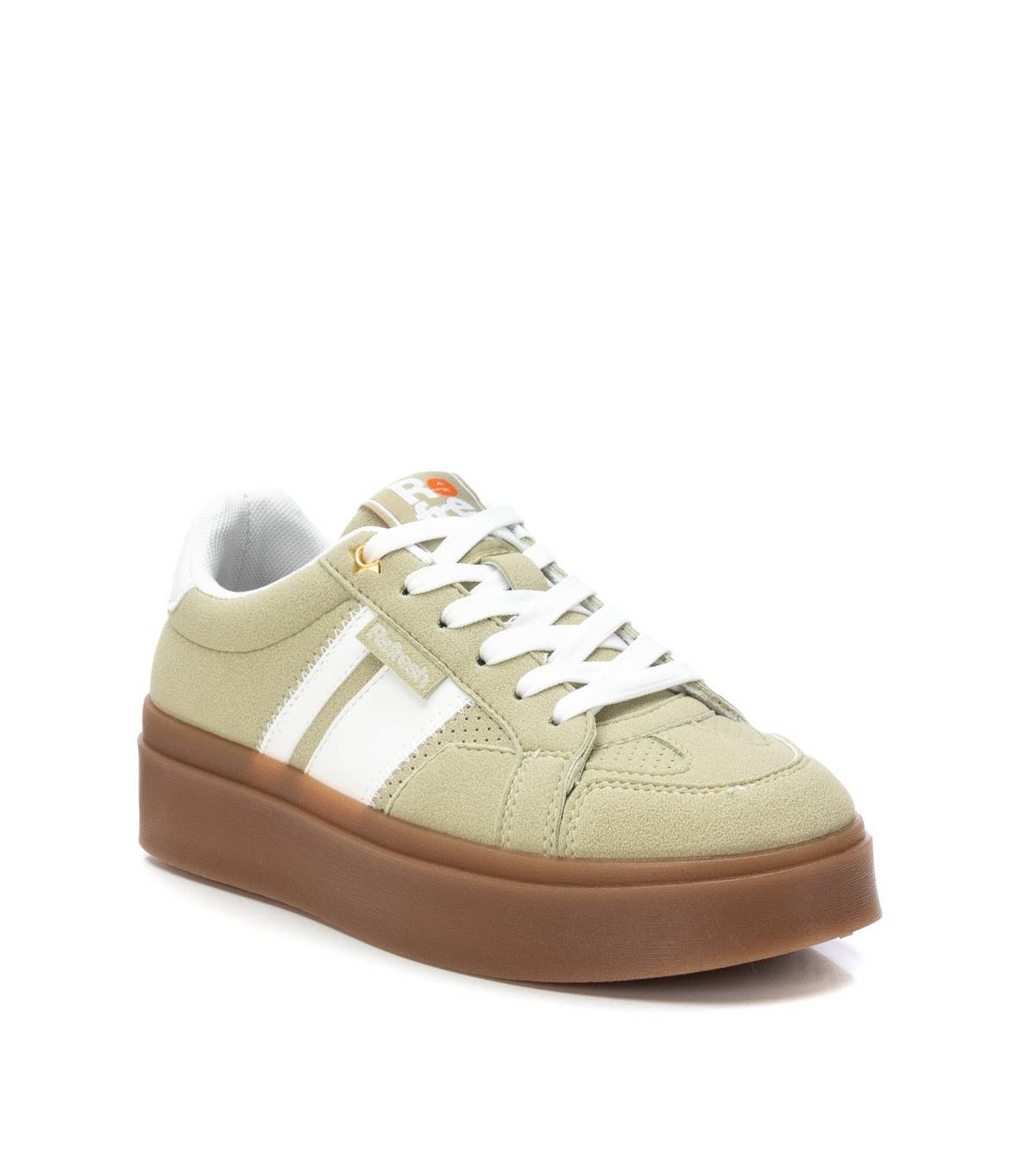 Zapatilla de mujer, de la marca Refresh. Fabricada en material que imita a la piel. Cierre mediante cordones regulables. Suela volumen de goma antideslizante. Con plantilla extraíble. Este modelo ha obtenido el certificado vegano por la organización mundial PETA (Organización de los derechos de los animales).