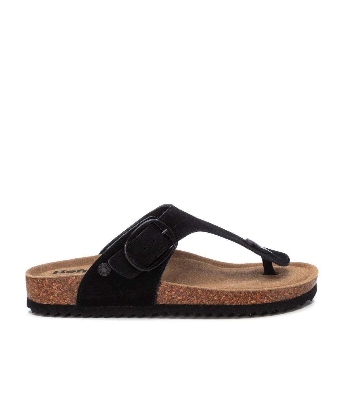 Sandalia de mujer, de la marca Refresh. Fabricada en serraje. Sandalia de dedo. Hebilla en el empeine para un mayor ajuste. Cómoda planta tipo bios. Suela de goma canalada antideslizante.