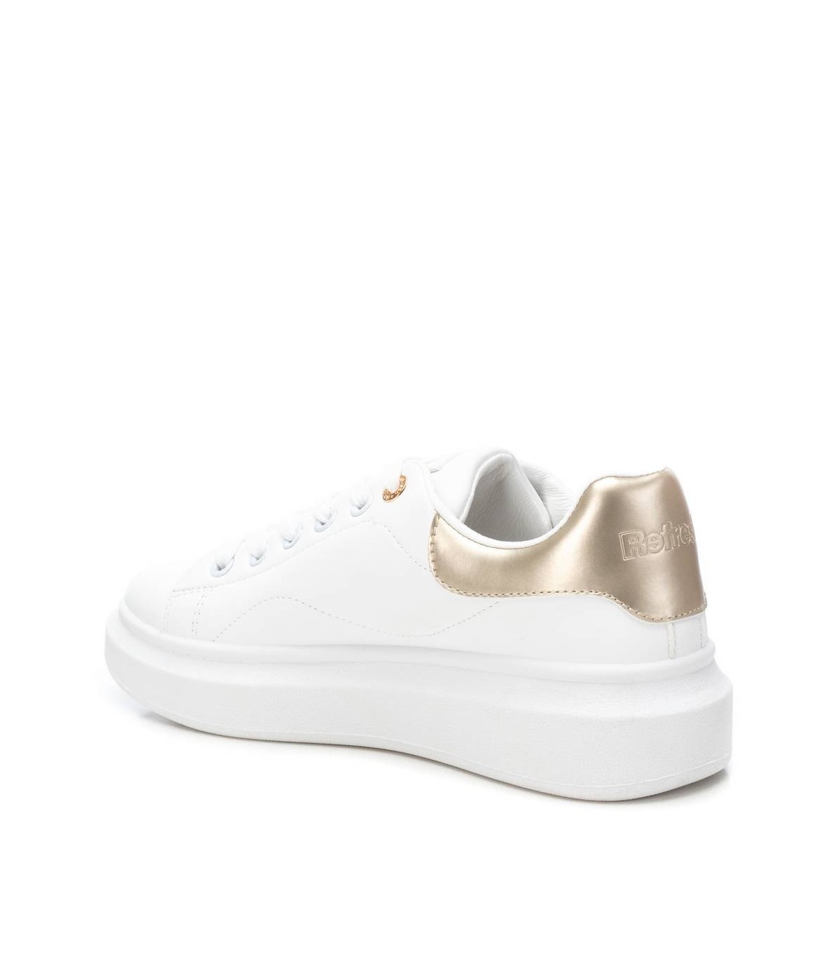 Zapatilla de mujer, de la marca Refresh. Fabricada en material que imita la piel. Cierre mediante cordones ajustables. Piso volumen con suela de goma antideslizante. Un modelo sencillo que se convertirá en un imprescindible de armario. Con plantilla extraíble. Este modelo ha obtenido el certificado vegano por la organización mundial PETA (Organización de los derechos de los animales).