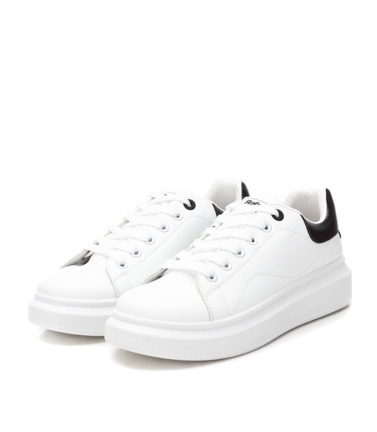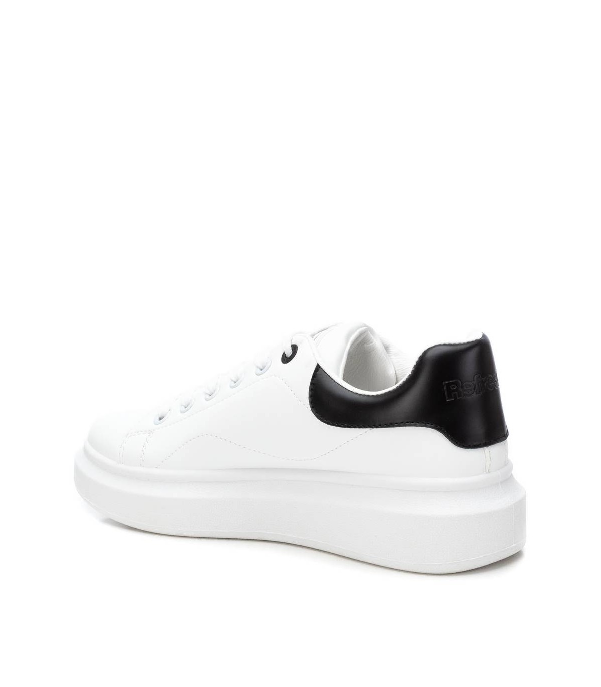 Zapatilla de mujer, de la marca Refresh. Fabricada en material que imita la piel. Cierre mediante cordones ajustables. Piso volumen con suela de goma antideslizante. Un modelo sencillo que se convertirá en un imprescindible de armario. Con plantilla extraíble. Este modelo ha obtenido el certificado vegano por la organización mundial PETA (Organización de los derechos de los animales).