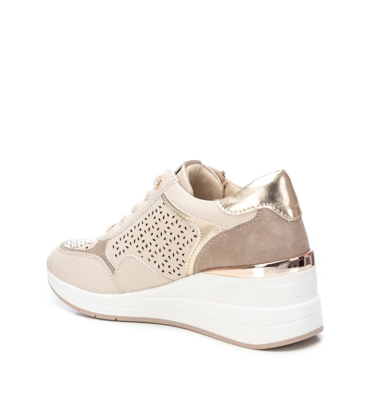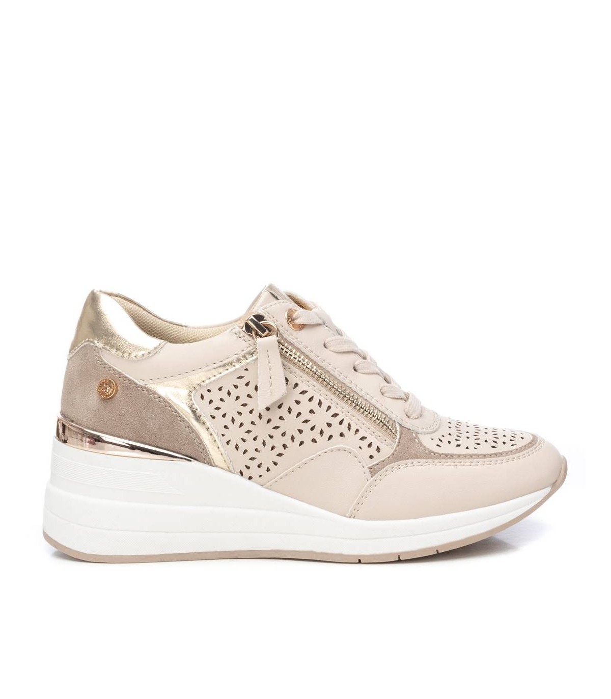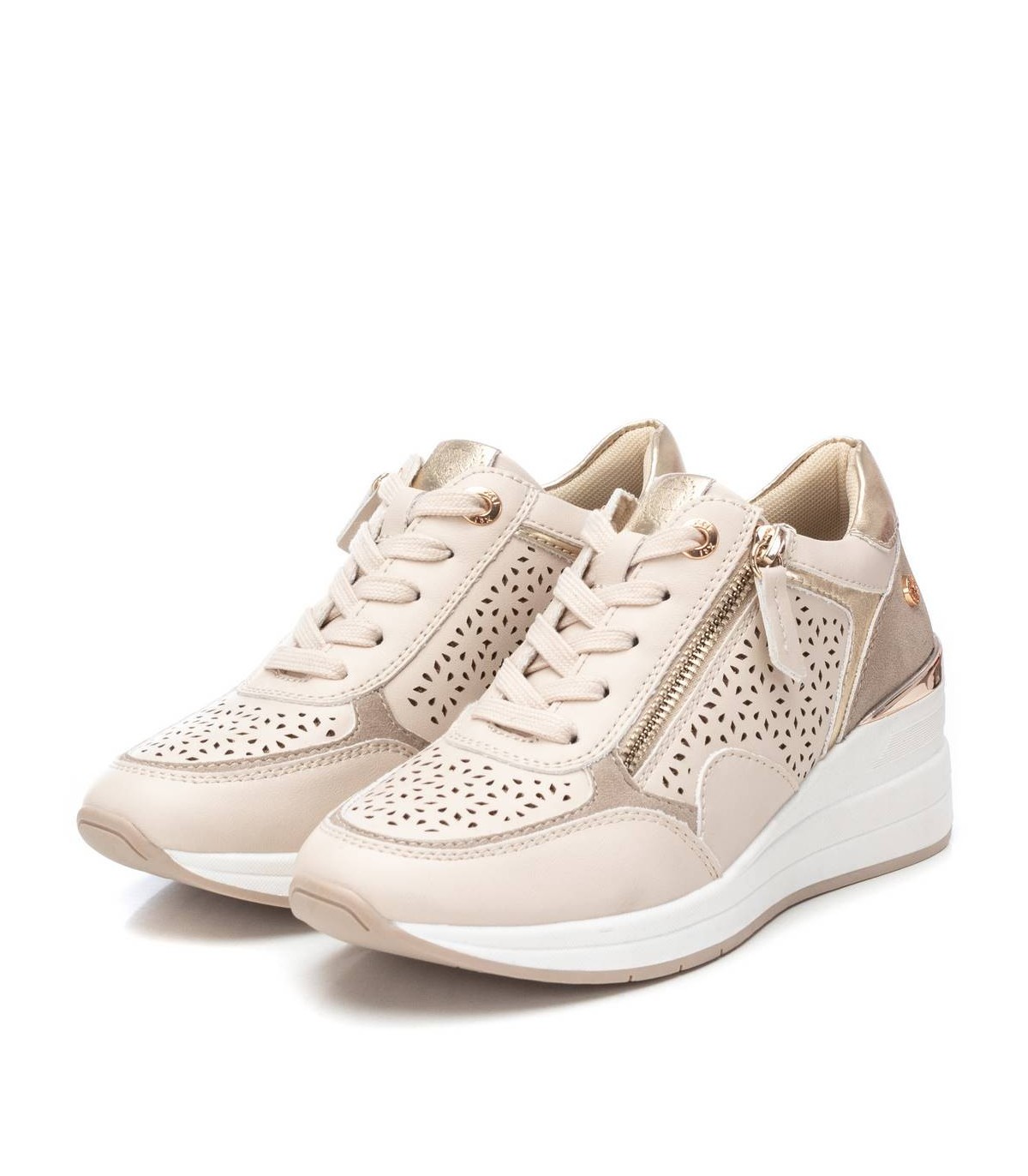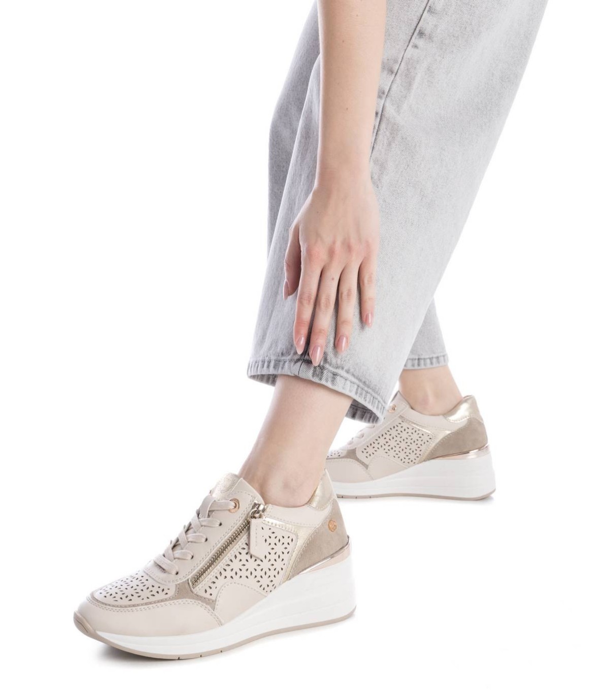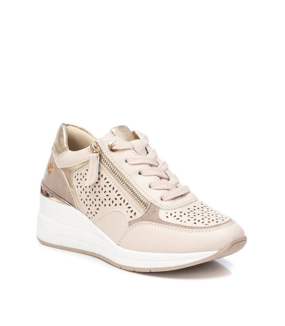 Zapatilla de mujer, de la marca Xti. Fabricada en material que imita la piel con detalle de troquelado decorativo. Cierre mediante cremallera. Con plantilla extraíble. Cuña con suela de goma antideslizante. Ideal para aportar unos cm sin perder comodidad. Este modelo ha obtenido el certificado vegano por la organización mundial PETA (Organización de los derechos de los animales).