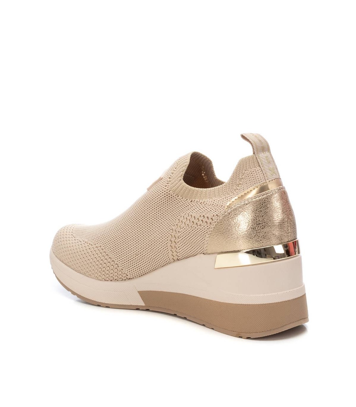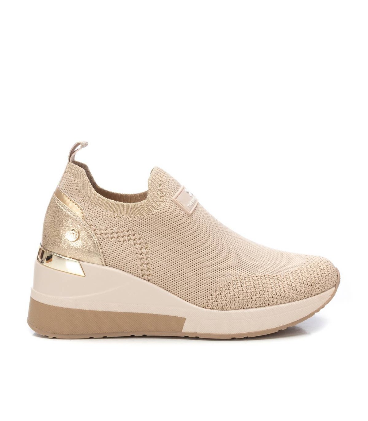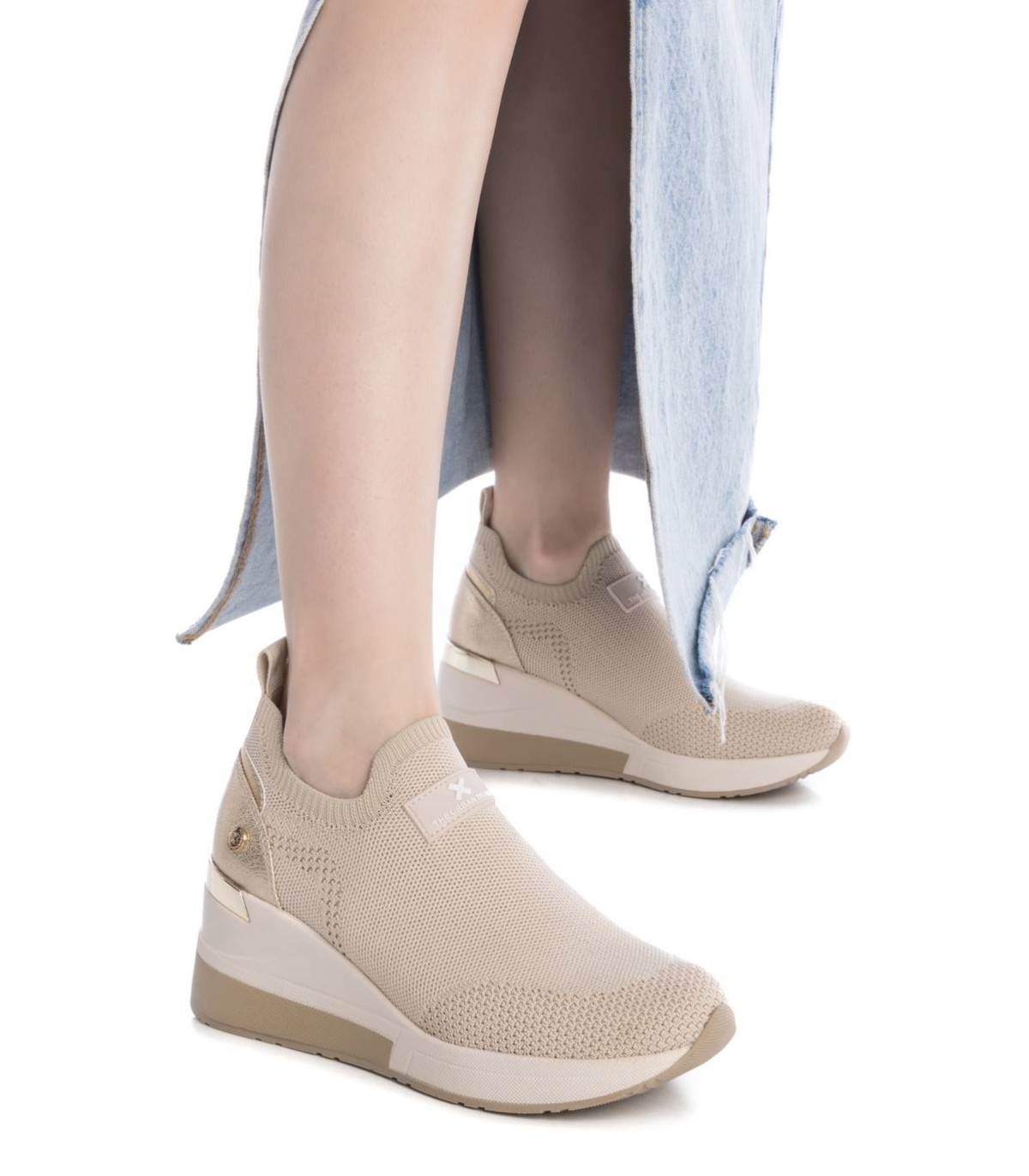 Zapatilla de mujer, de la marca Xti. Fabricado en un cómodo textil elástico. Cuña bicolor de 6 cm de altura, con suela de goma antideslizante. Este modelo ha obtenido el certificado vegano por la organización mundial PETA (Organización de los derechos de los animales).