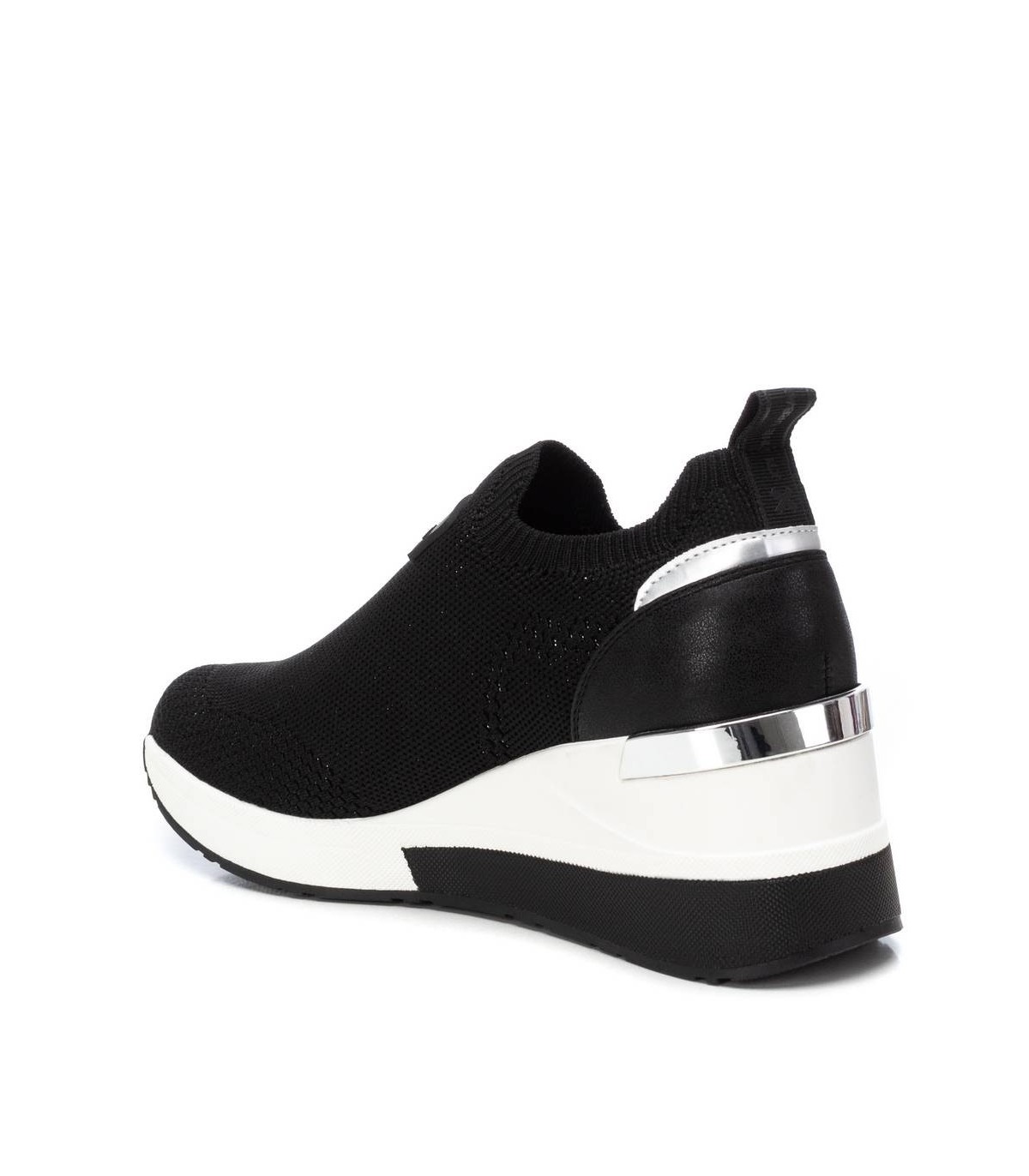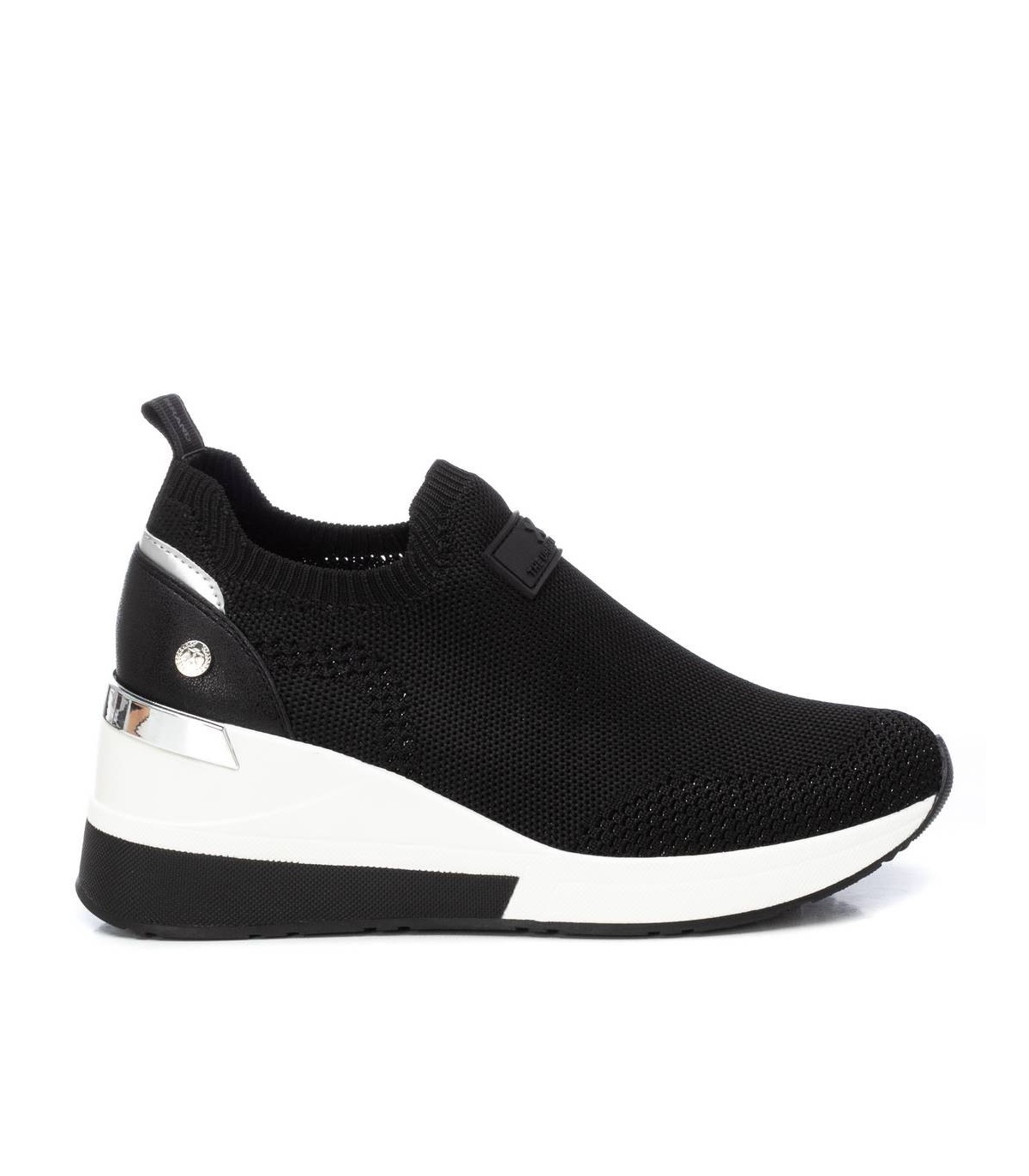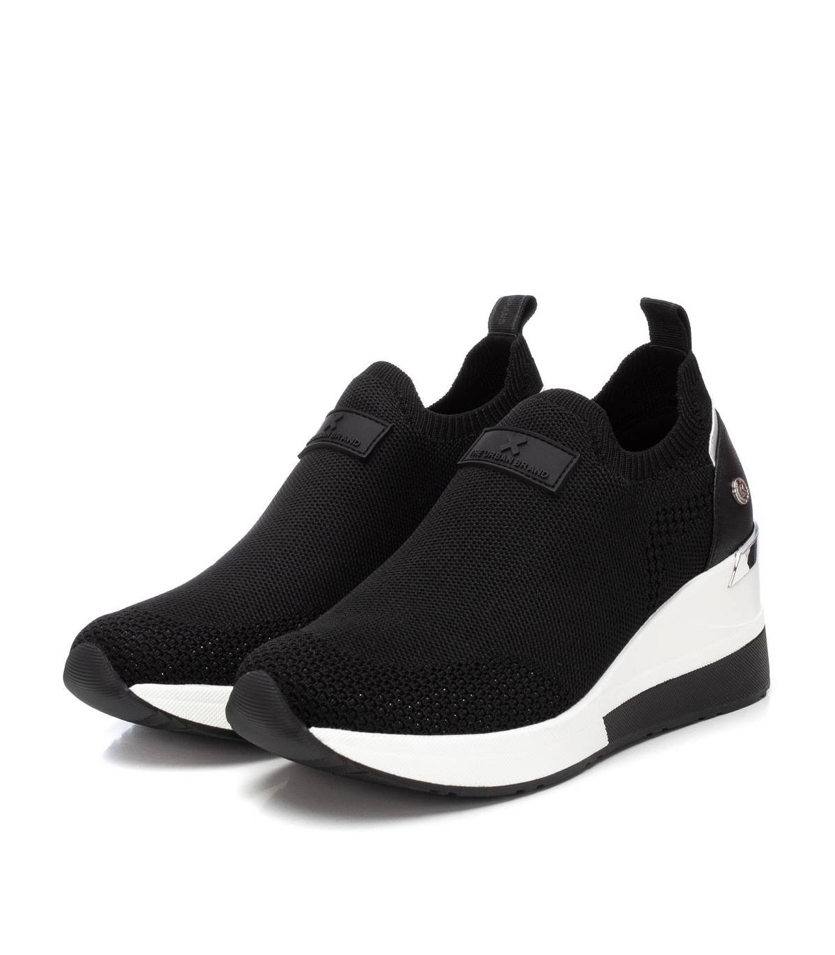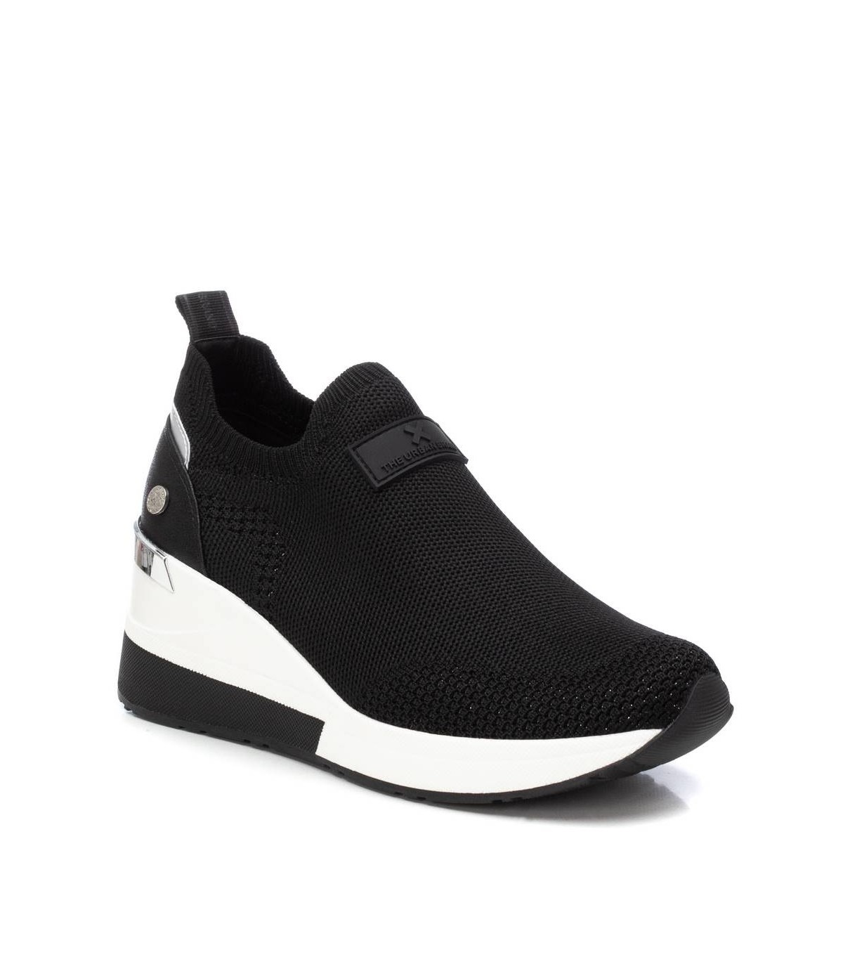 Zapatilla de mujer, de la marca Xti. Fabricado en un cómodo textil elástico. Cuña bicolor de 6 cm de altura, con suela de goma antideslizante. Este modelo ha obtenido el certificado vegano por la organización mundial PETA (Organización de los derechos de los animales).