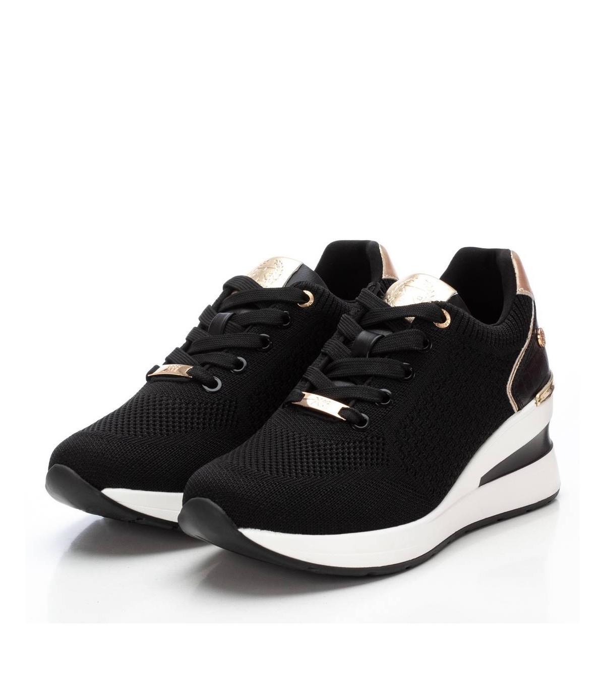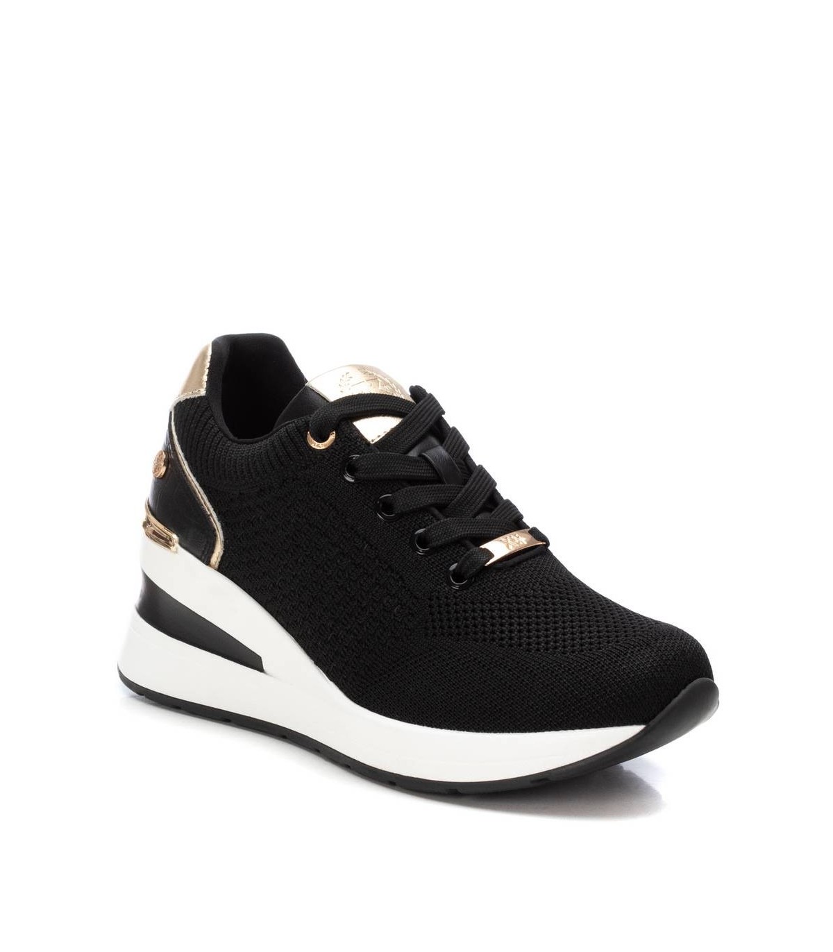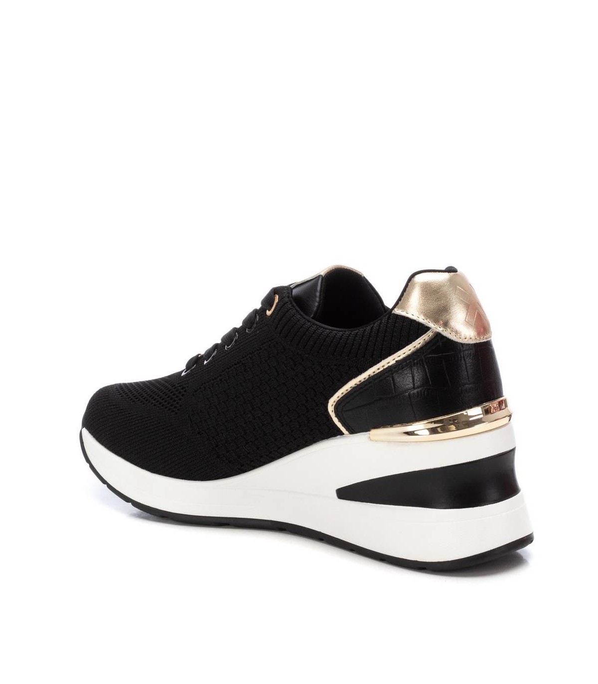 Zapatilla de mujer, de la marca Xti. Fabricada en material textil y detalles en metalizado. Cierre mediante cordones. Cuña con suela de goma antideslizante. Ideal para aportar unos cm sin perder comodidad. Este modelo ha obtenido el certificado vegano por la organización mundial PETA (Organización de los derechos de los animales).