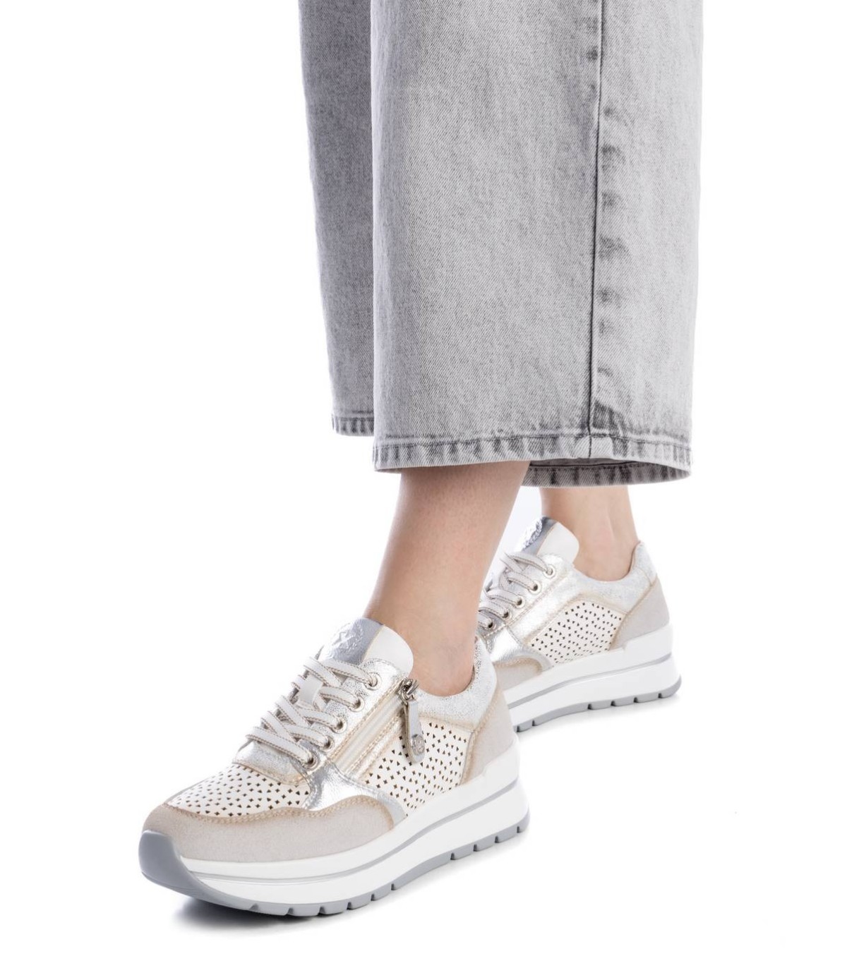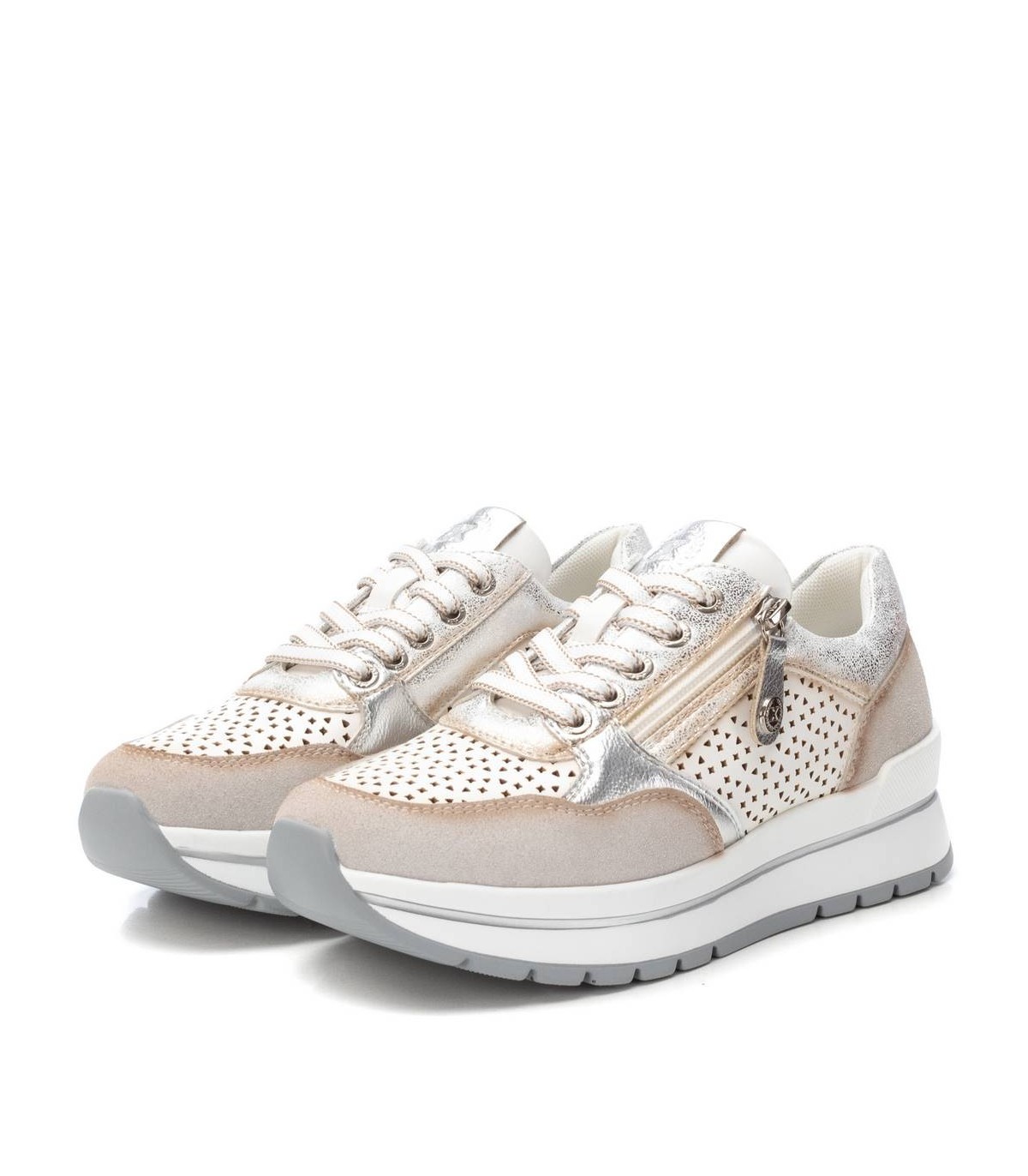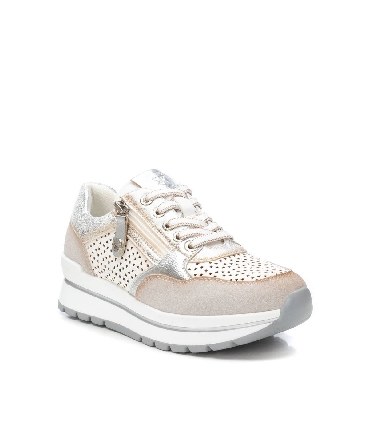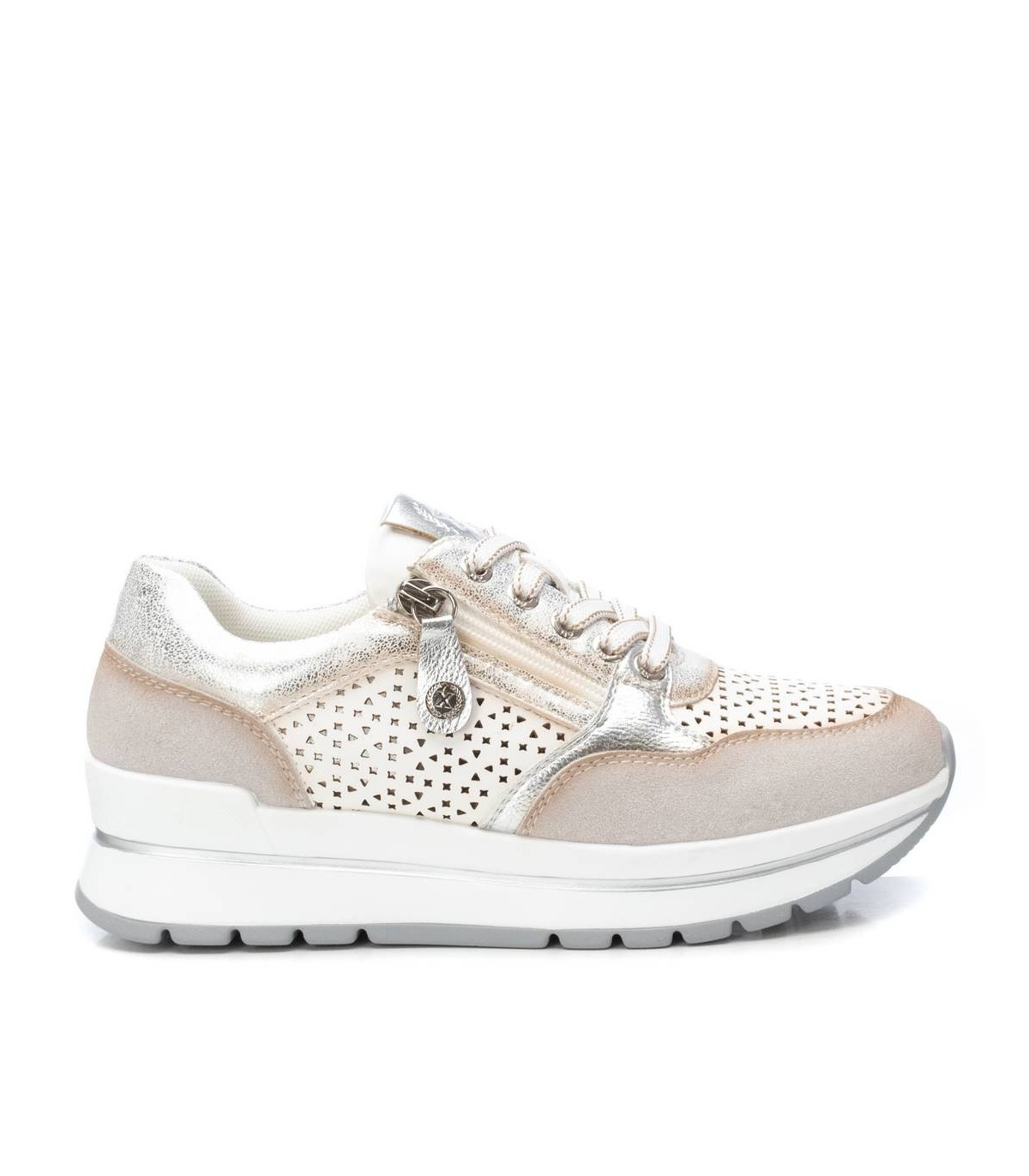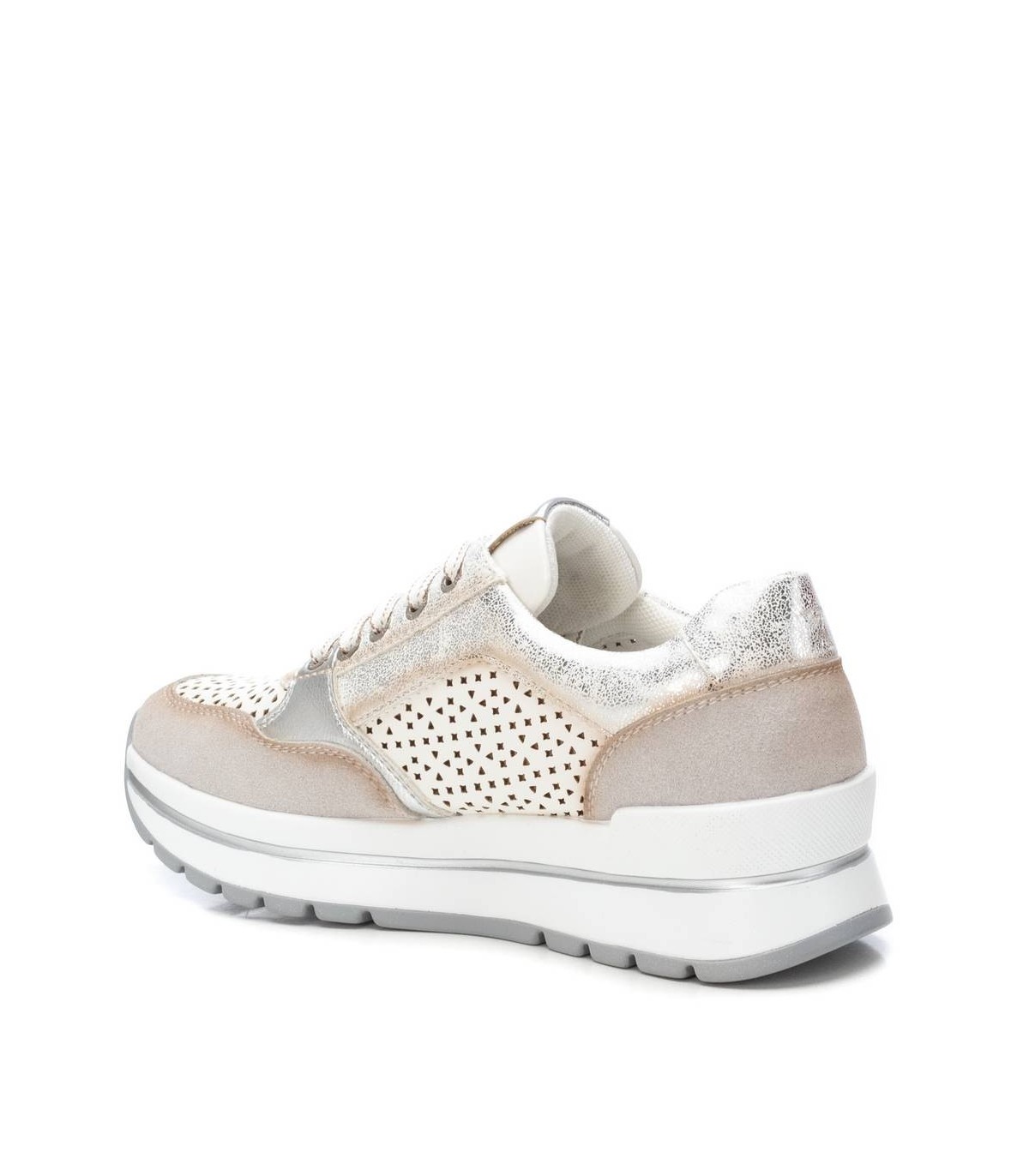 Zapatilla de mujer, de la marca Xti. Fabricada en combinación de material que imita la piel con textil. Cierre mediante cordones. Suela de goma antideslizante. Con plantilla extraíble. Este modelo ha obtenido el certificado vegano por la organización mundial PETA (Organización de los derechos de los animales).