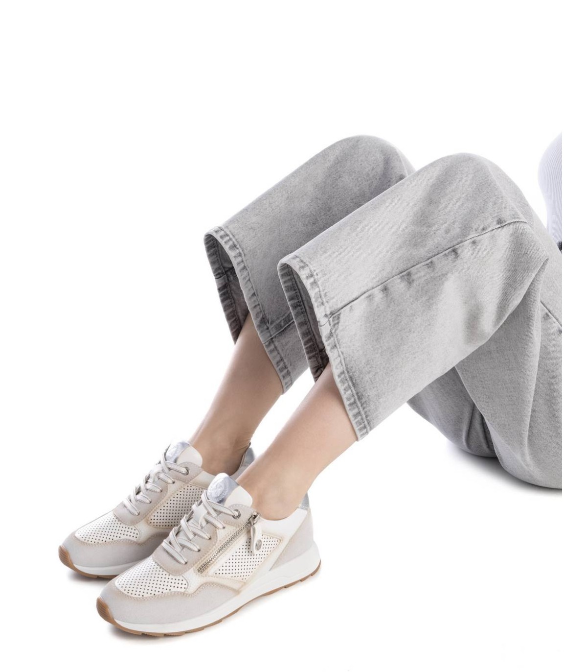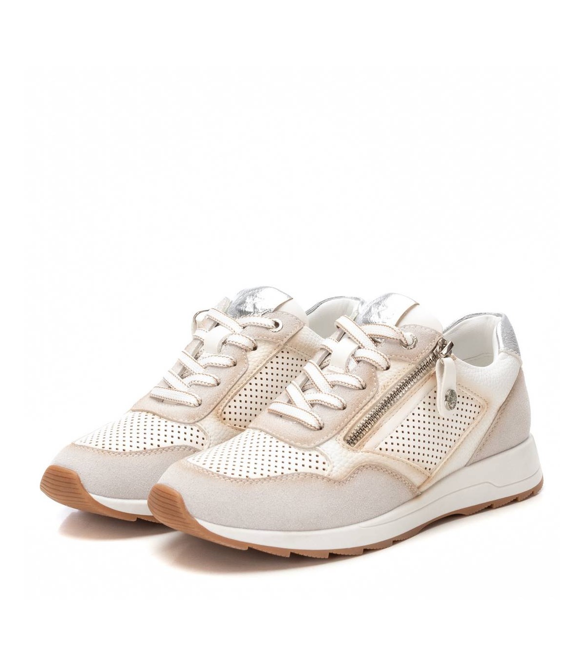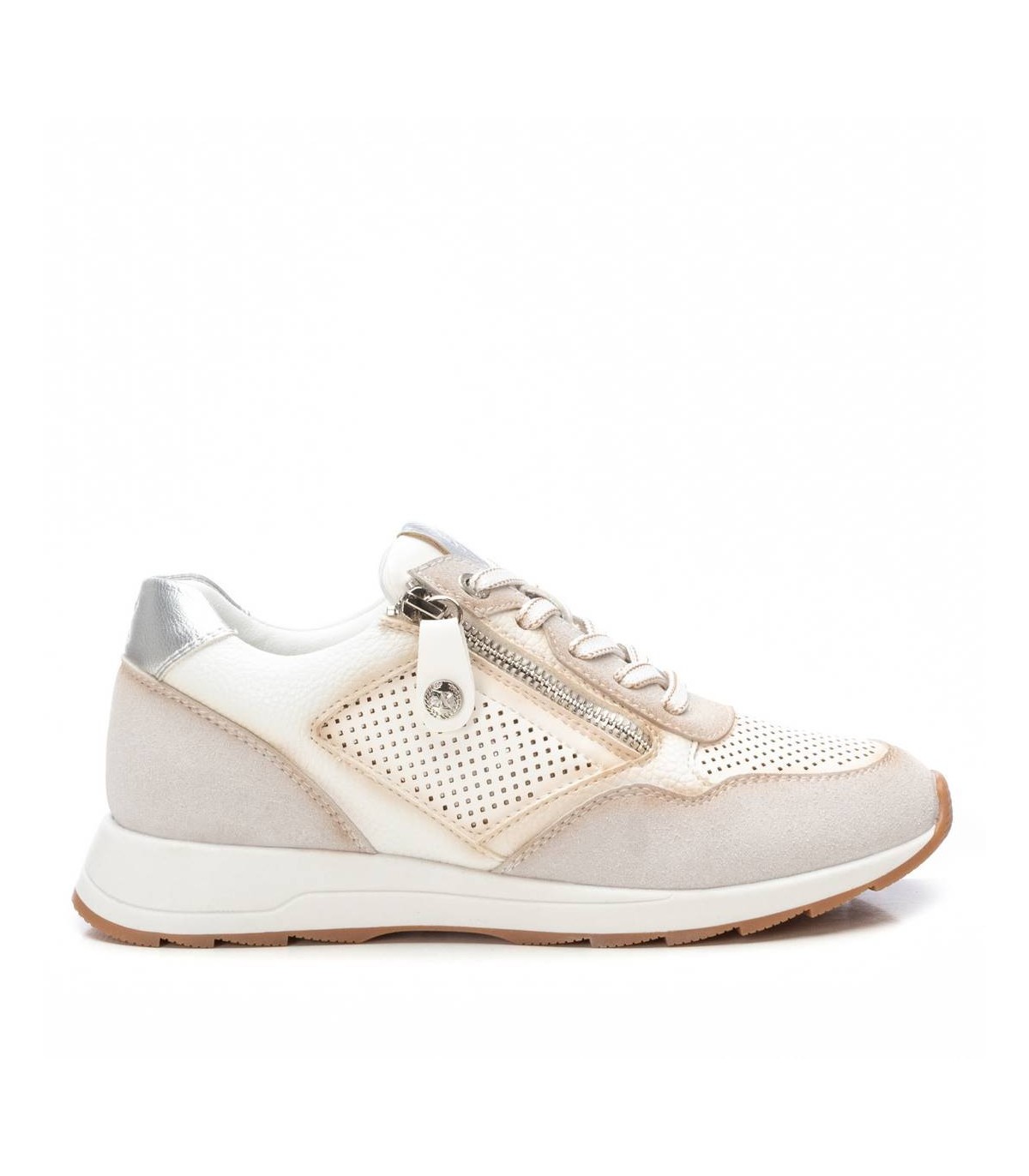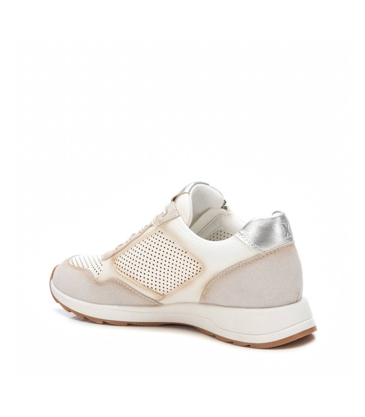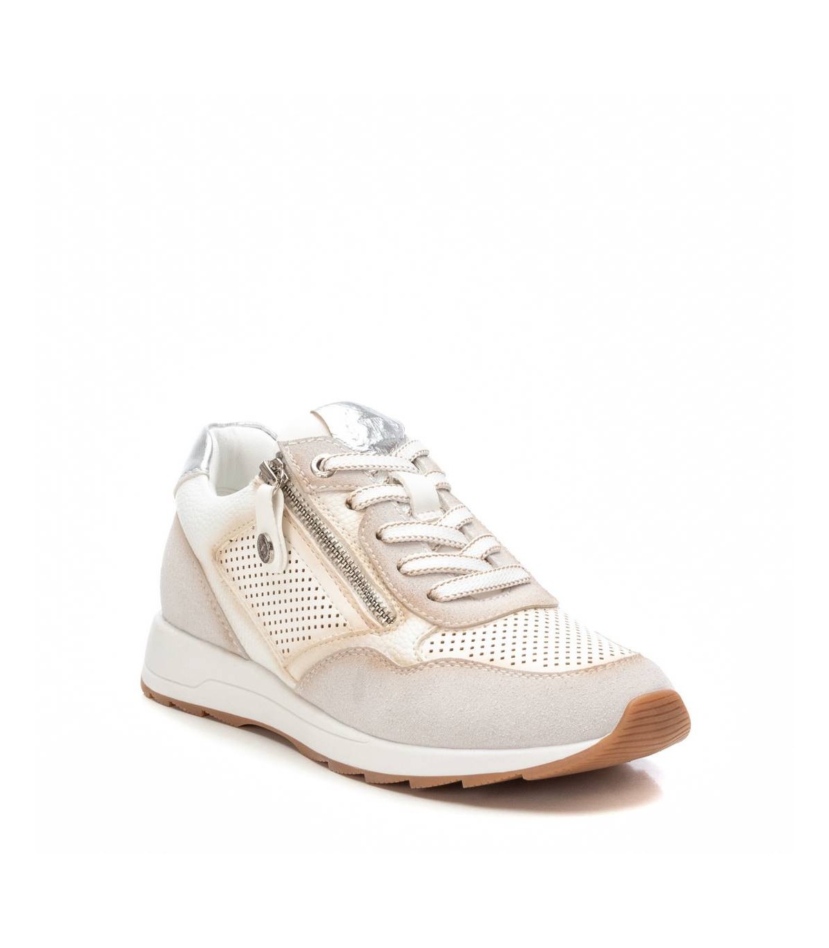 Zapatilla de mujer, de la marca Xti. Fabricada en material que imita la piel. Material troquelado en el lateral y en la puntera del modelo. Cierre mediante cremallera en el lateral para facilitar ponértelas. Detalle metalizado en el talón. Con plantilla extraíble. Este modelo ha obtenido el certificado vegano por la organización mundial PETA (Organización de los derechos de los animales).