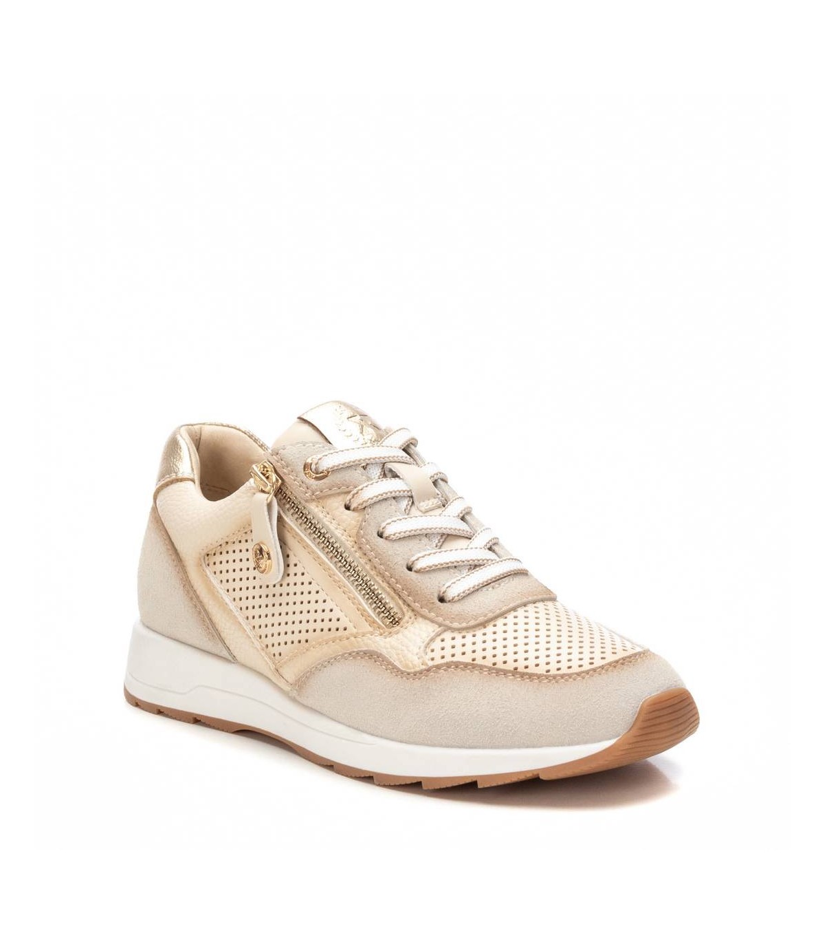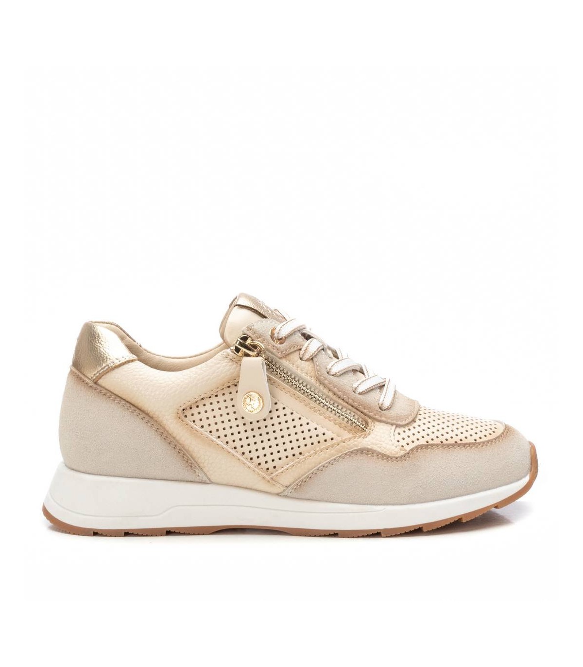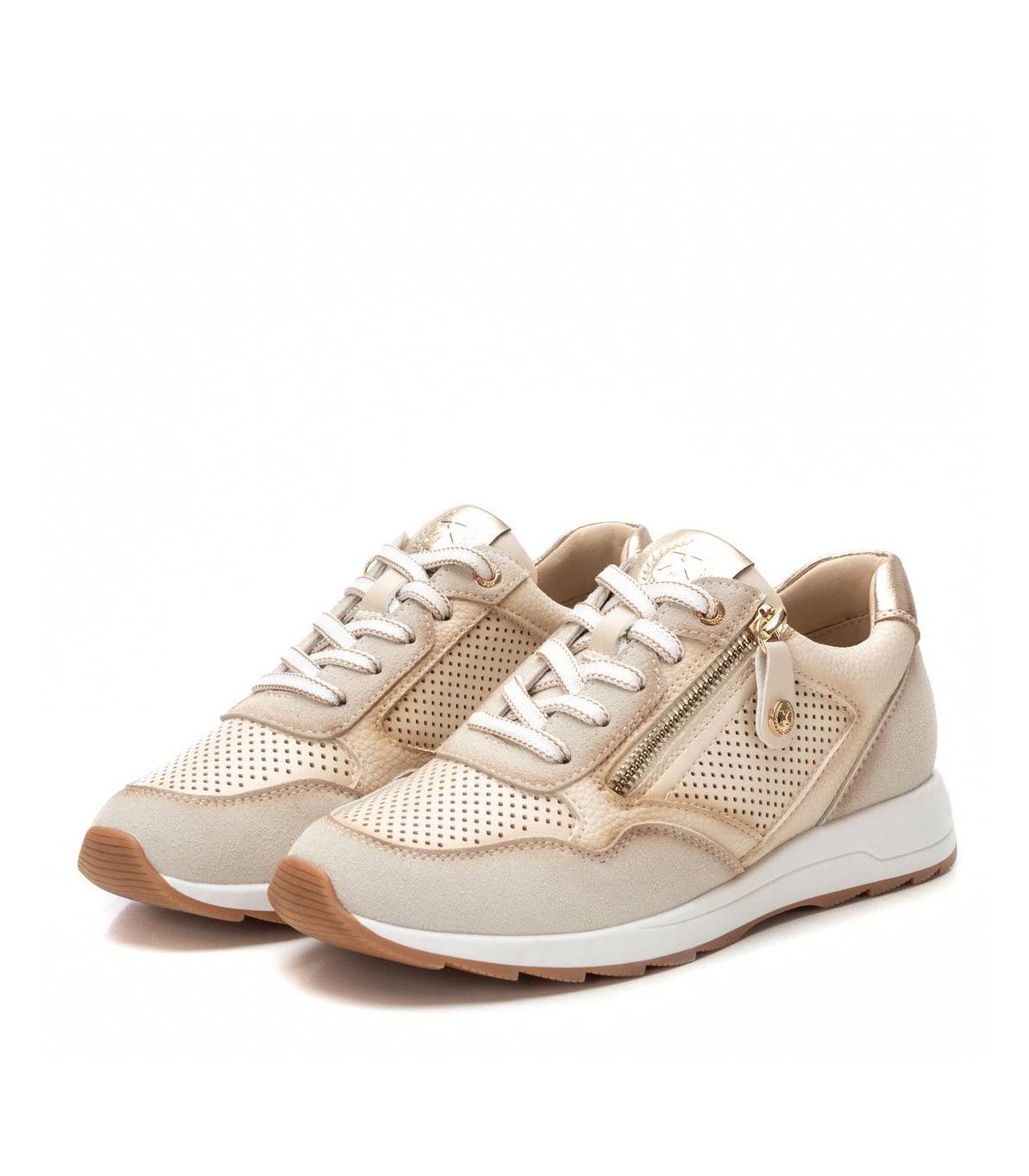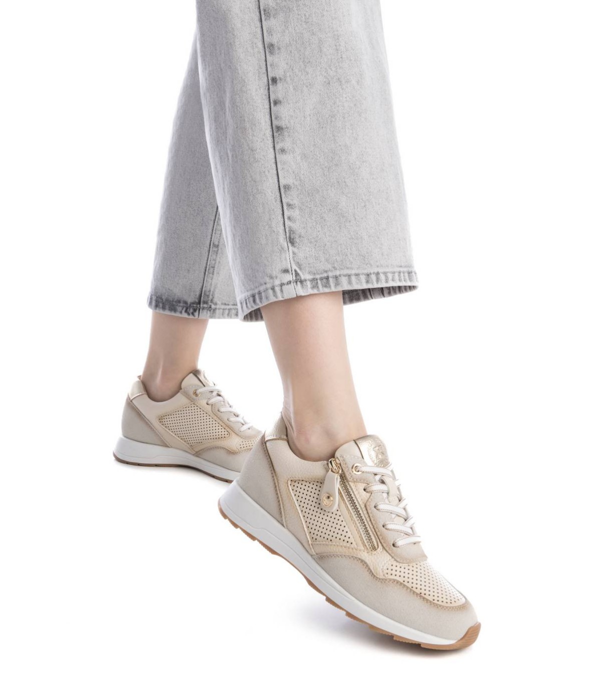 Zapatilla de mujer, de la marca Xti. Fabricada en material que imita la piel. Material troquelado en el lateral y en la puntera del modelo. Cierre mediante cremallera en el lateral para facilitar ponértelas. Detalle metalizado en el talón. Con plantilla extraíble. Este modelo ha obtenido el certificado vegano por la organización mundial PETA (Organización de los derechos de los animales).