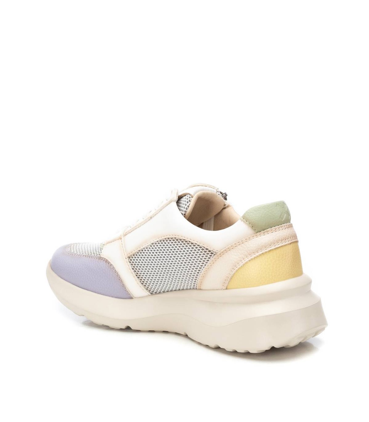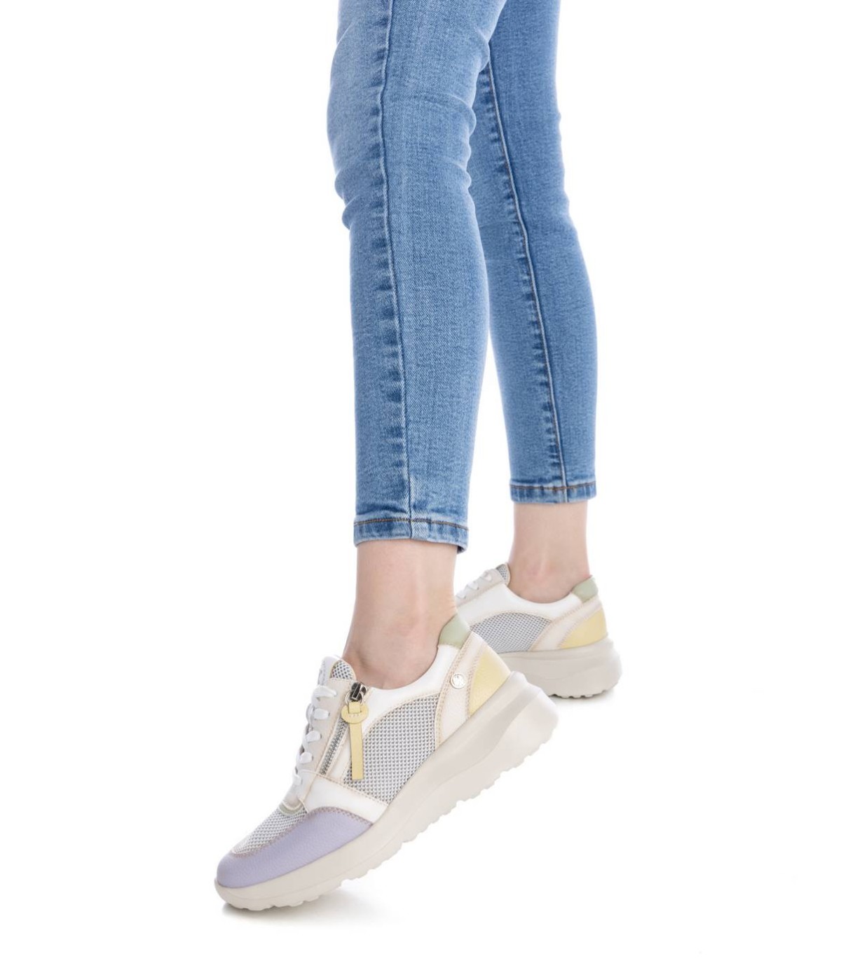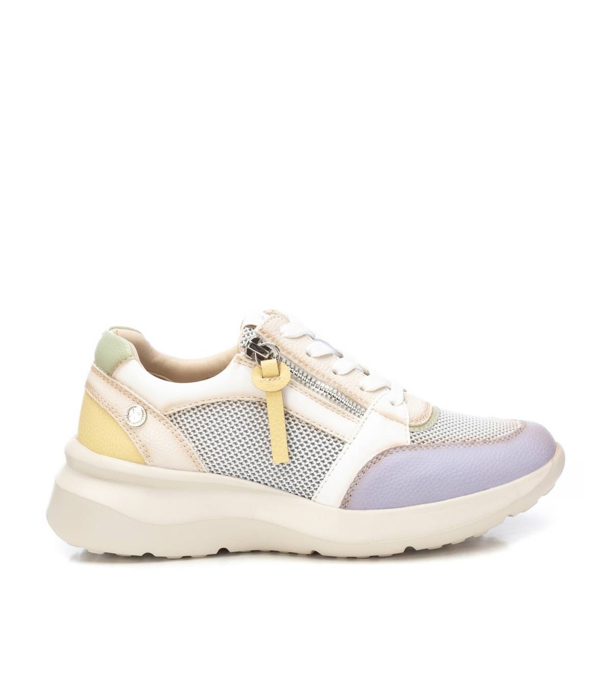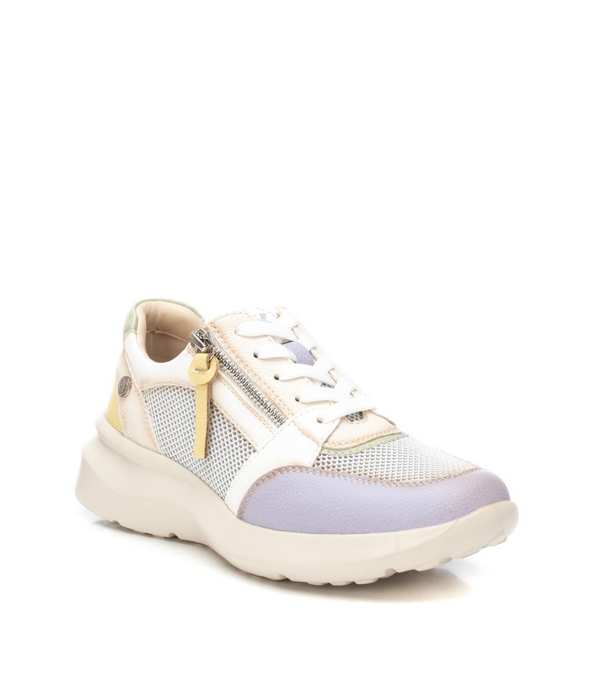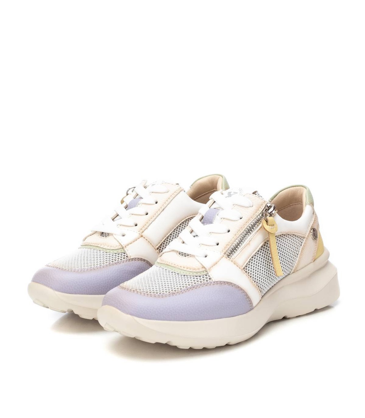 Zapatilla de mujer, de la marca Xti. Fabricada en combinación de material que imita la piel con textil. Cierre mediante cordones. Suela de goma antideslizante. Con plantilla extraíble. Este modelo ha obtenido el certificado vegano por la organización mundial PETA (Organización de los derechos de los animales).
