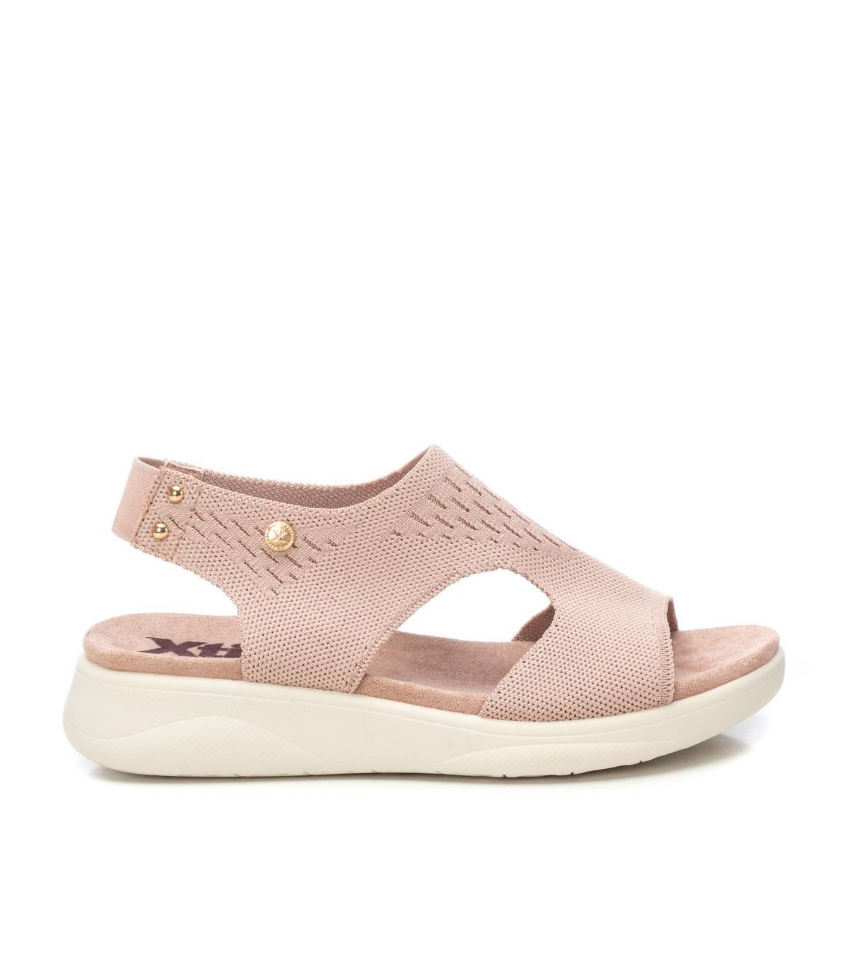 Sandalia de mujer, de la marca Xti. Fabricada en material textil elástico. Ideales para llevarlas durante todo el día. Suela deportiva antideslizante. Este modelo ha obtenido el certificado vegano por la organización mundial PETA (Organización de los derechos de los animales).