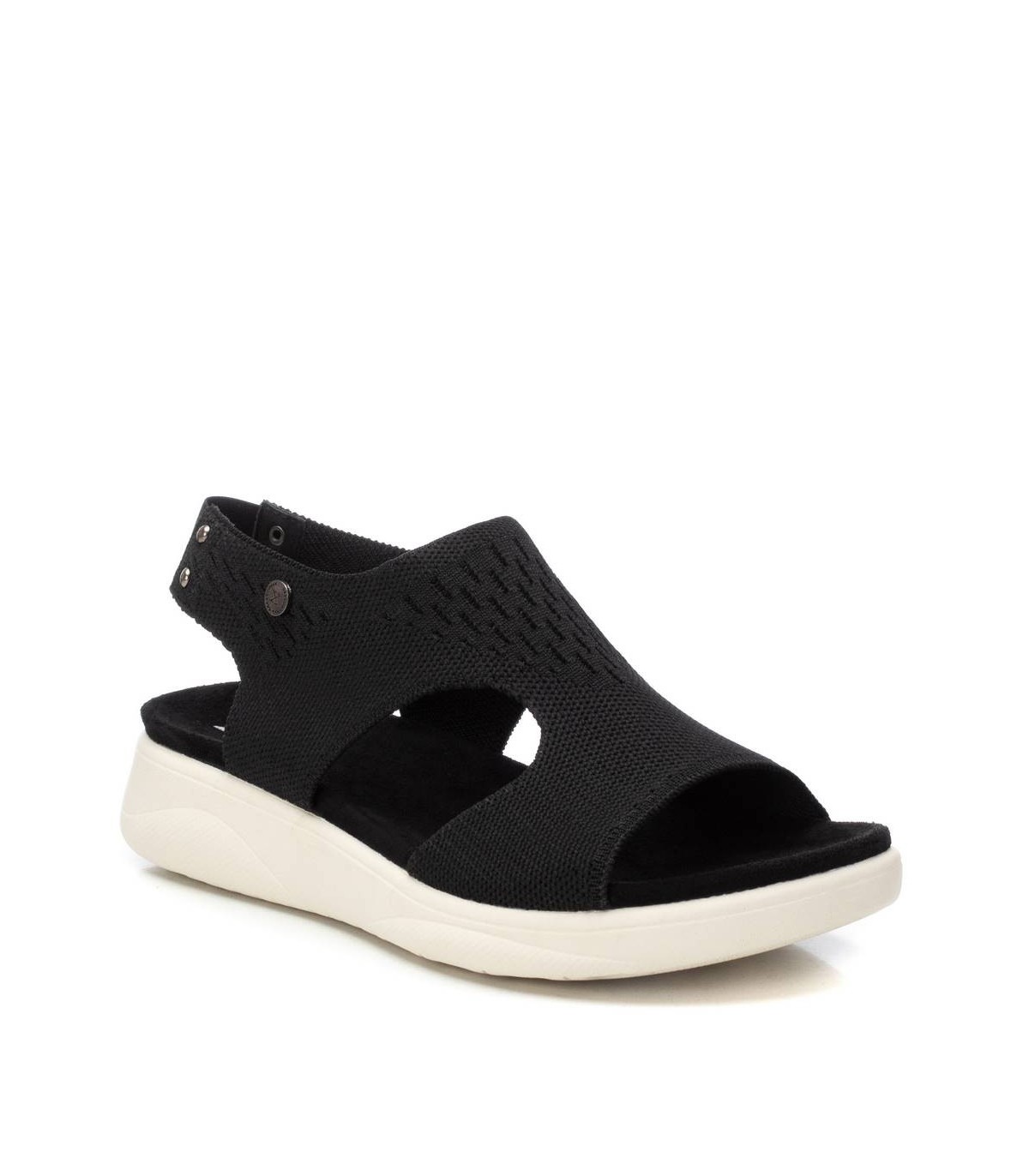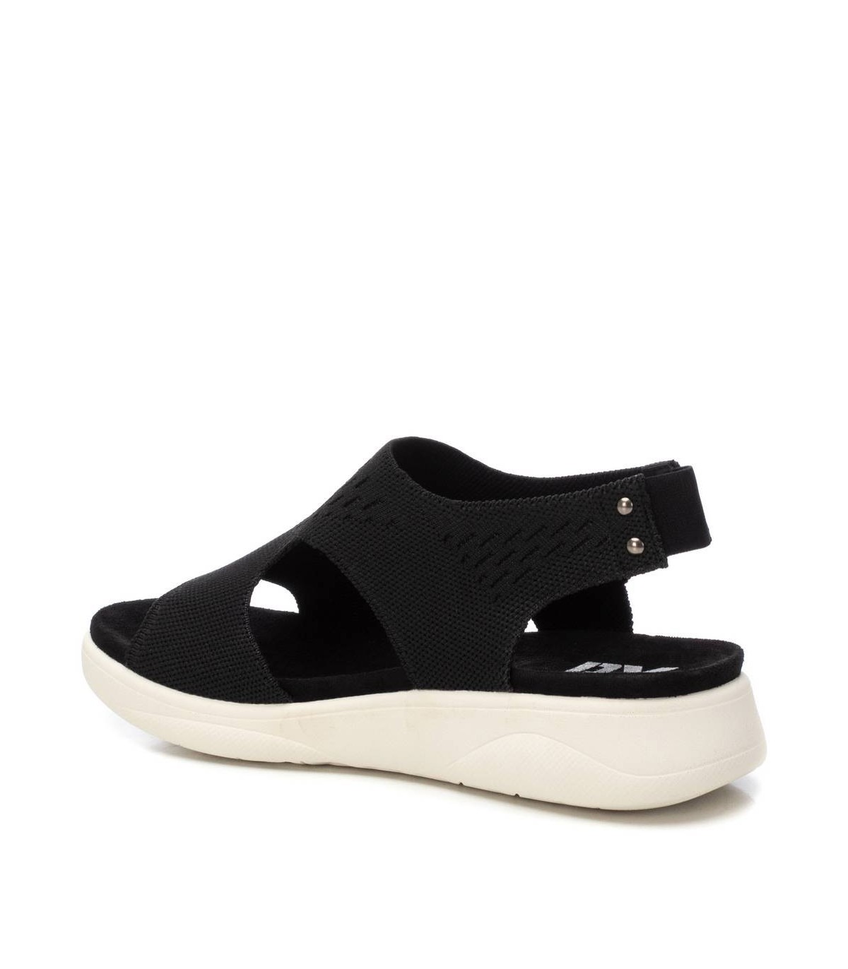 Sandalia de mujer, de la marca Xti. Fabricada en material textil elástico. Ideales para llevarlas durante todo el día. Suela deportiva antideslizante. Este modelo ha obtenido el certificado vegano por la organización mundial PETA (Organización de los derechos de los animales).