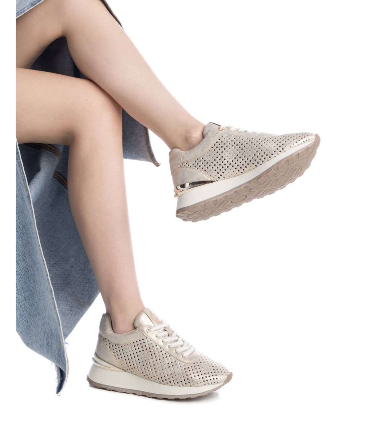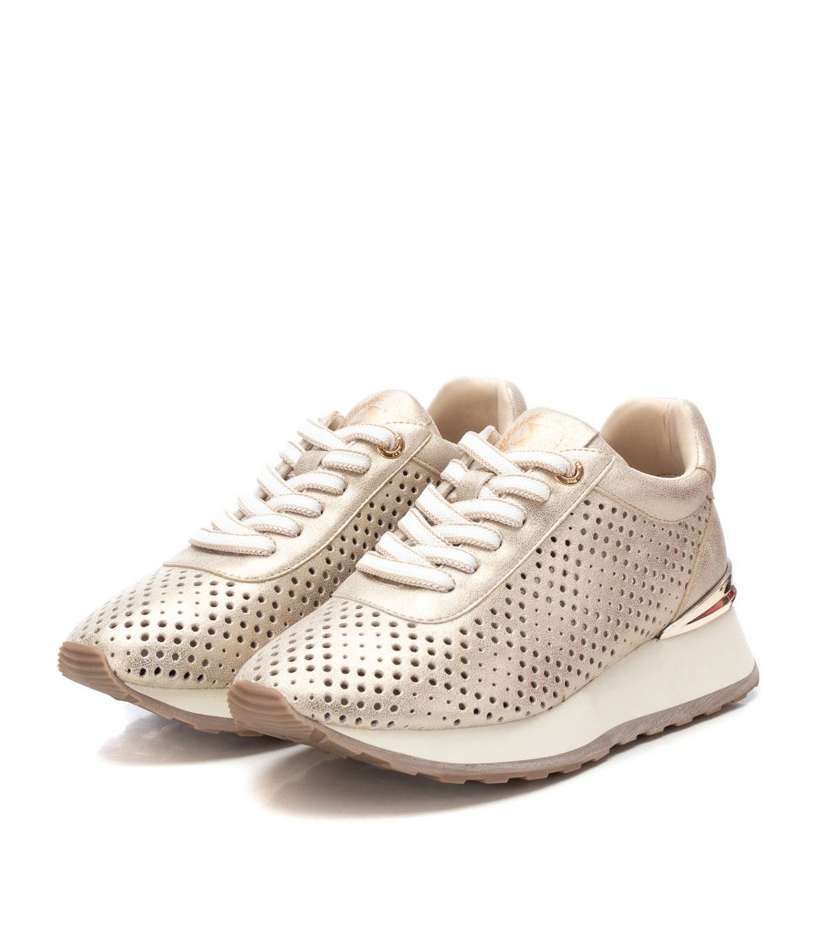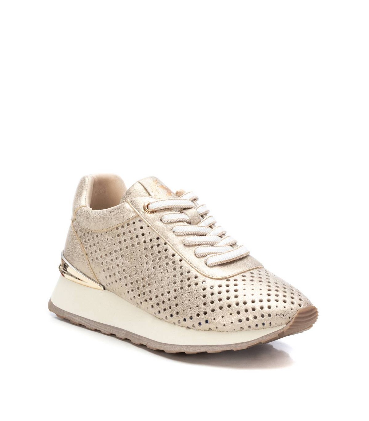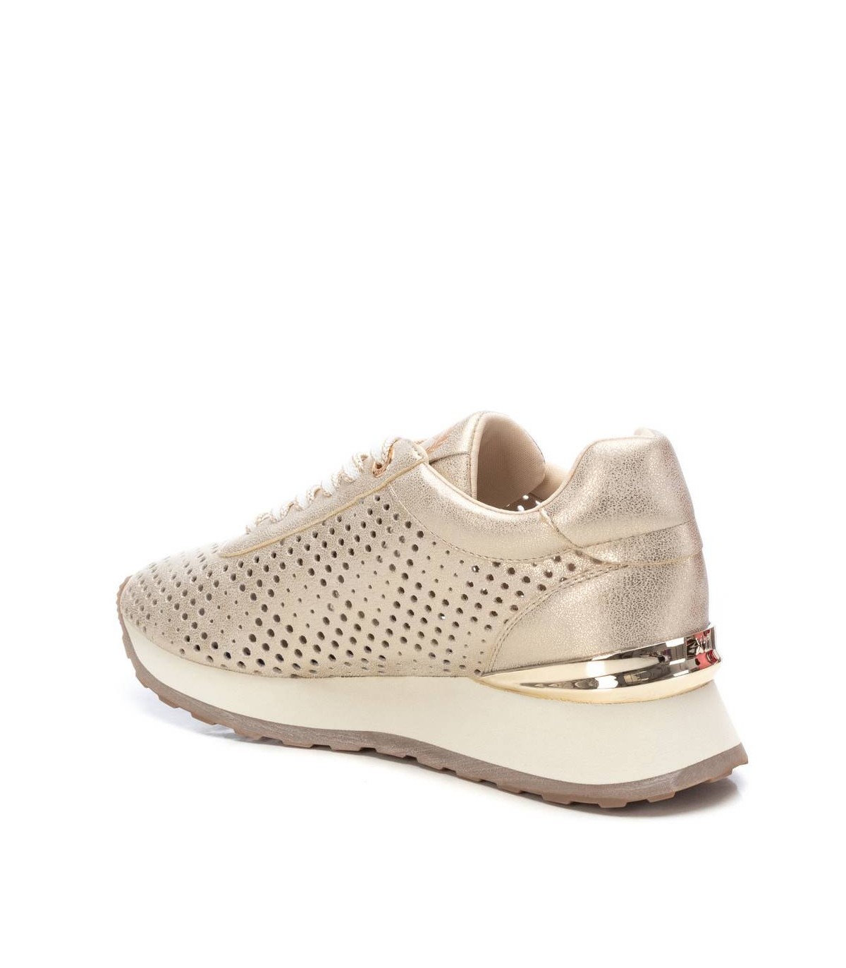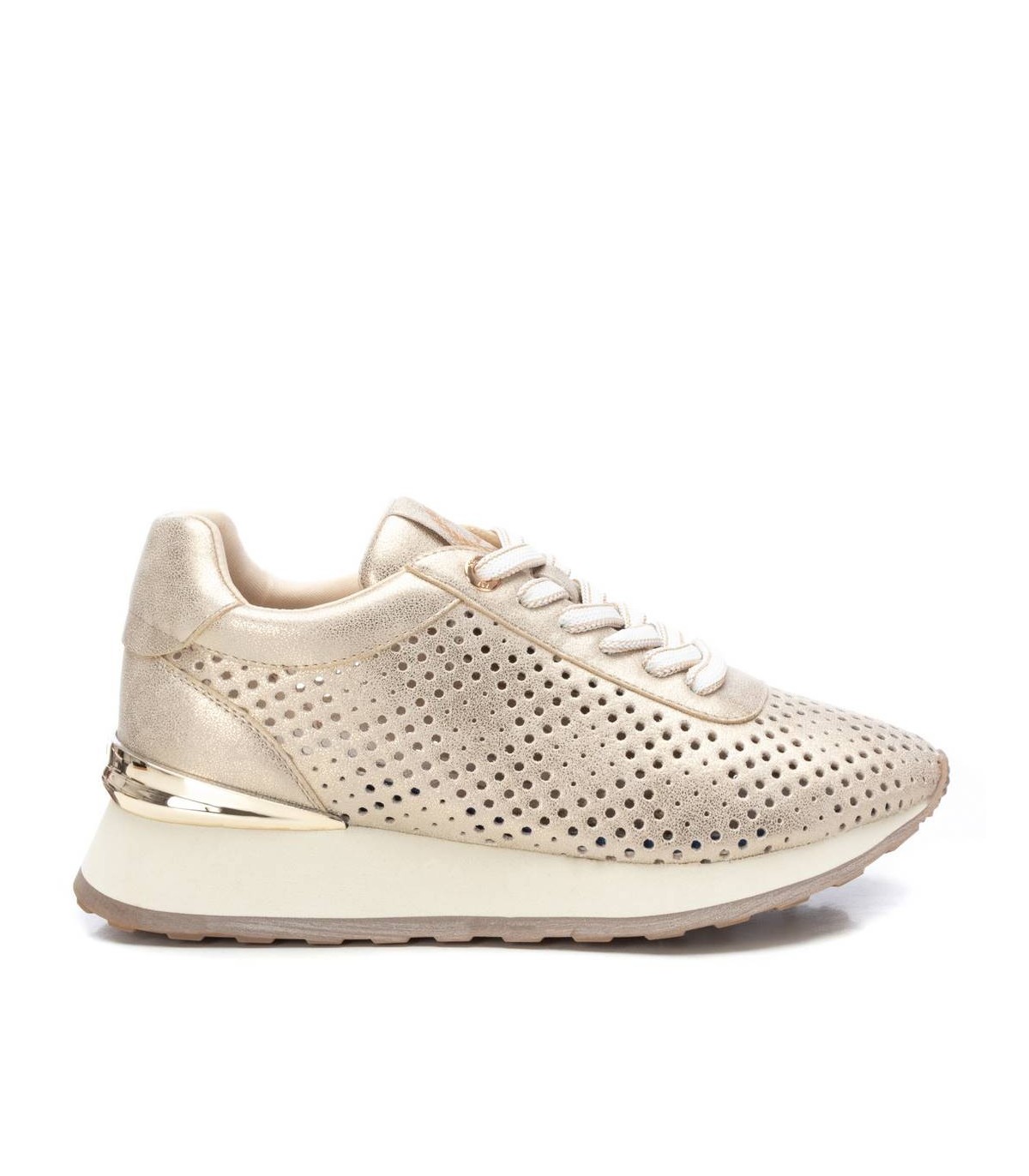 Zapatilla de mujer, de la marca Xti. Fabricada en material que imita la piel. Bonito troquelado que aporta un aspecto fresco y veraniego para los días mas calurosos. Con plantilla extraíble. Suela de goma antideslizante, con detalle metalizado en el talón. Este modelo ha obtenido el certificado vegano por la organización mundial PETA (Organización de los derechos de los animales).