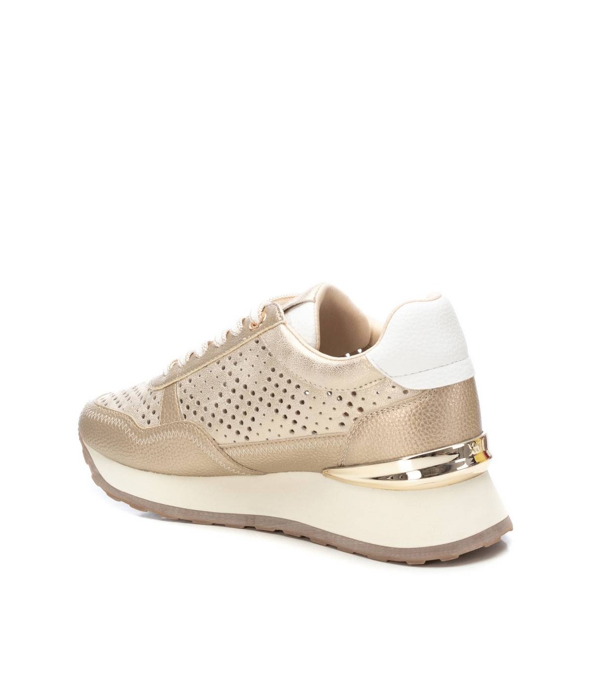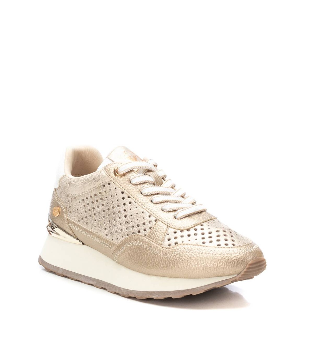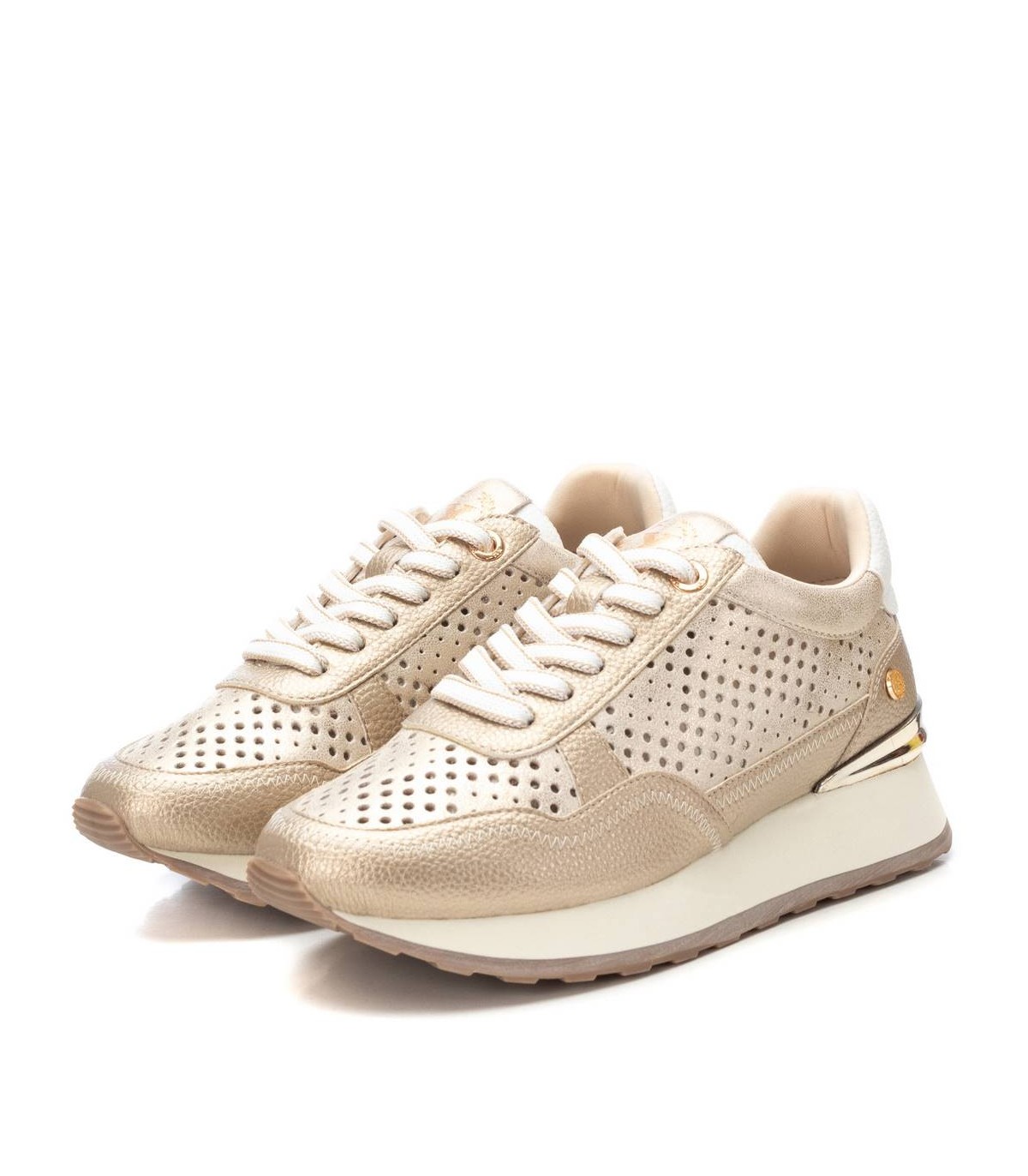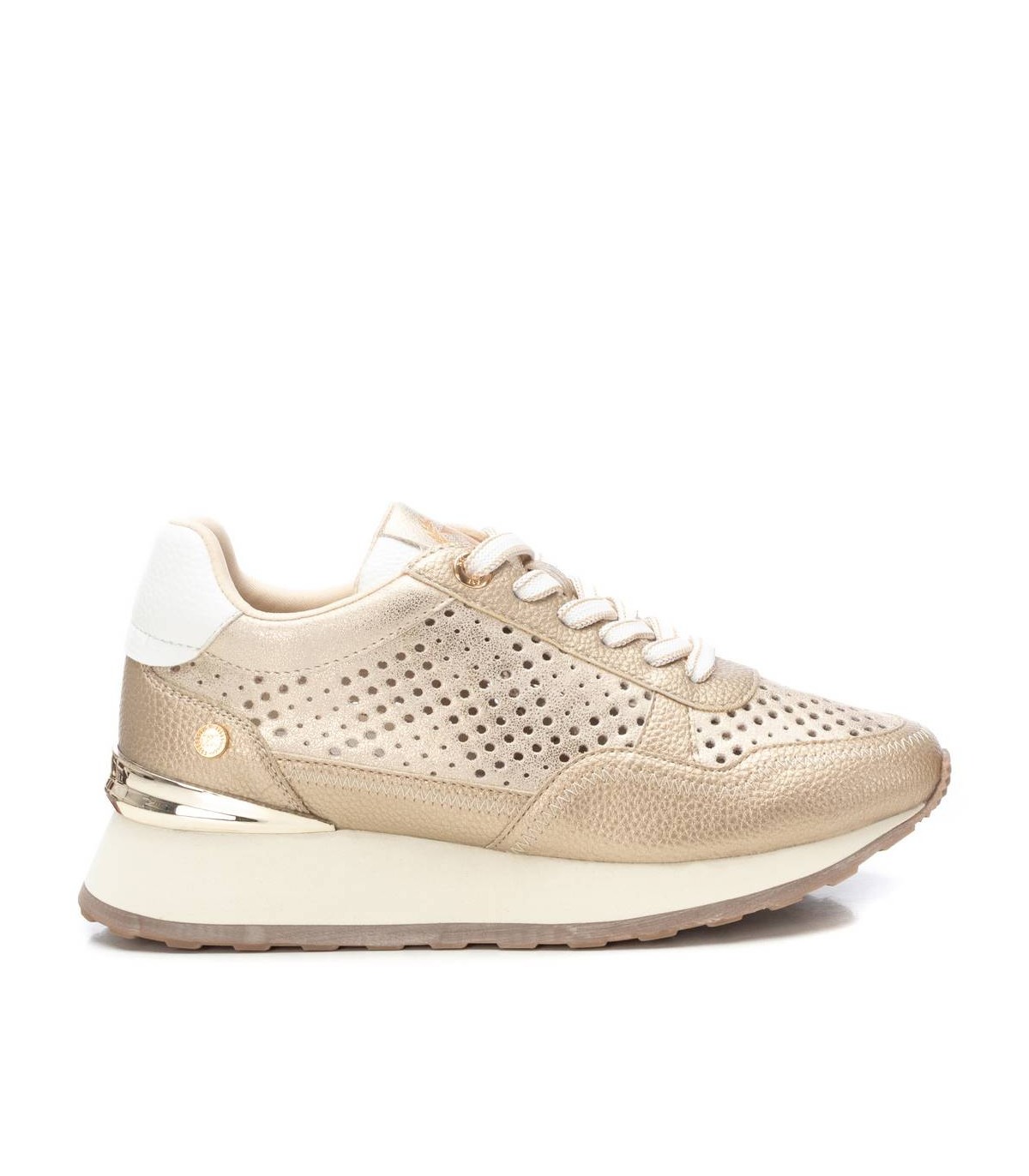 Zapatillas de mujer, de la marca Xti. Fabricado en material que imita la piel con efecto metalizado. Cierre con cordones que llevan detalle al tono del deportivo. Suela antideslizante con detalle metalizado en el talón. Con plantilla extraíble.
