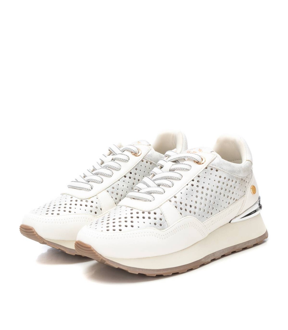Zapatillas de mujer, de la marca Xti. Fabricado en material que imita la piel con efecto metalizado. Cierre con cordones que llevan detalle al tono del deportivo. Suela antideslizante con detalle metalizado en el talón. Con plantilla extraíble.