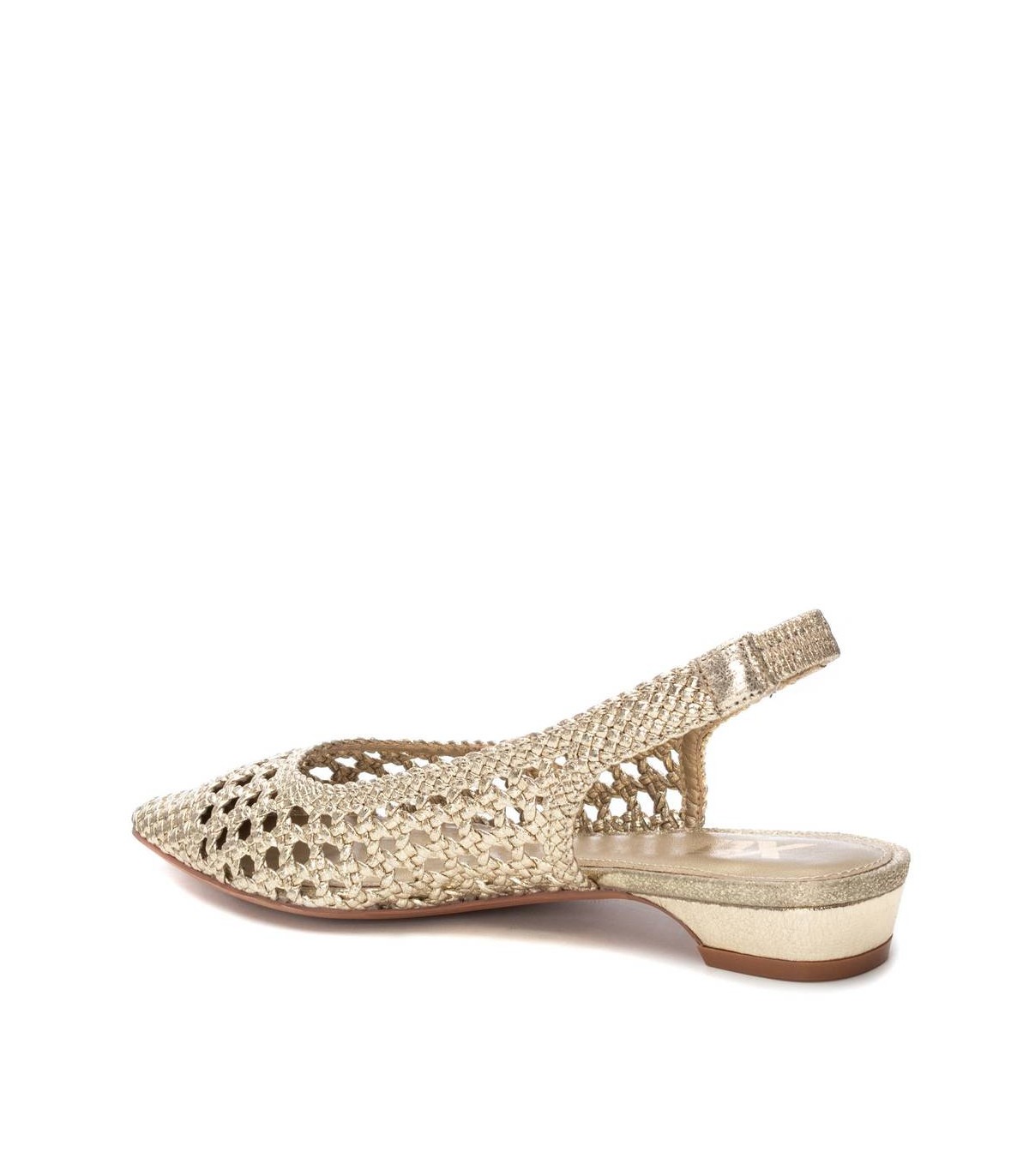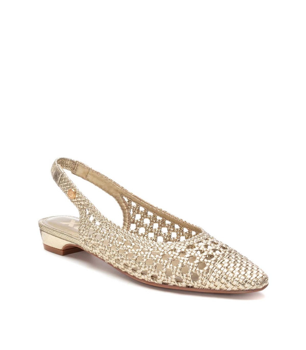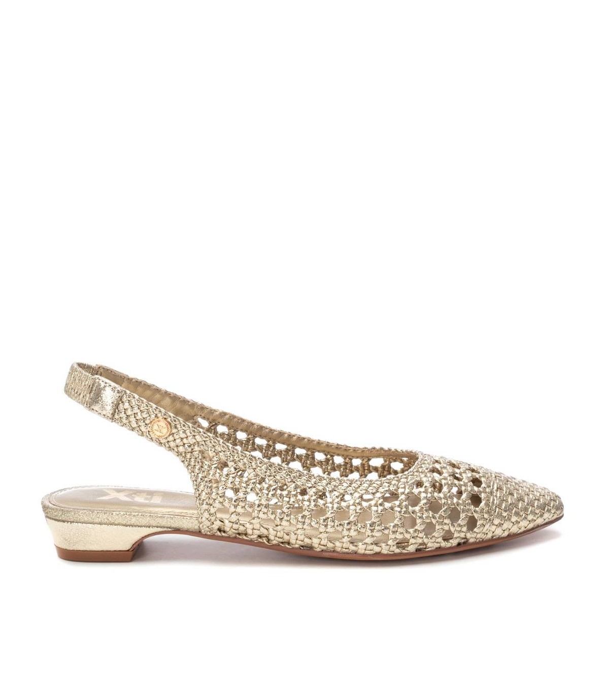 Zapato destalonado de mujer, de la marca Xti. Fabricado en material textil con acabado metalizado. Modelo trenzado con pulsera elástica en el tobillo con muy buena sujeción. Ideal para todos tus conjuntos. Este modelo ha obtenido el certificado vegano por la organización mundial PETA (Organización de los derechos de los animales).