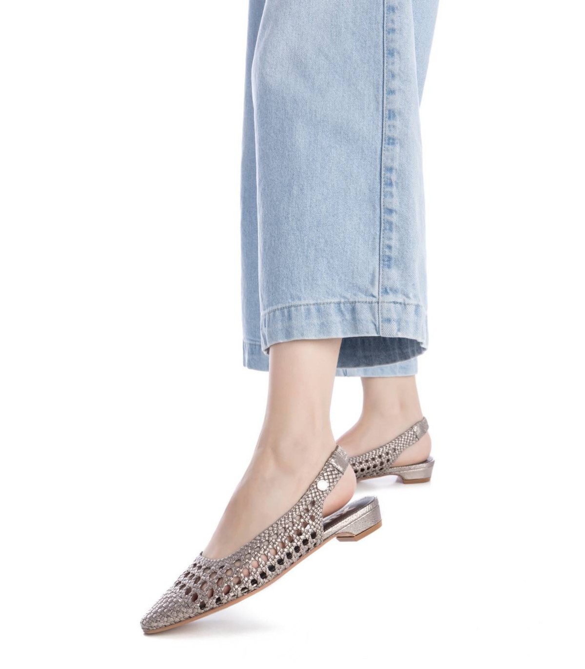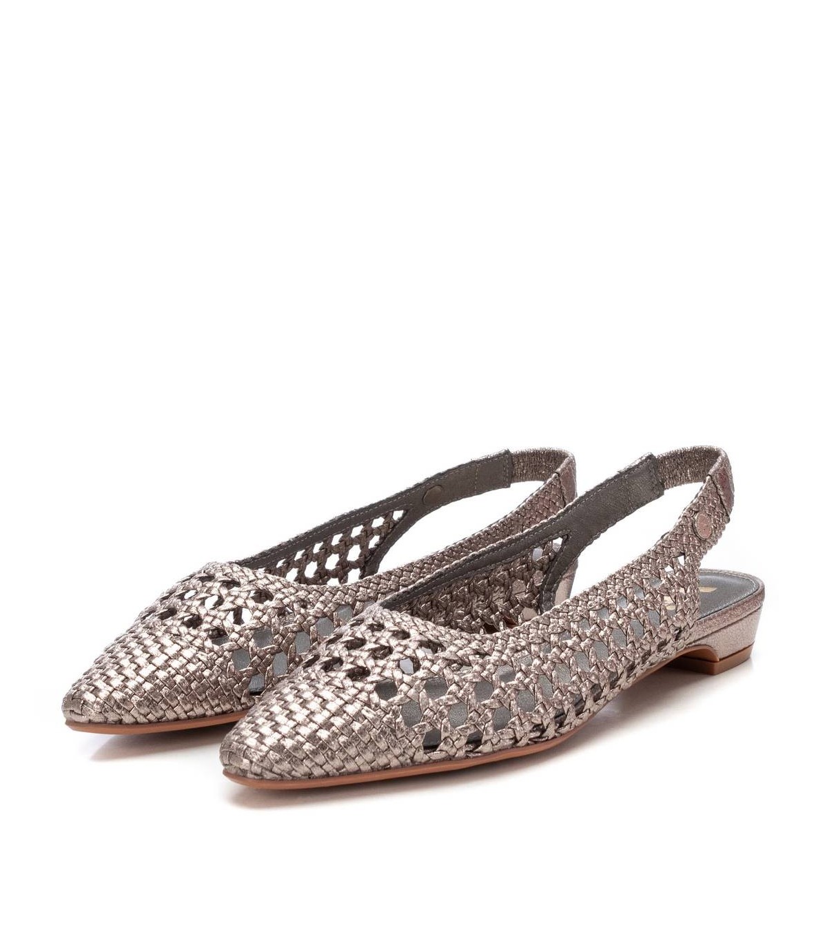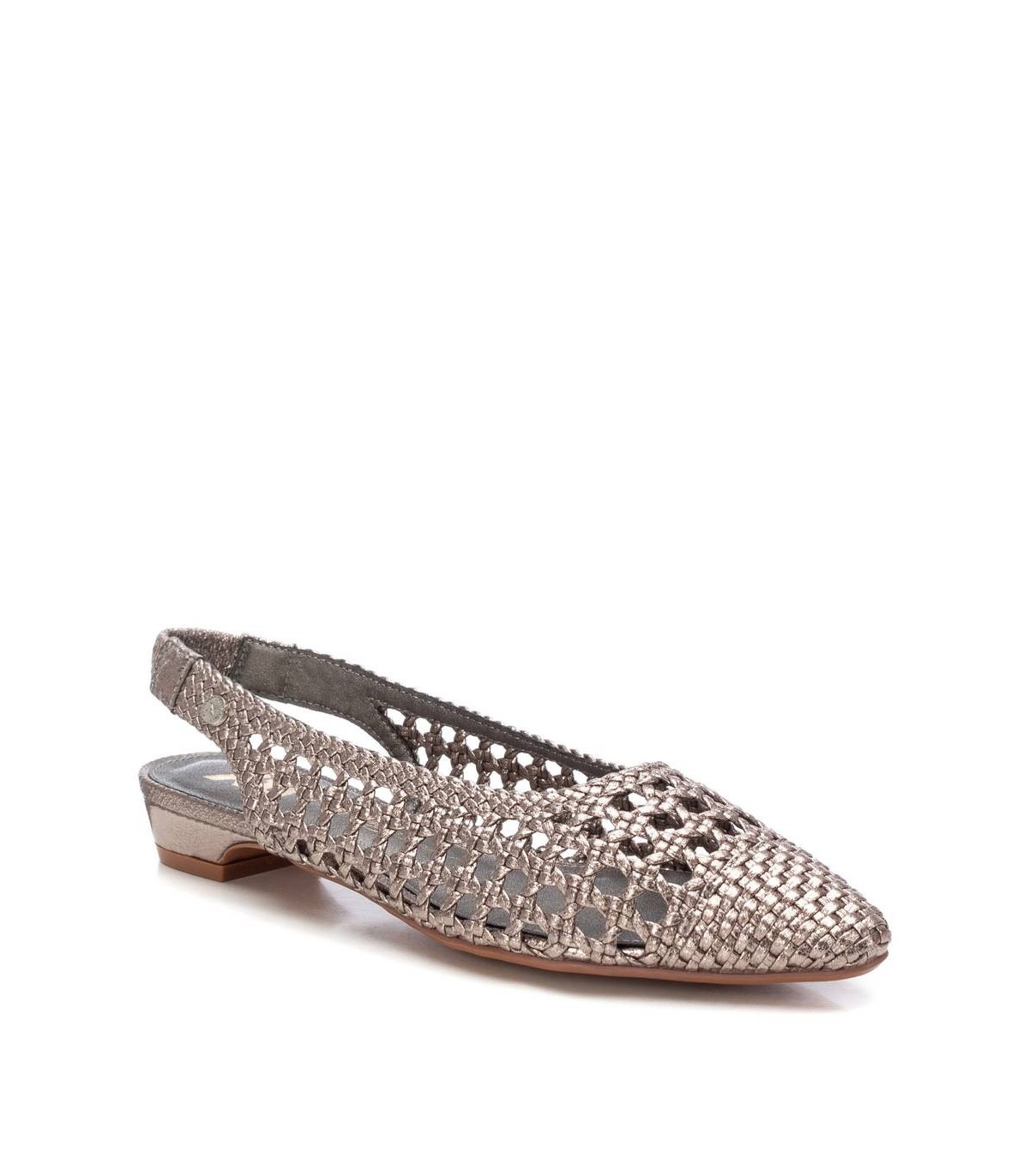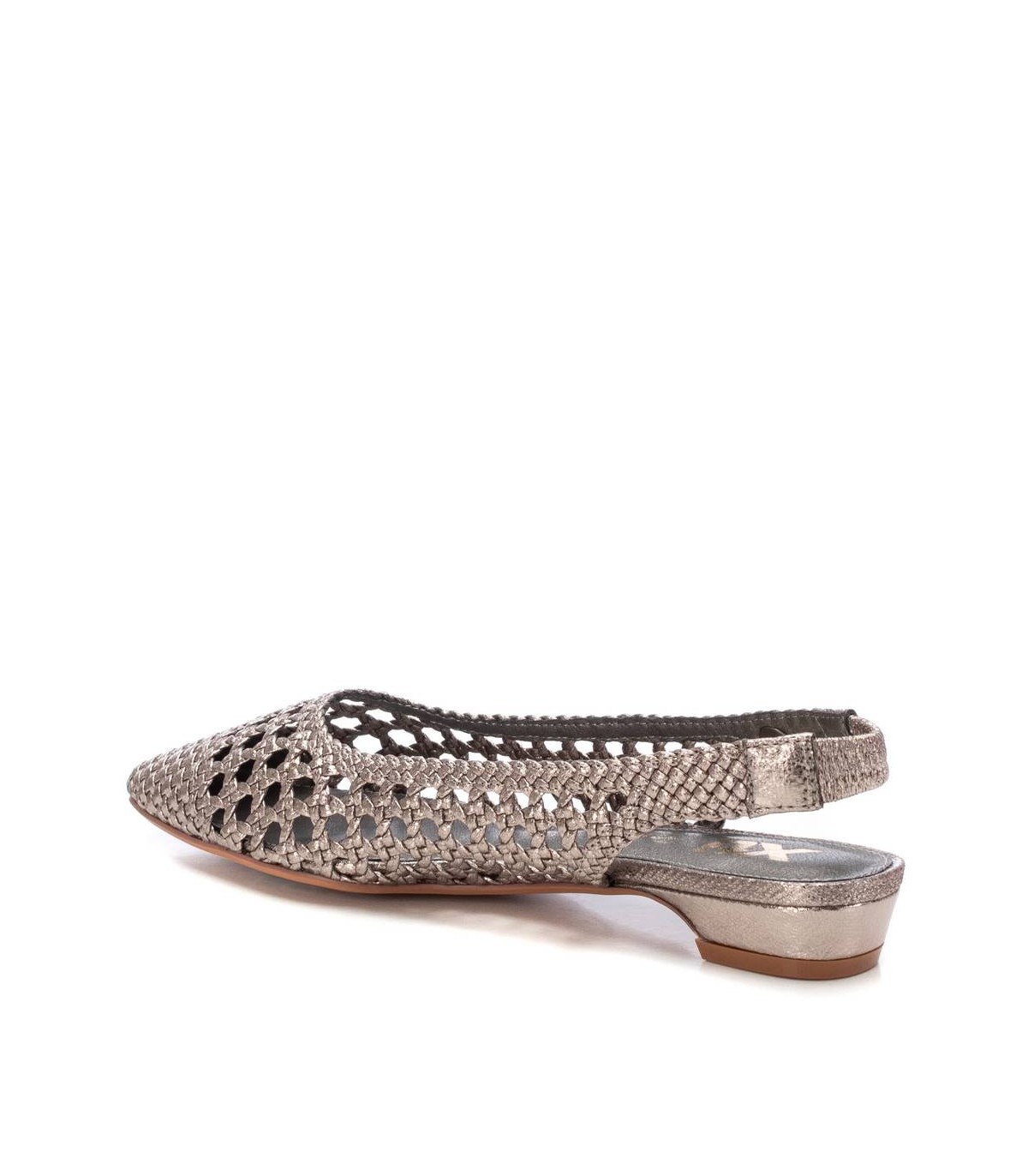 Zapato destalonado de mujer, de la marca Xti. Fabricado en material textil con acabado metalizado. Modelo trenzado con pulsera elástica en el tobillo con muy buena sujeción. Ideal para todos tus conjuntos. Este modelo ha obtenido el certificado vegano por la organización mundial PETA (Organización de los derechos de los animales).
