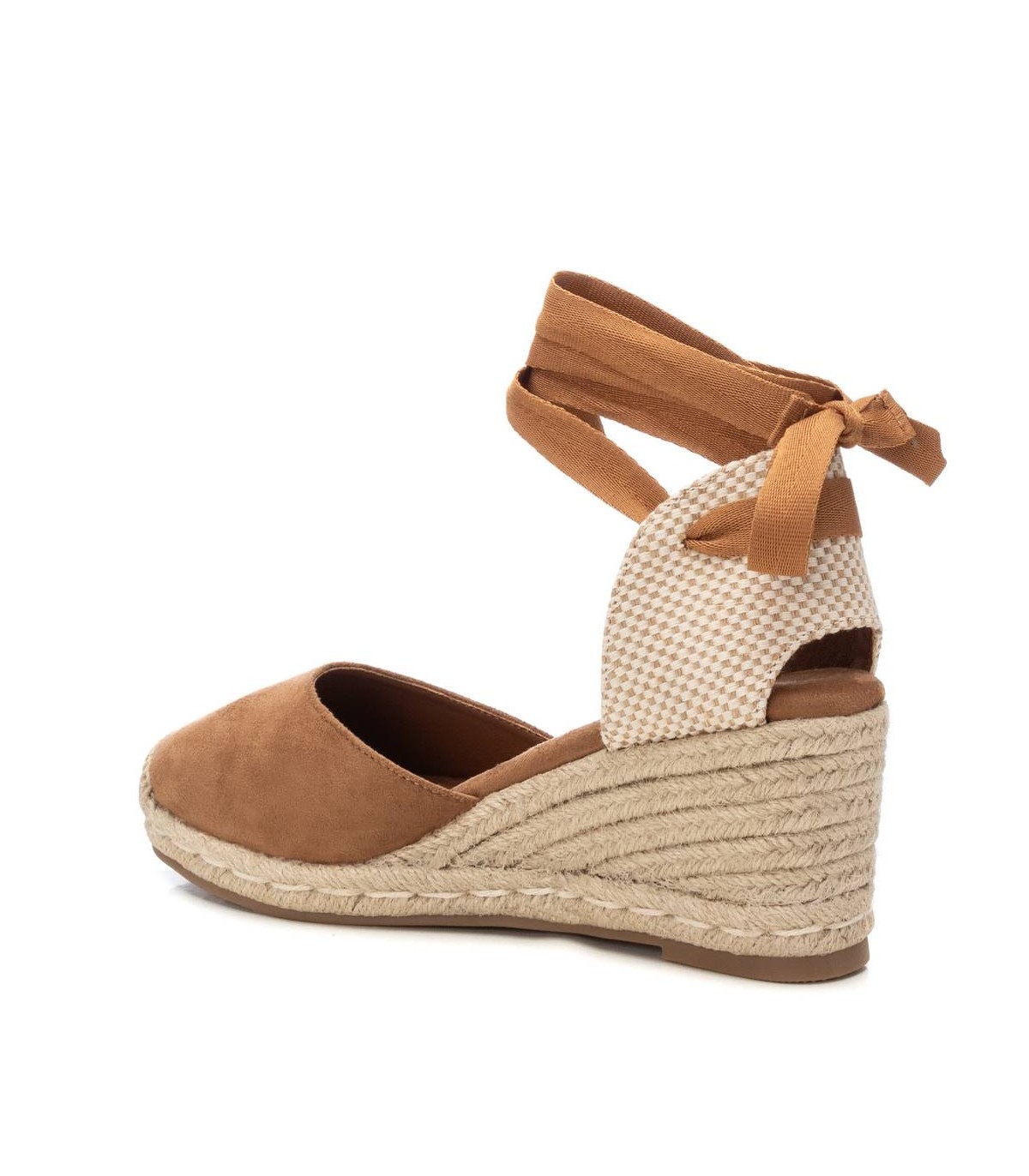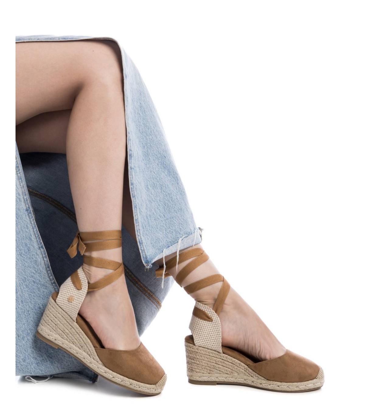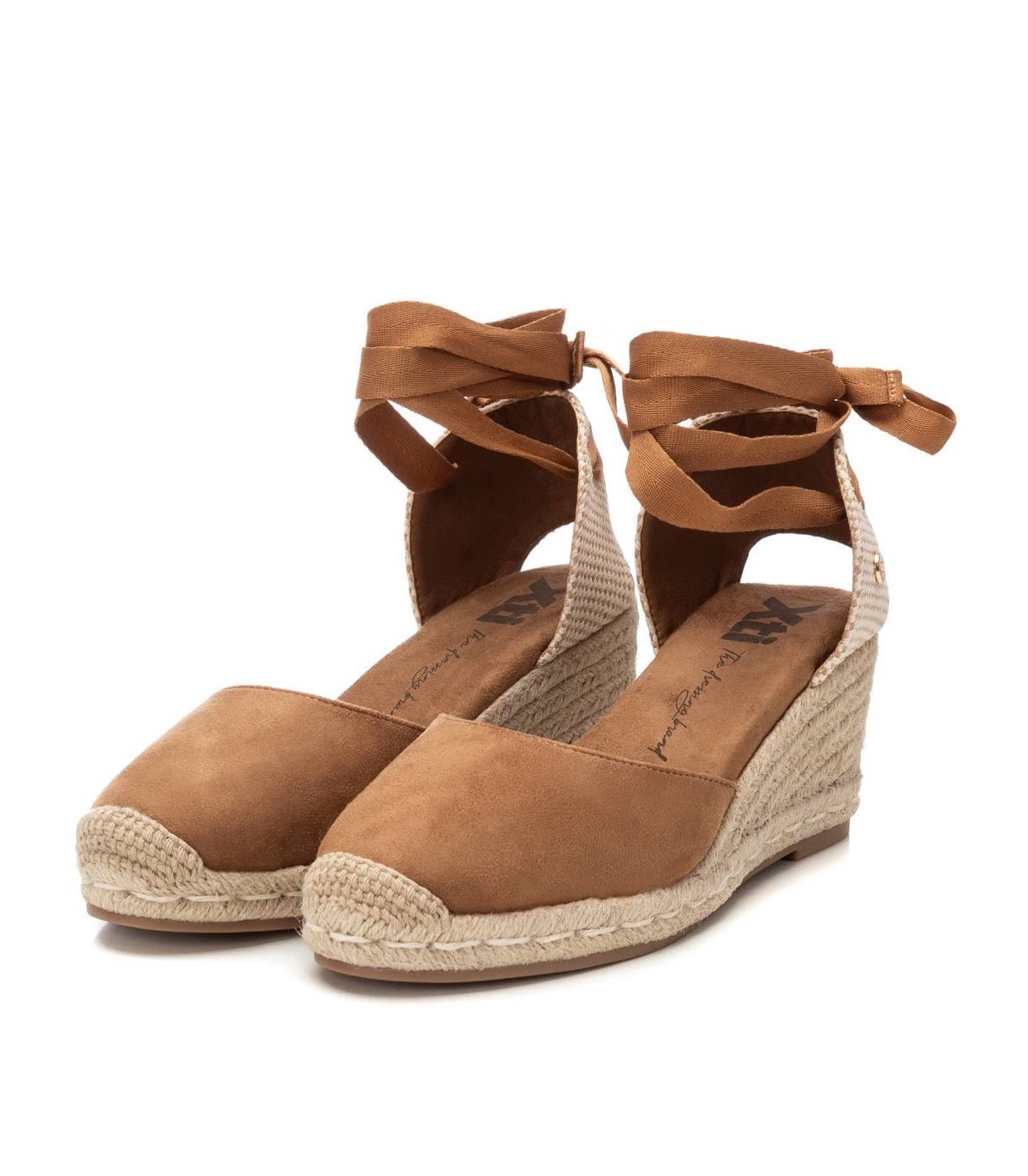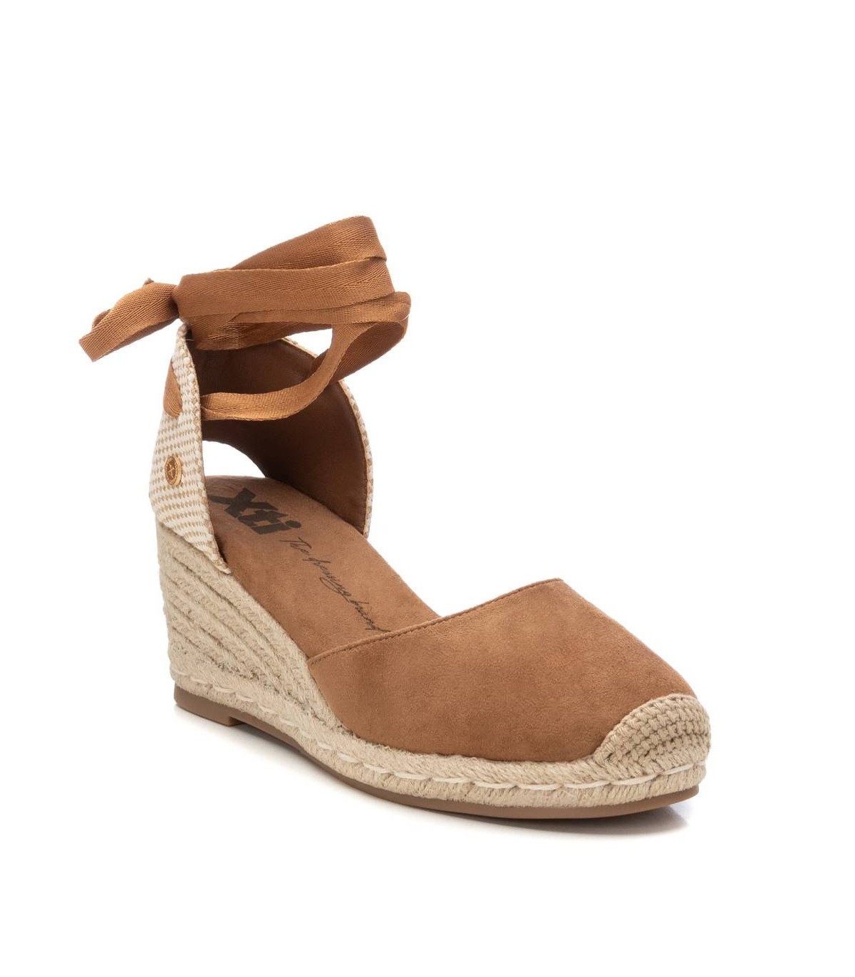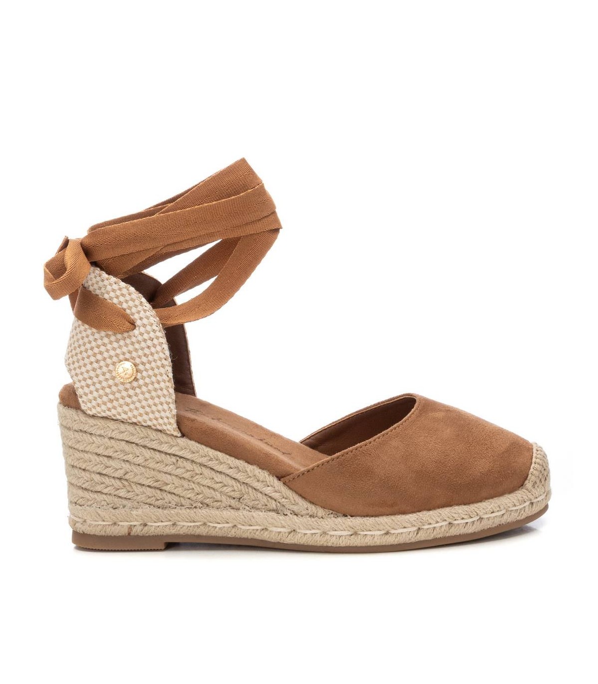 Zapato de mujer tipo valenciana, de la marca Xti. Fabricada en suave antelina. Cuña de 7 cm forrada en yute con suela de goma antideslizante. Ideal para todos tus looks. Este modelo ha obtenido el certificado vegano por la organización mundial PETA (Organización de los derechos de los animales).