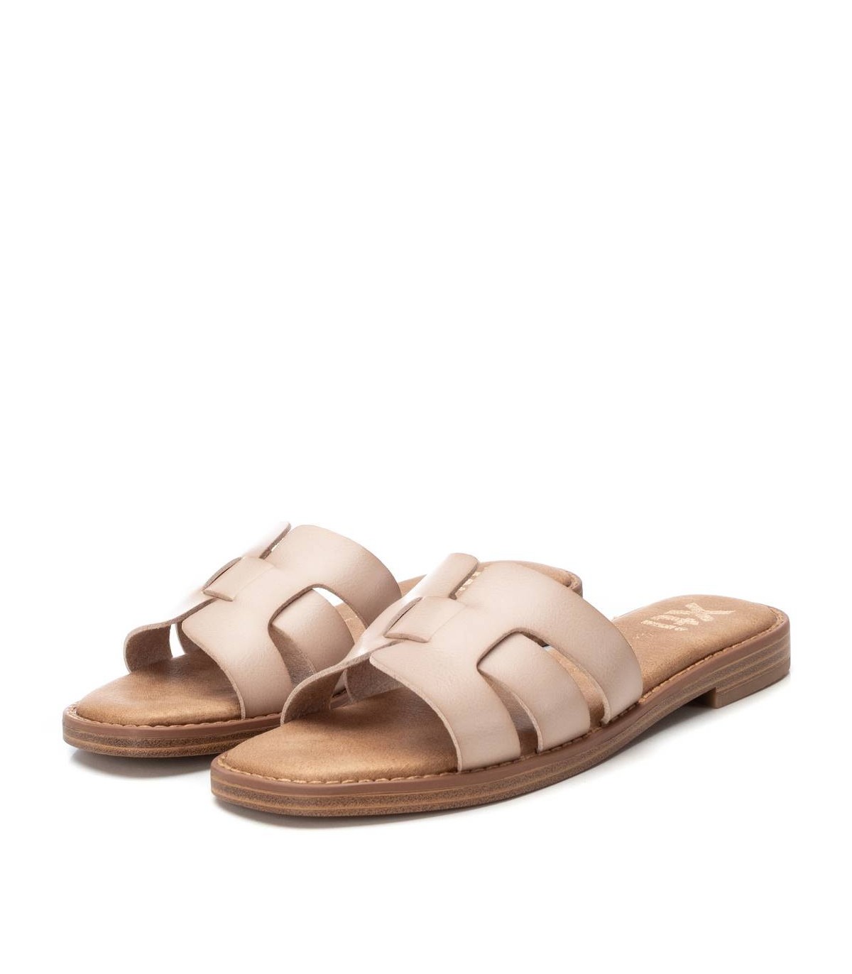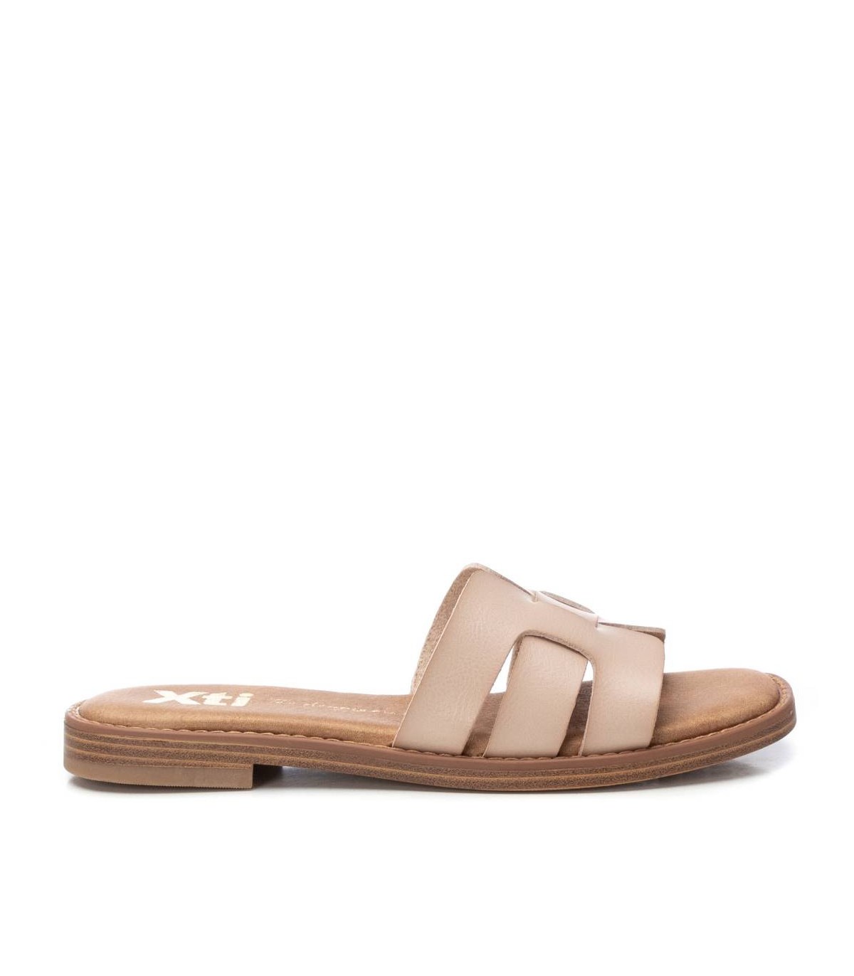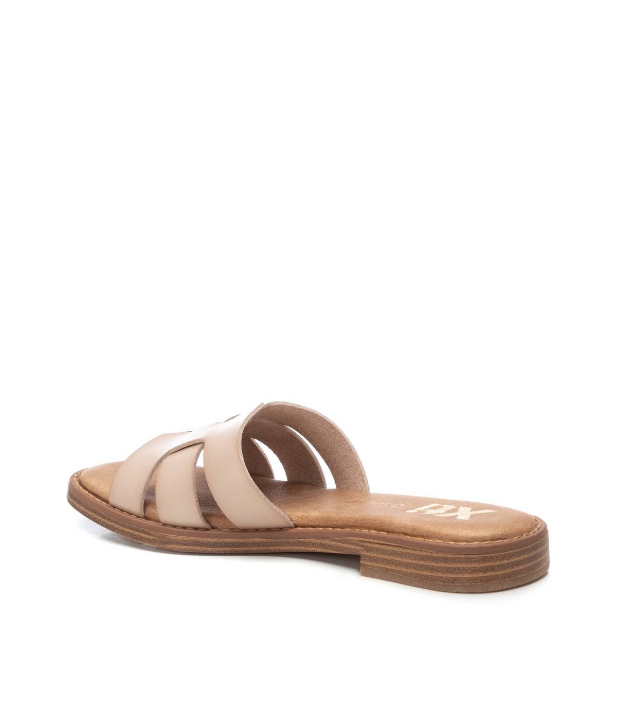 Sandalia de mujer de la marca Xti. Fabricada en material que imita la piel. Diseño de pala con tiras entrelazadas. Ideales para vestir cada día con tus mejores conjuntos. Suela plana y antideslizante. Este modelo ha obtenido el certificado vegano por la organización mundial PETA (Organización de los derechos de los animales).