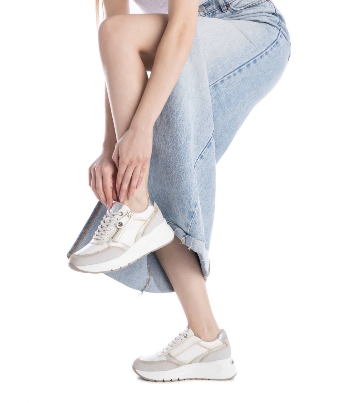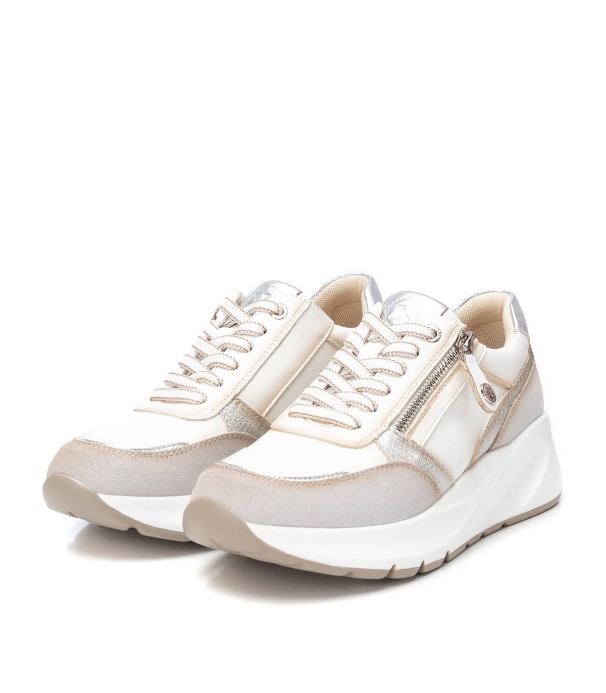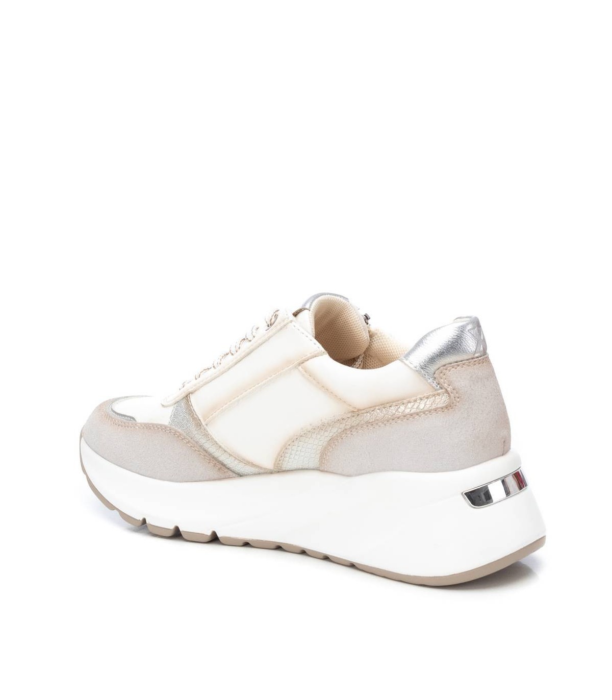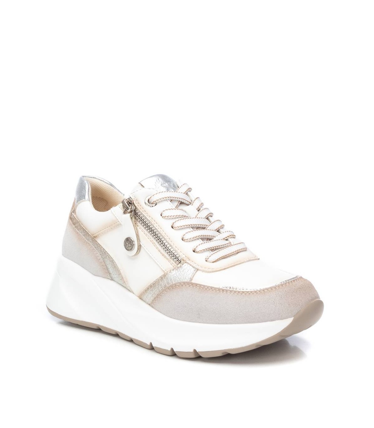 Zapatilla de mujer, de la marca Xti. Fabricada en combinación de material que imita la piel con textil. Cierre mediante cordones. Suela de goma antideslizante. Con plantilla extraíble. Este modelo ha obtenido el certificado vegano por la organización mundial PETA (Organización de los derechos de los animales).
