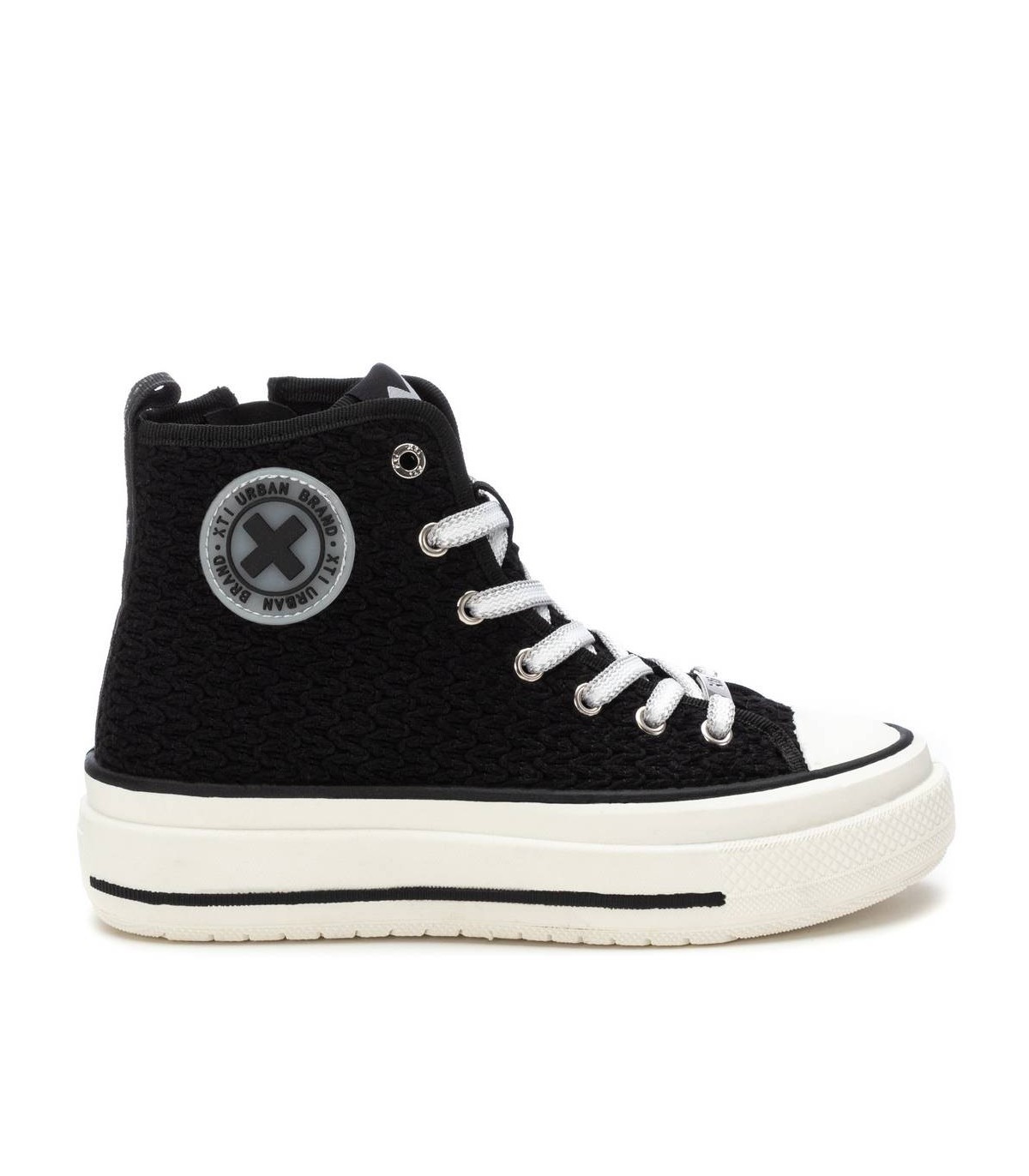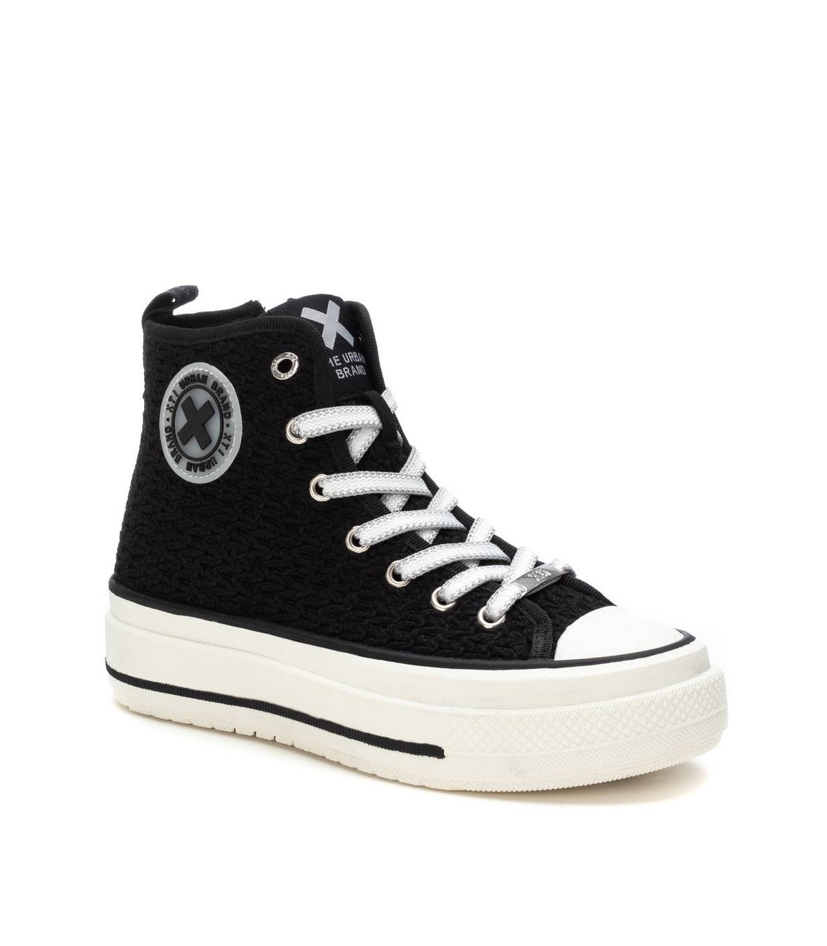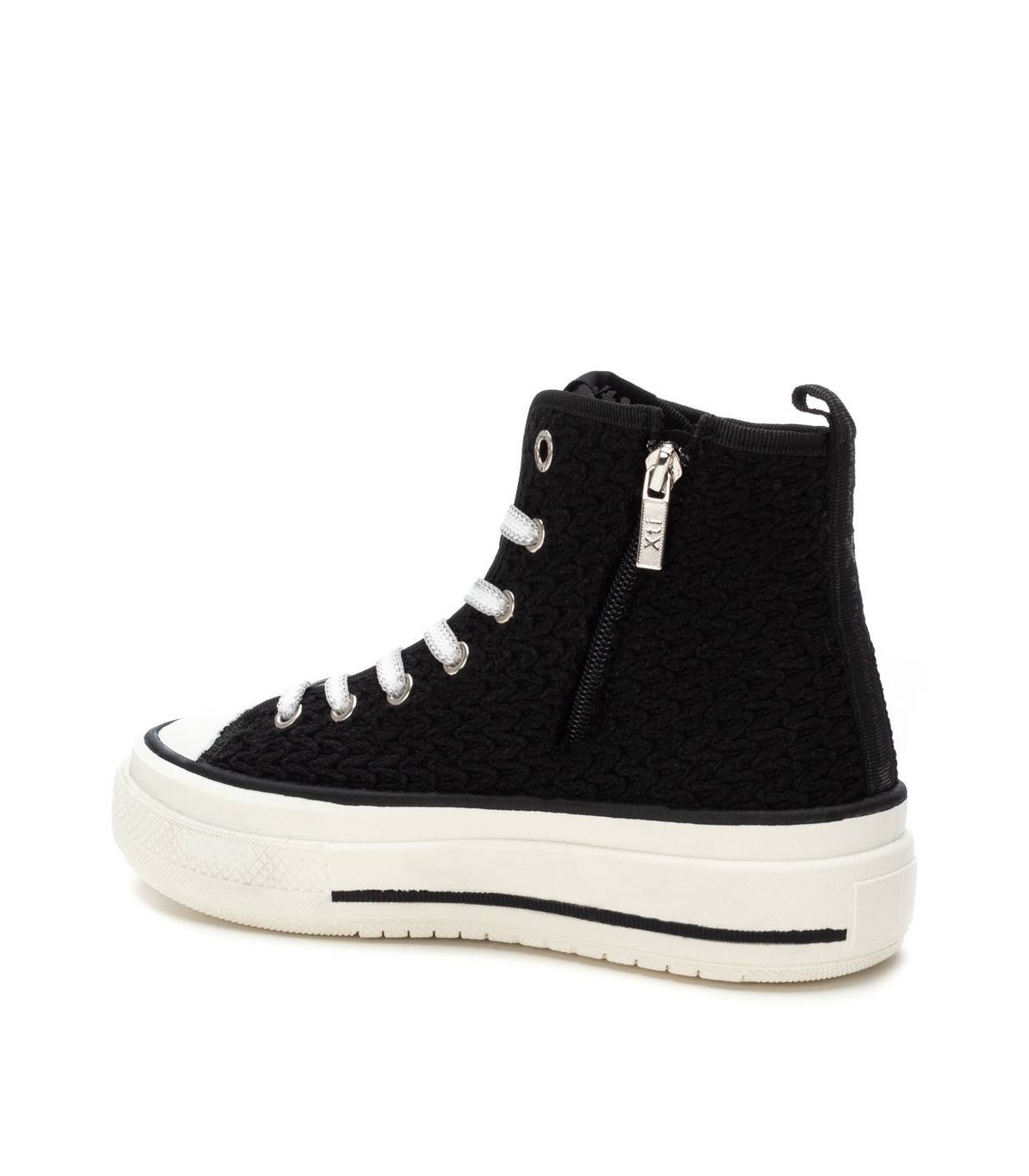 Botín de mujer, de la marca Xti. Fabricada en material textil crochet. Modelo innovador que quedarán ideal con tus conjuntos. Suela deportiva plana y antideslizante. Cierre mediante cremallera lateral. Con plantilla extraíble. Este modelo ha obtenido el certificado vegano por la organización mundial PETA (Organización de los derechos de los animales).