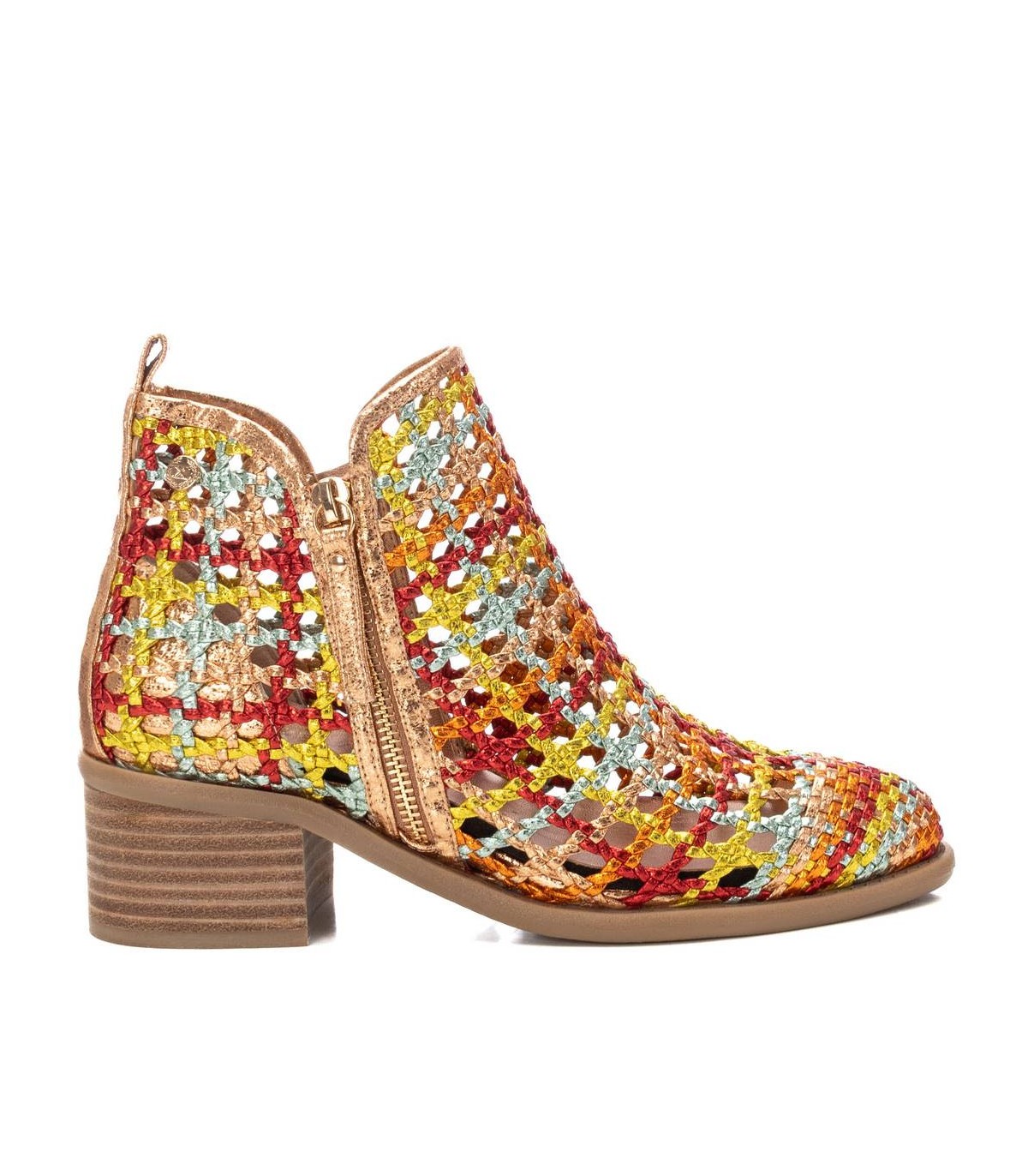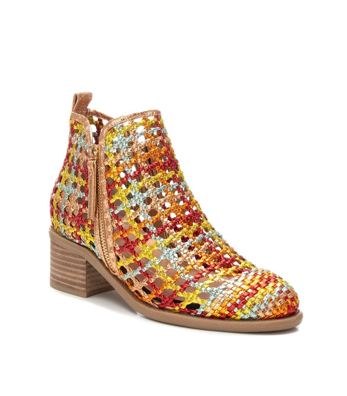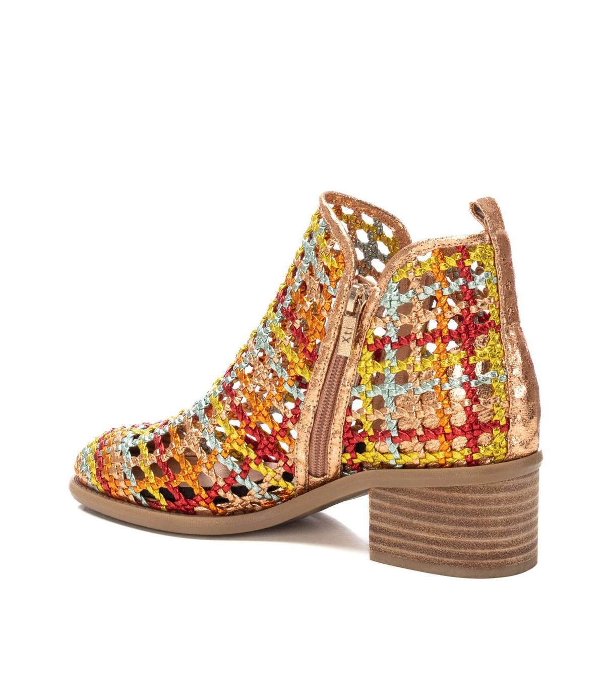 Botines de mujer, de la marca Xti. Fabricadas en material textil con efecto metalizado. Diseño en trenzado con distintos colores, para darle un toque colorido a tus looks de verano. Tacón forrado efecto madera y suela antideslizante.
