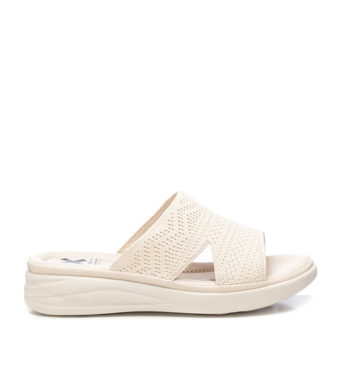 Sandalia de mujer, de la marca Xti. Fabricada en material textil. Super cómodos para llevarlos durante todo el día. Suela estilo deportiva y antideslizante. Este modelo ha obtenido el certificado vegano por la organización mundial PETA (Organización de los derechos de los animales).