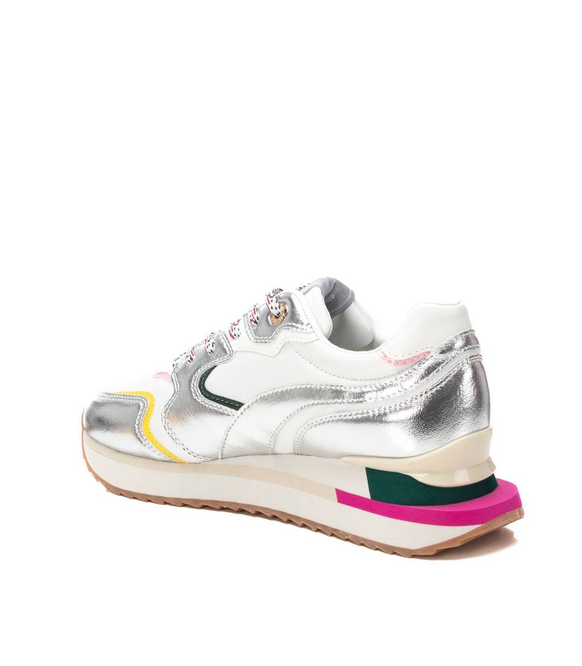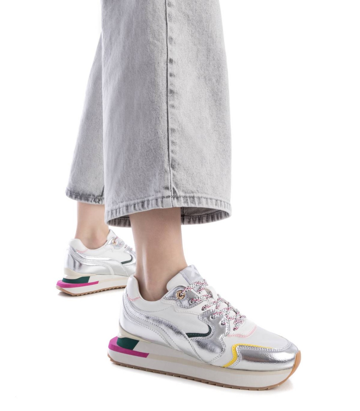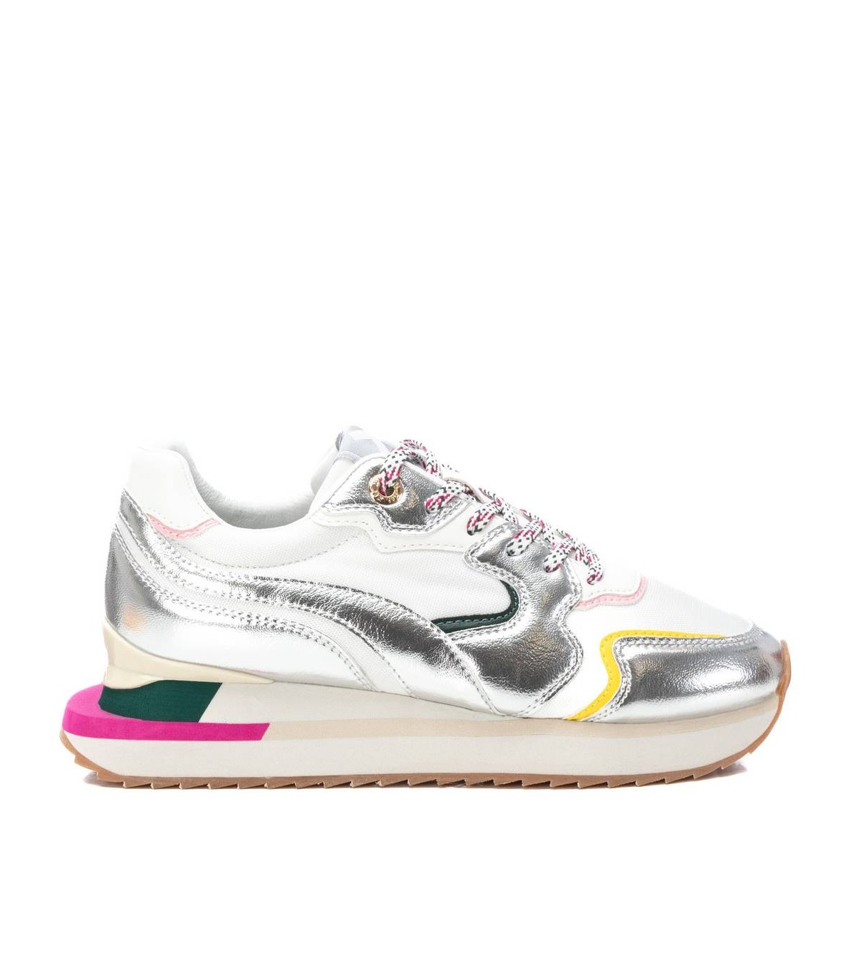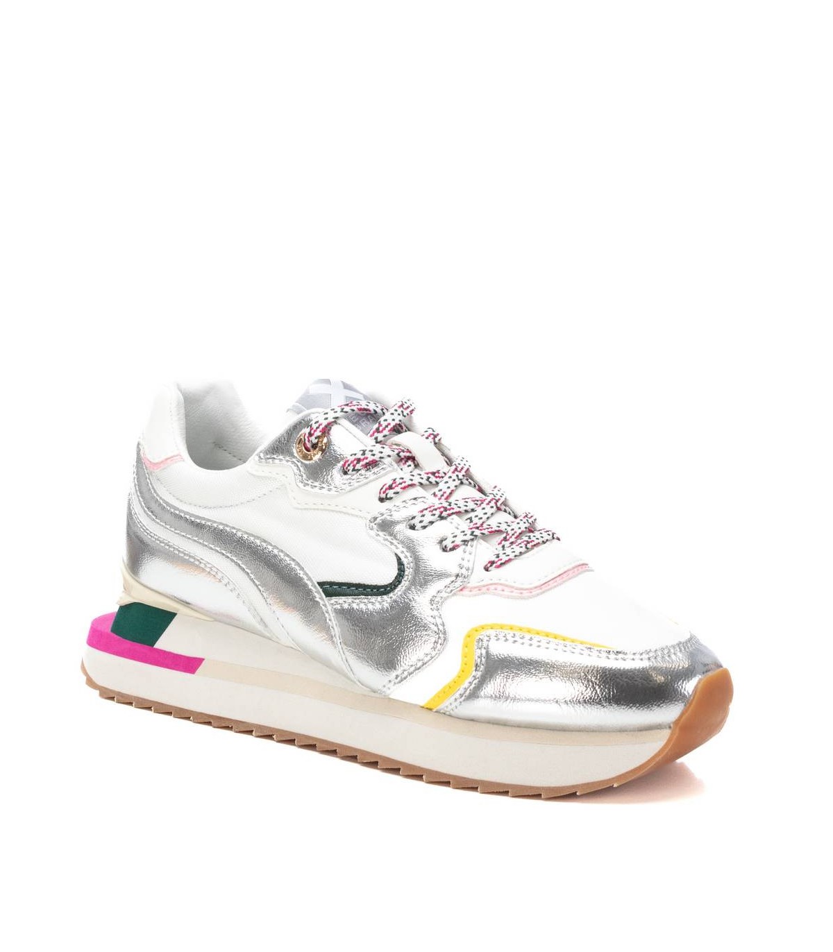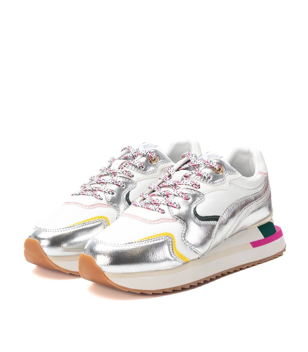 Zapatilla de mujer, de la marca Xti. Fabricadas en material metalizado que imita la piel, combinada con textil. Novedoso diseño fabricado con suela de goma antideslizante. Con plantilla extraíble.
