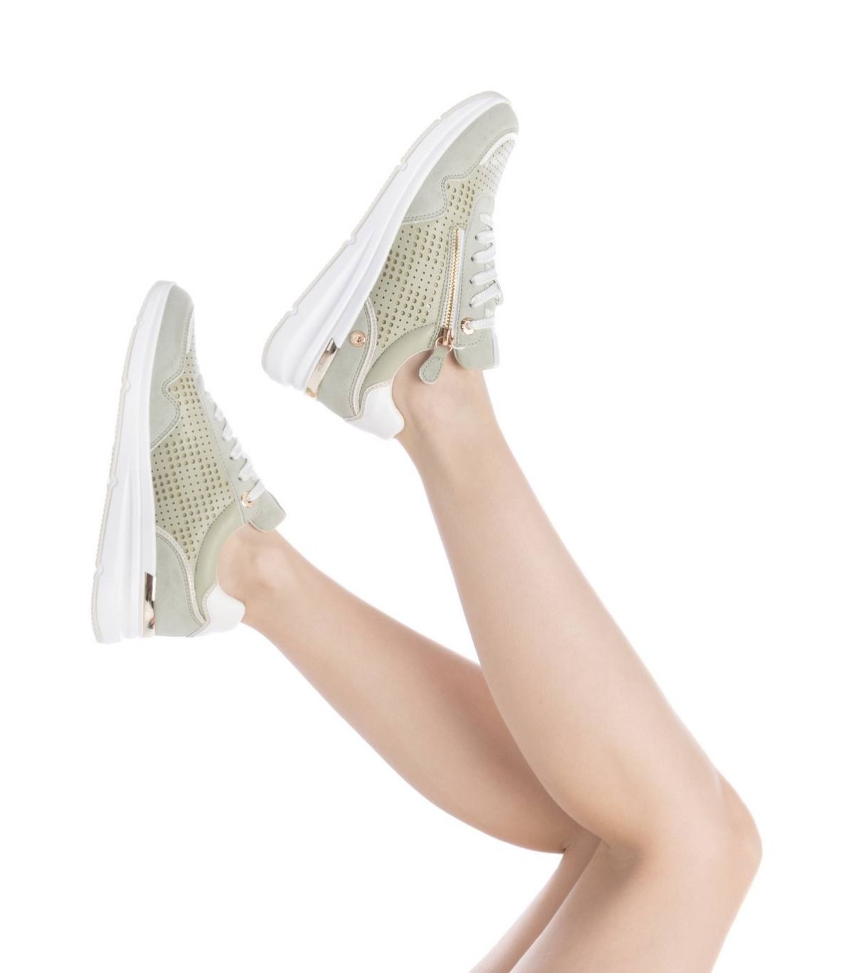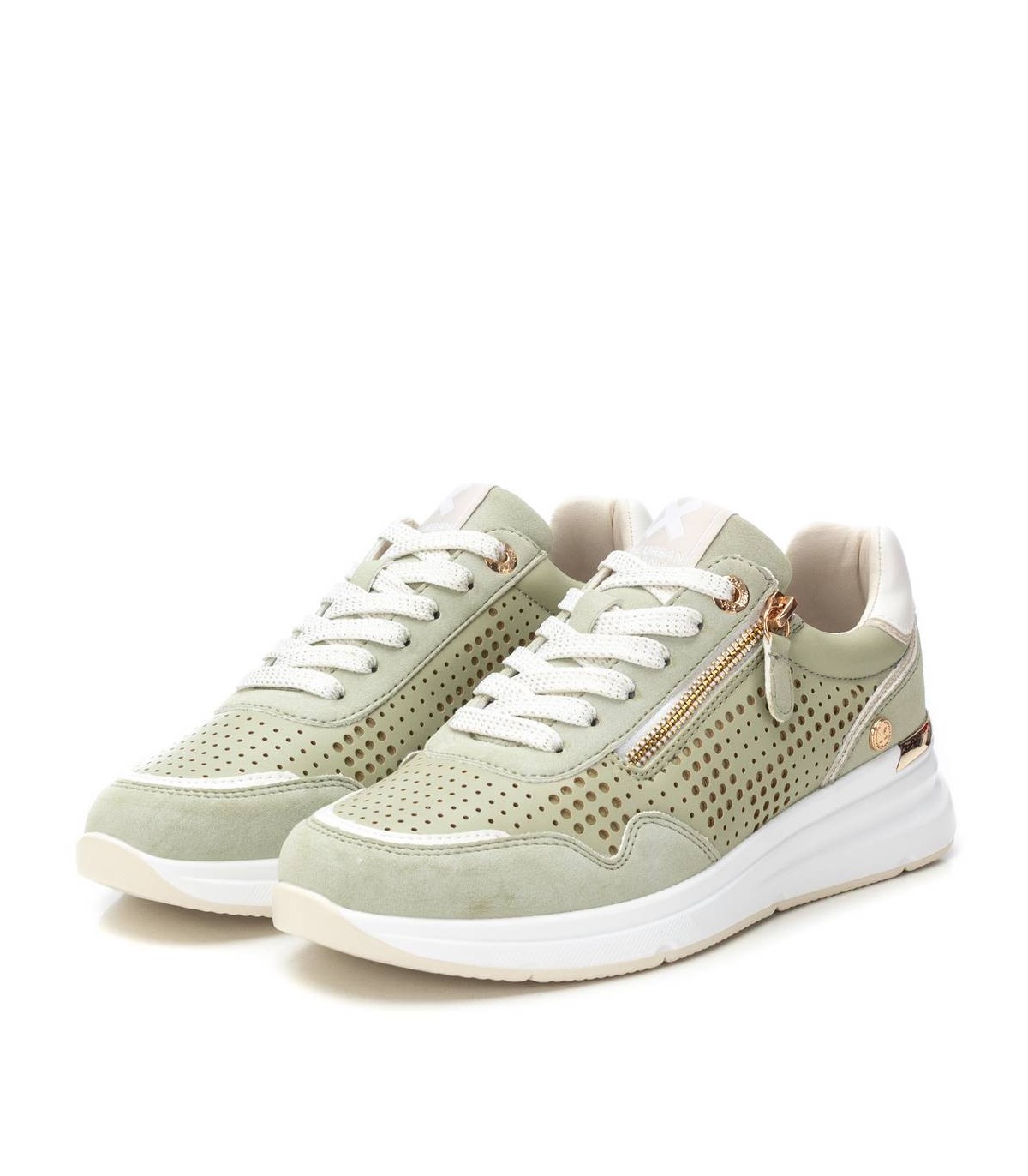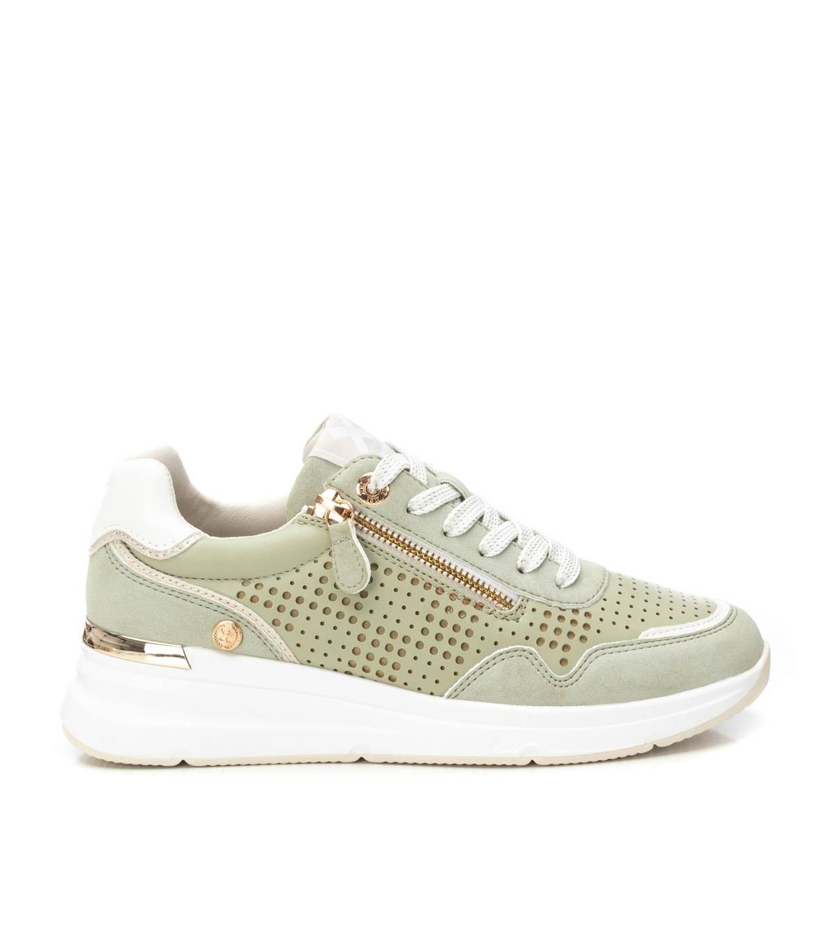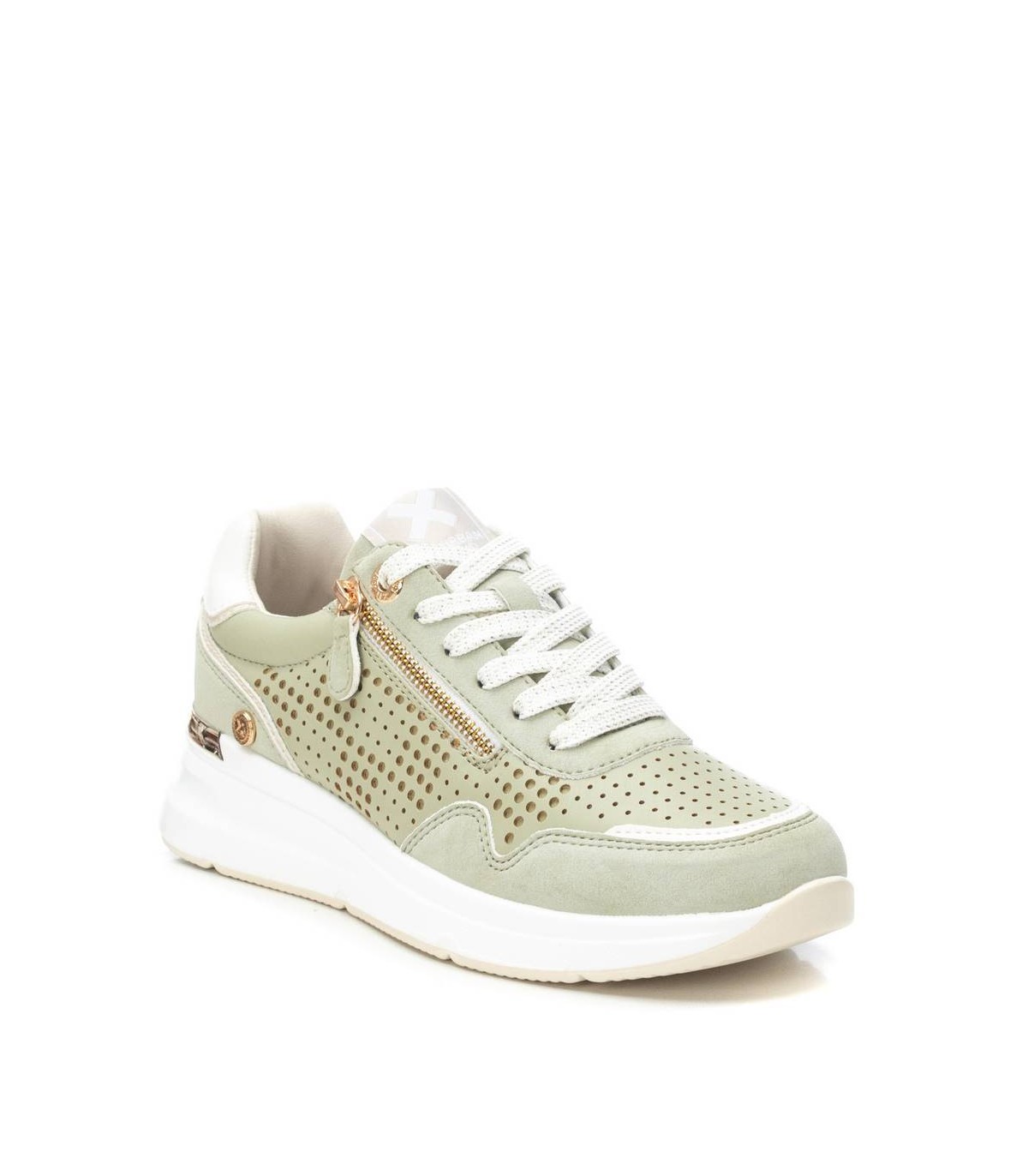 Zapatilla de mujer, de la marca Xti. Fabricada en material que imita la piel con un bonito troquelado. Modelo con cremallera para facilitar su puesta. Suela deportiva y antideslizante. Con plantilla extraíble.
