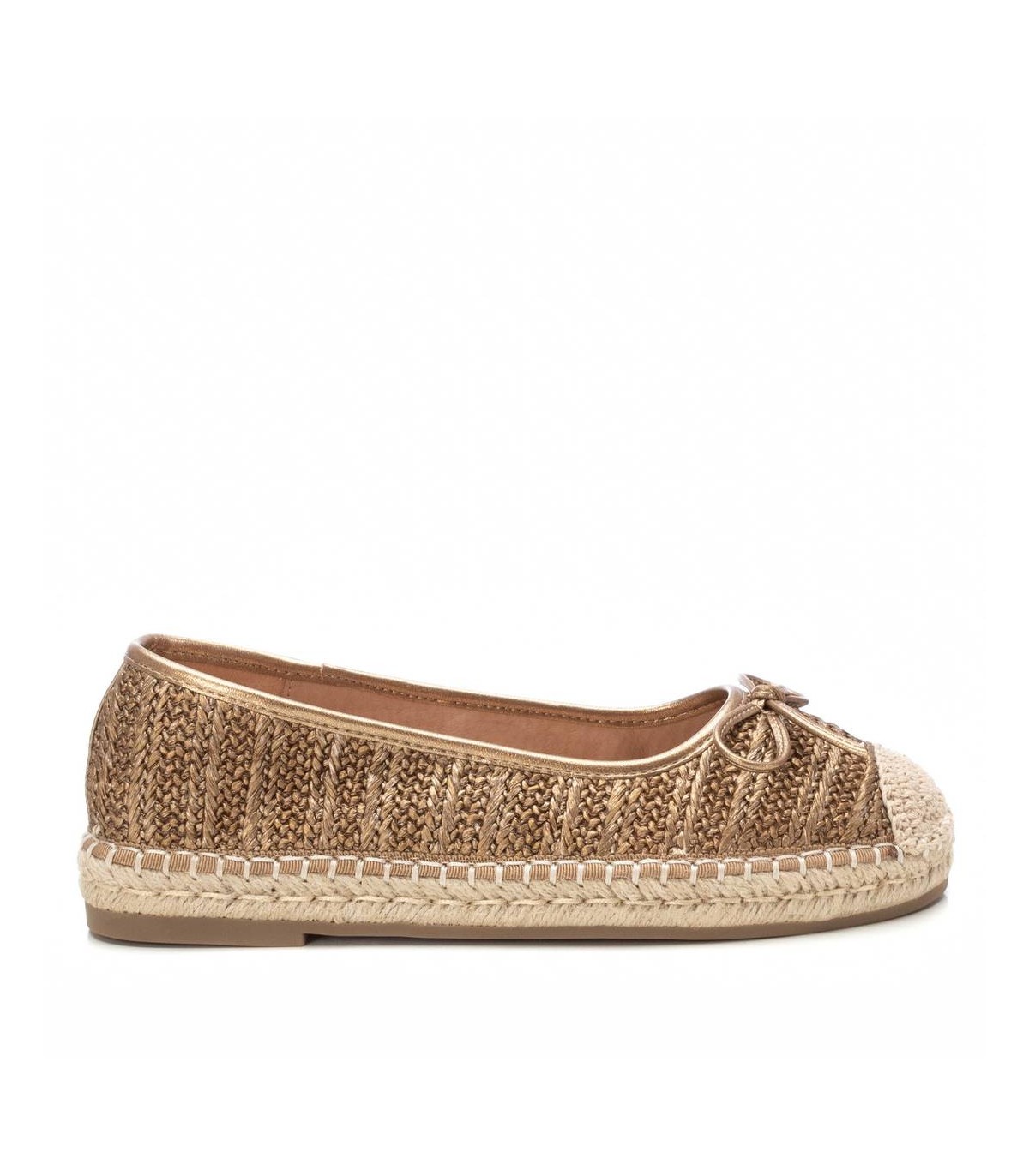 Bailarina de mujer, de la marca Xti. Fabricada en material de rafia. Modelo plano forrado con yute y suela antideslizante. Detalle de lazo en la parte delantera. Super fresco para utilizar en todos tus conjuntos del verano. Este modelo ha obtenido el certificado vegano por la organización mundial PETA (Organización de los derechos de los animales).
