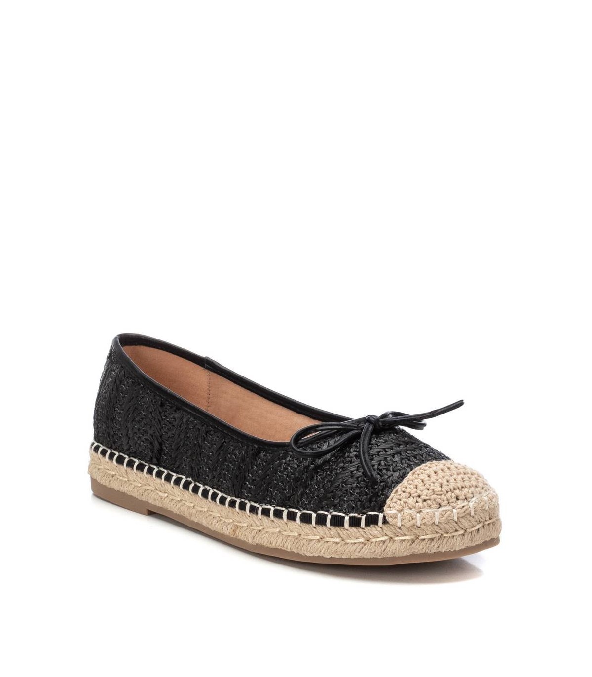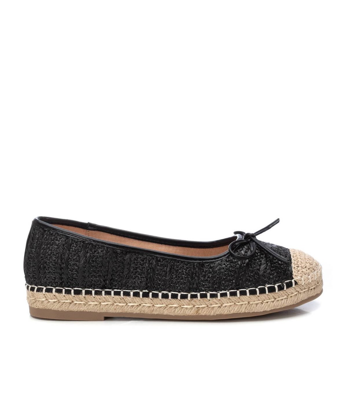Bailarina de mujer, de la marca Xti. Fabricada en material de rafia. Modelo plano forrado con yute y suela antideslizante. Detalle de lazo en la parte delantera. Super fresco para utilizar en todos tus conjuntos del verano. Este modelo ha obtenido el certificado vegano por la organización mundial PETA (Organización de los derechos de los animales).
