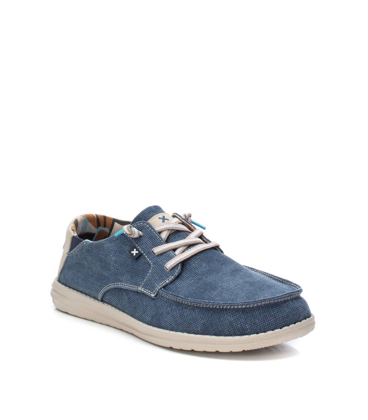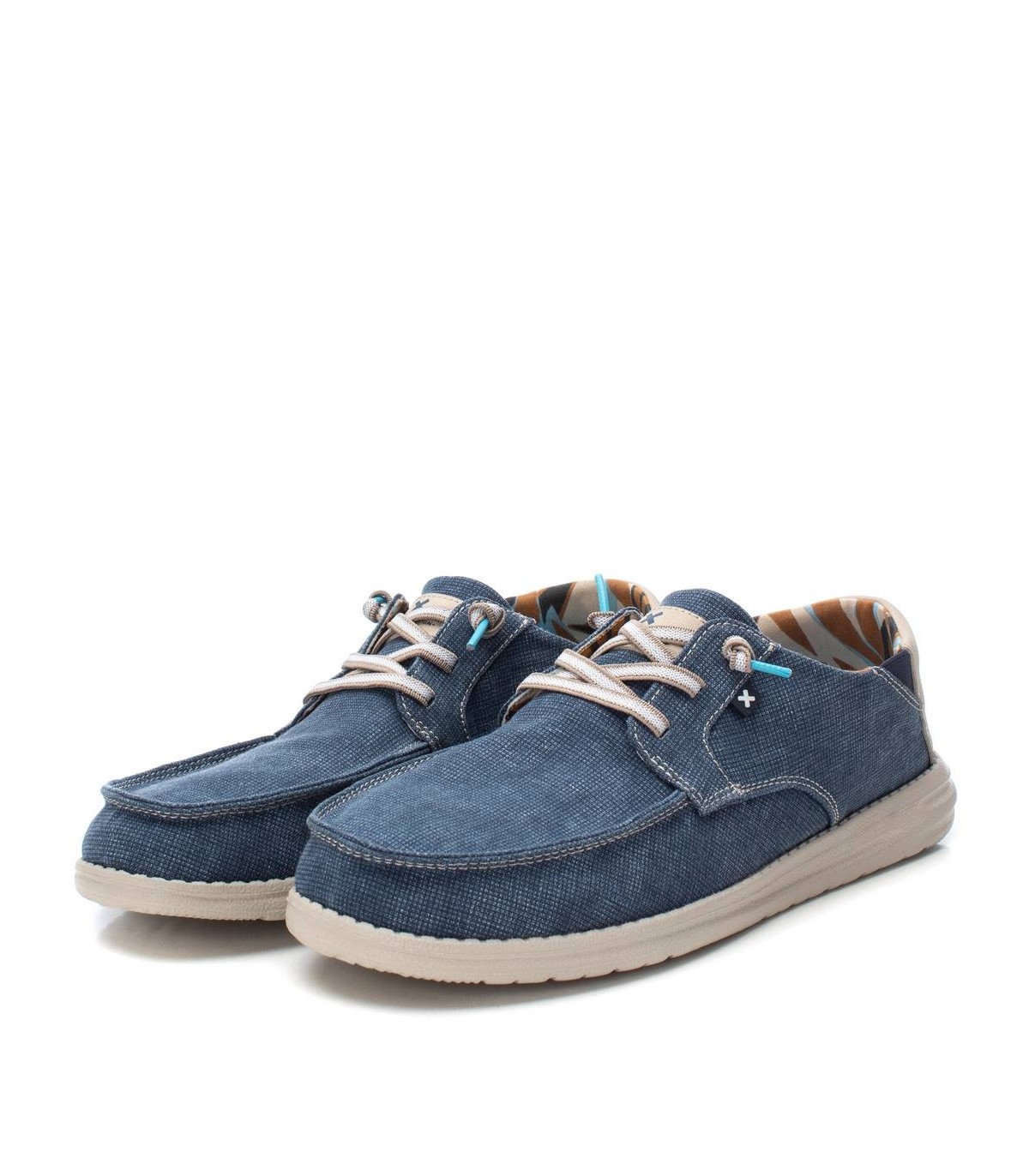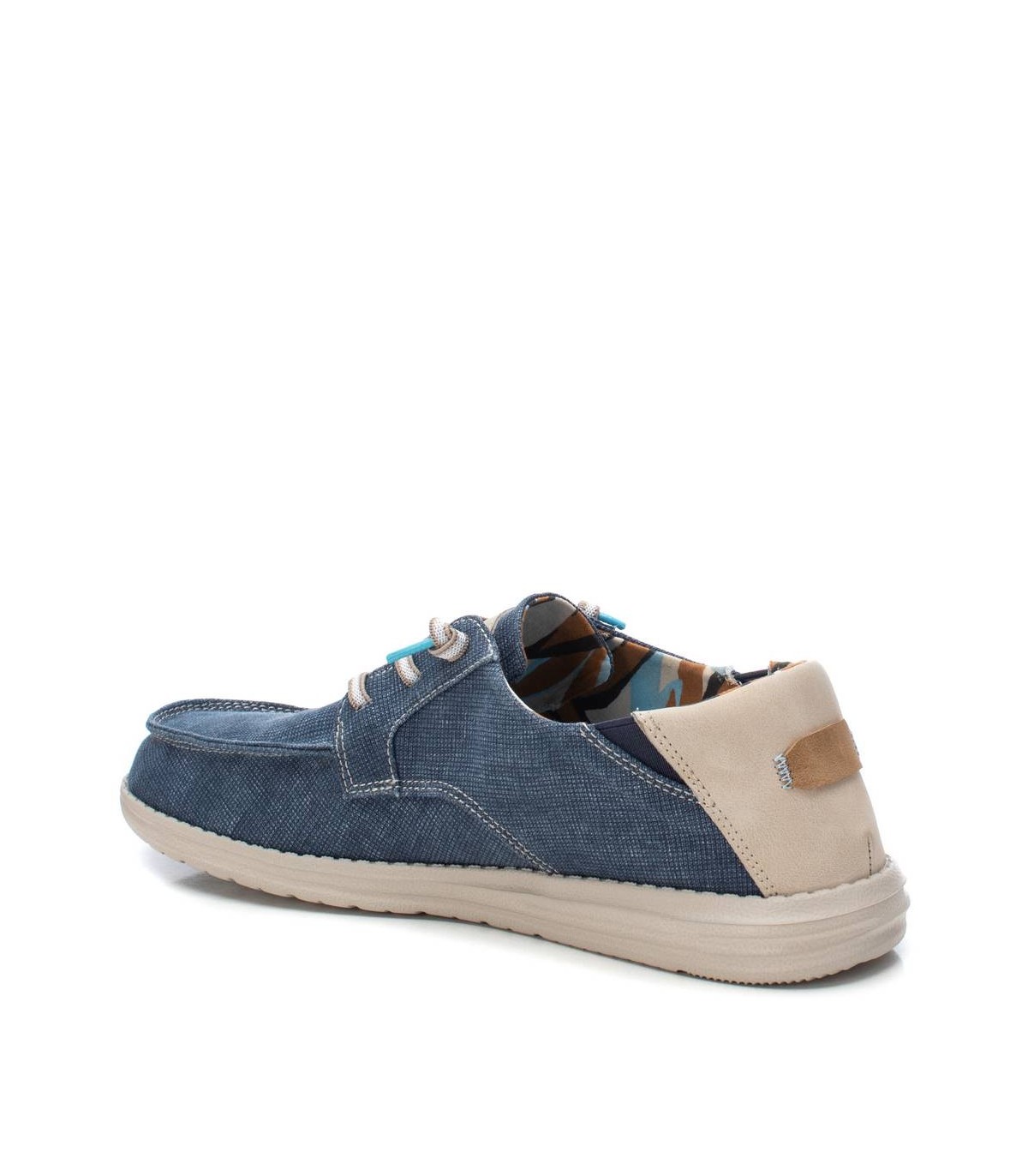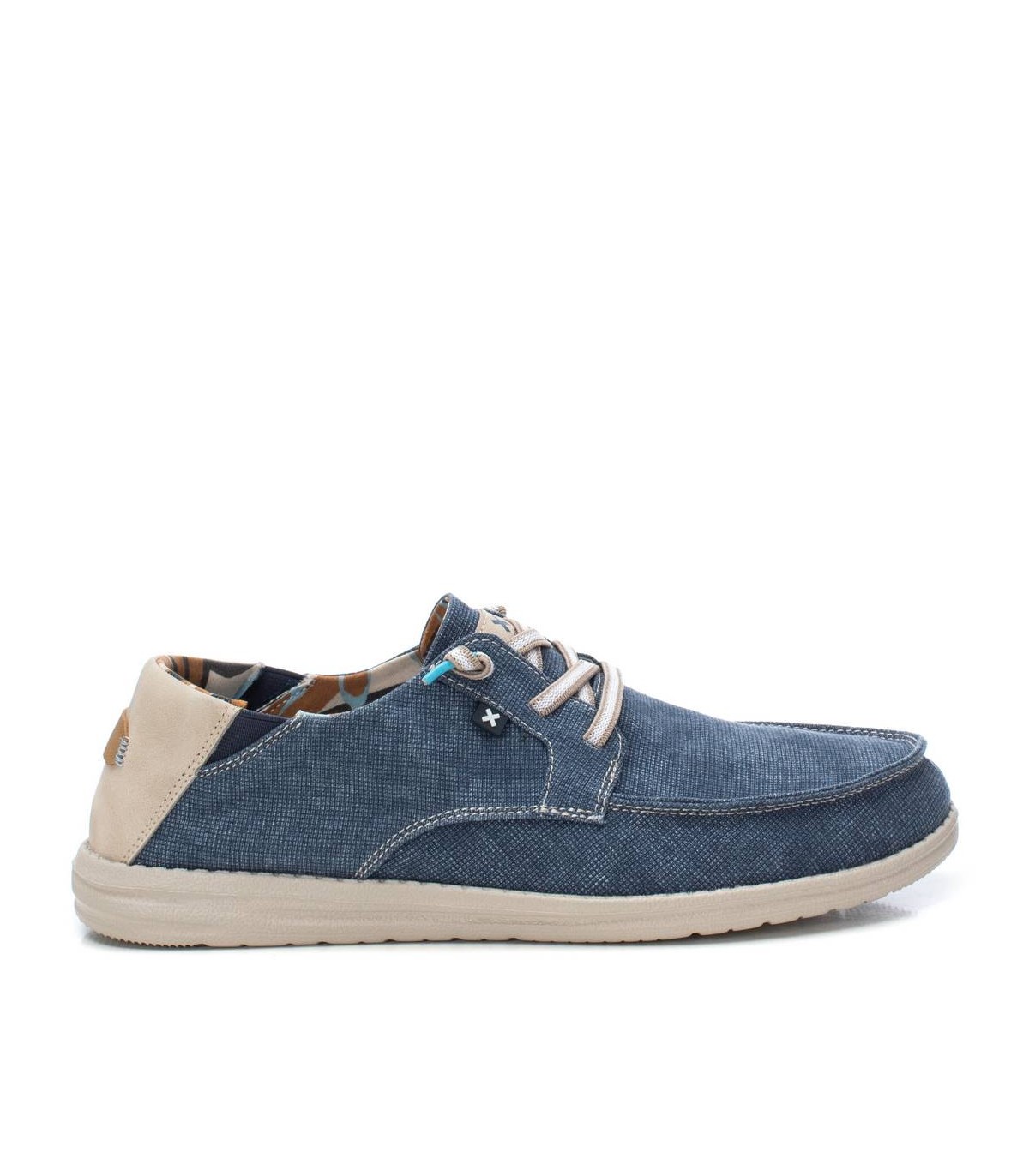 Zapato de hombre tipo náutico, de la marca Xti. Fabricado en material textil, con cordones. Suela de goma antideslizante. Con plantilla extraíble. Este modelo ha obtenido el certificado vegano por la organización mundial PETA (Organización de los derechos de los animales).
