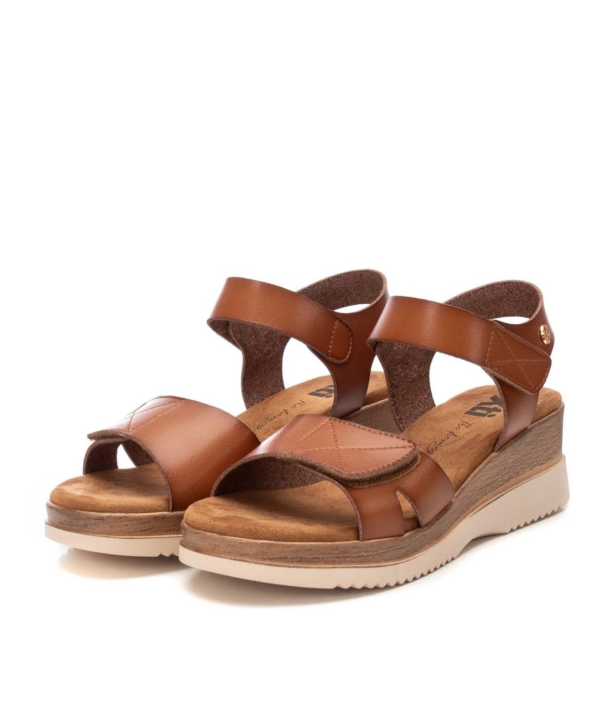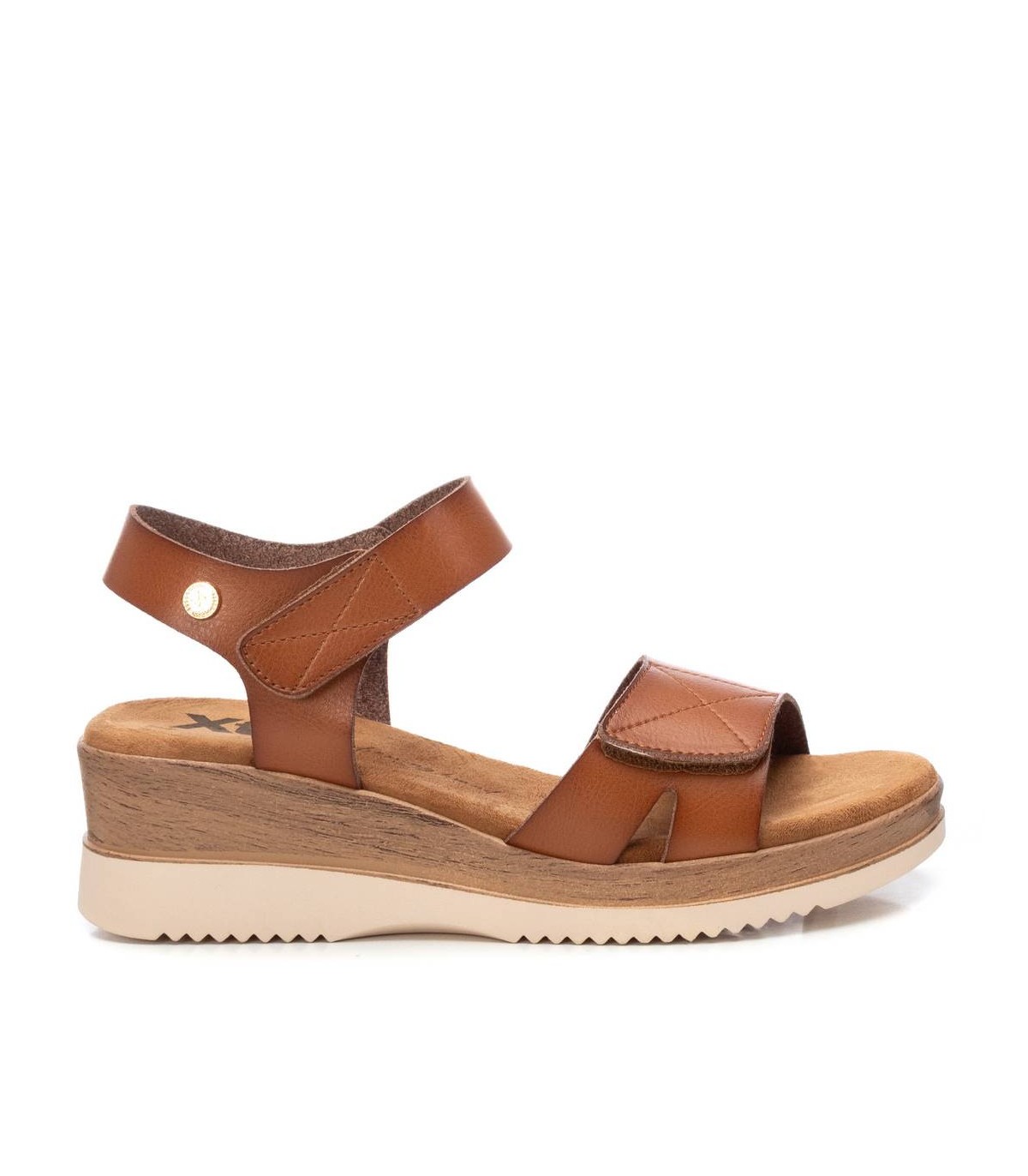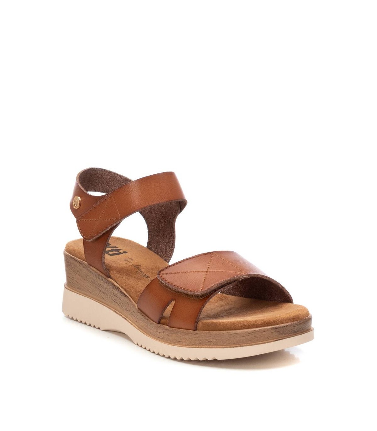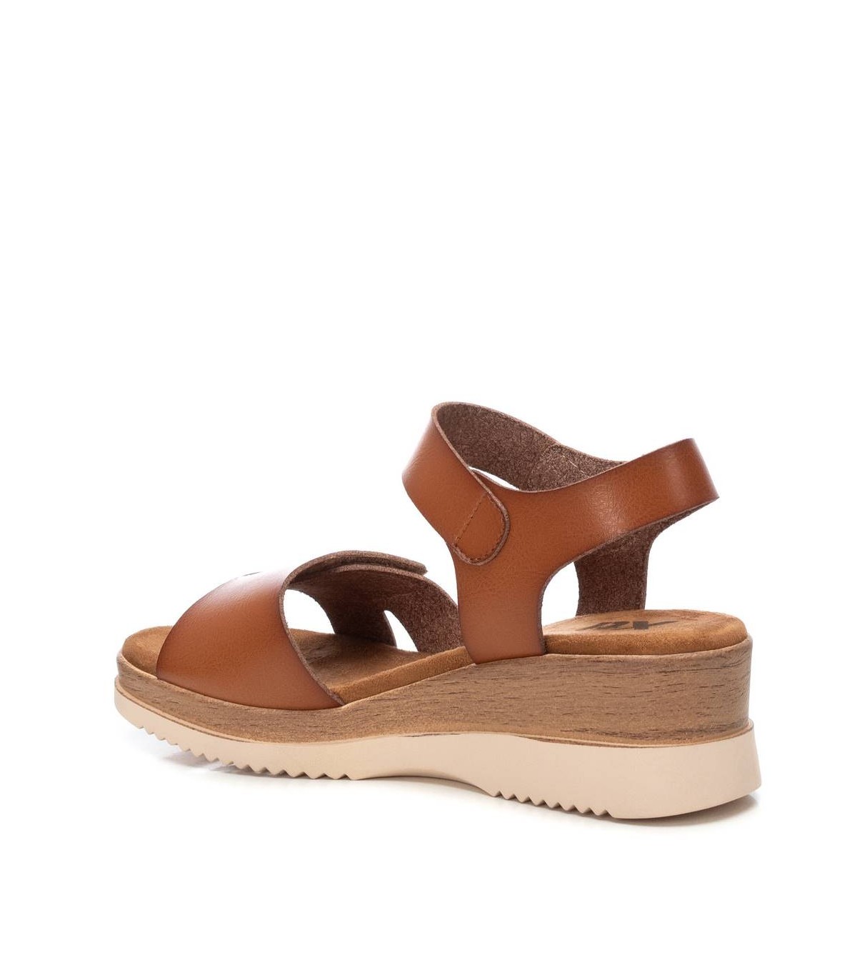 Sandalia de mujer, de la marca Xti. Fabricada en material que imita la piel. Modelo de pala con sujeción al tobillo mediante cierre adhesivo. Fácil de calzar y super cómoda. Cuña baja que proporciona gran comodidad y suela antideslizante.