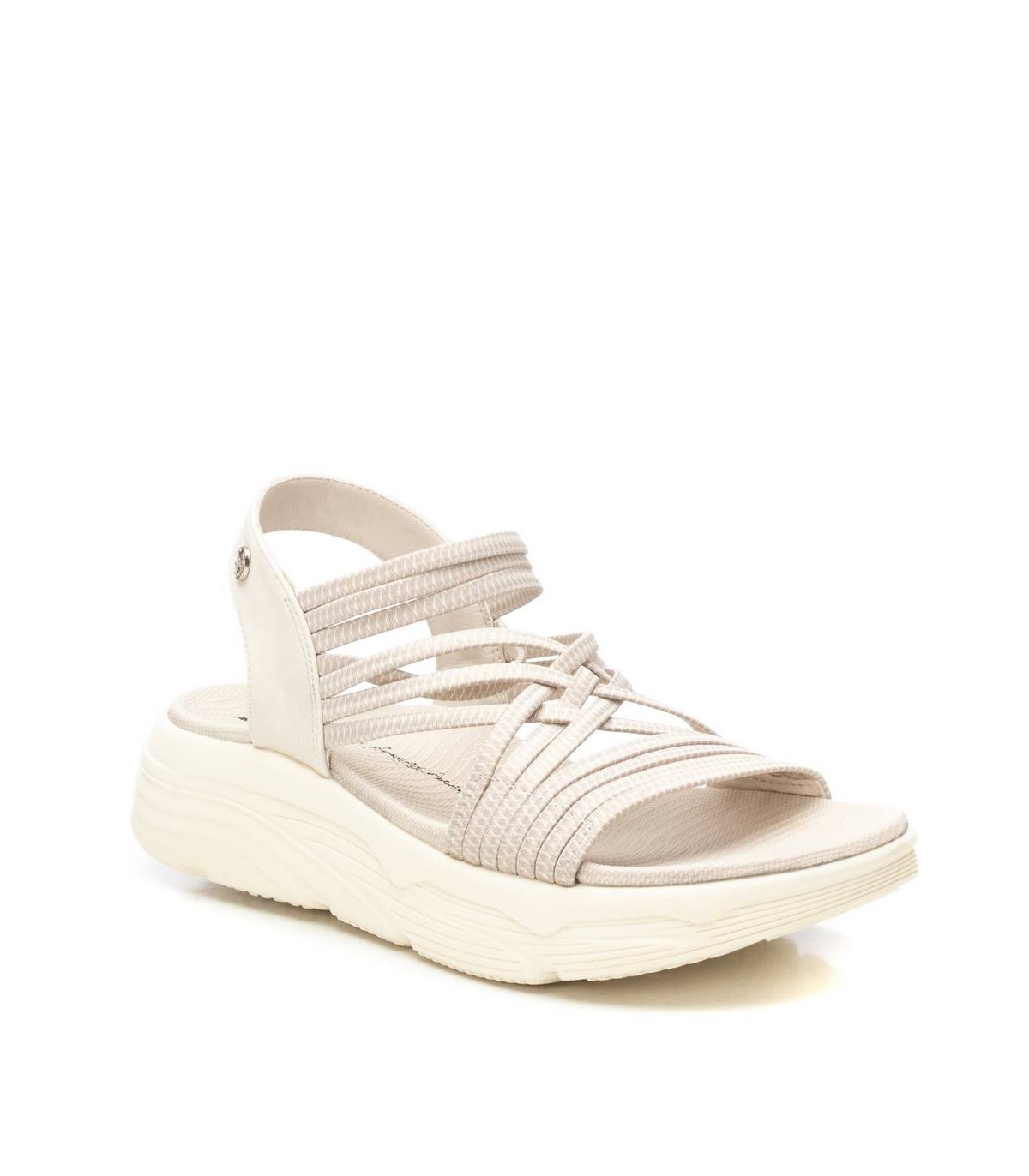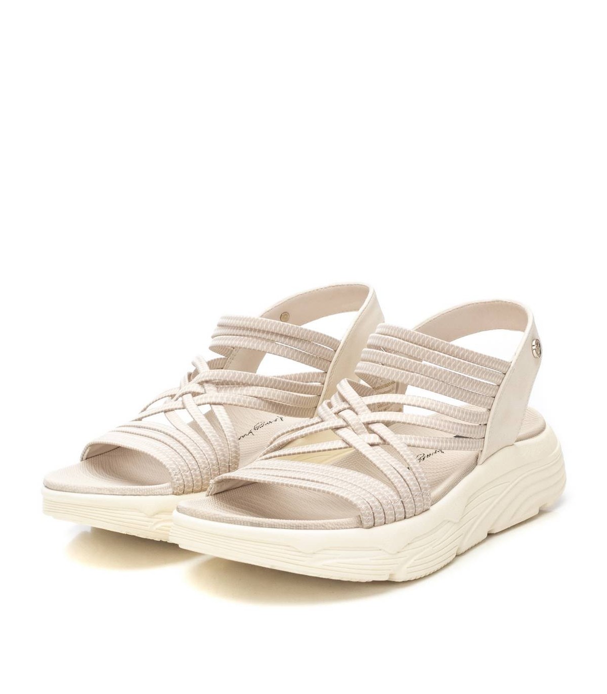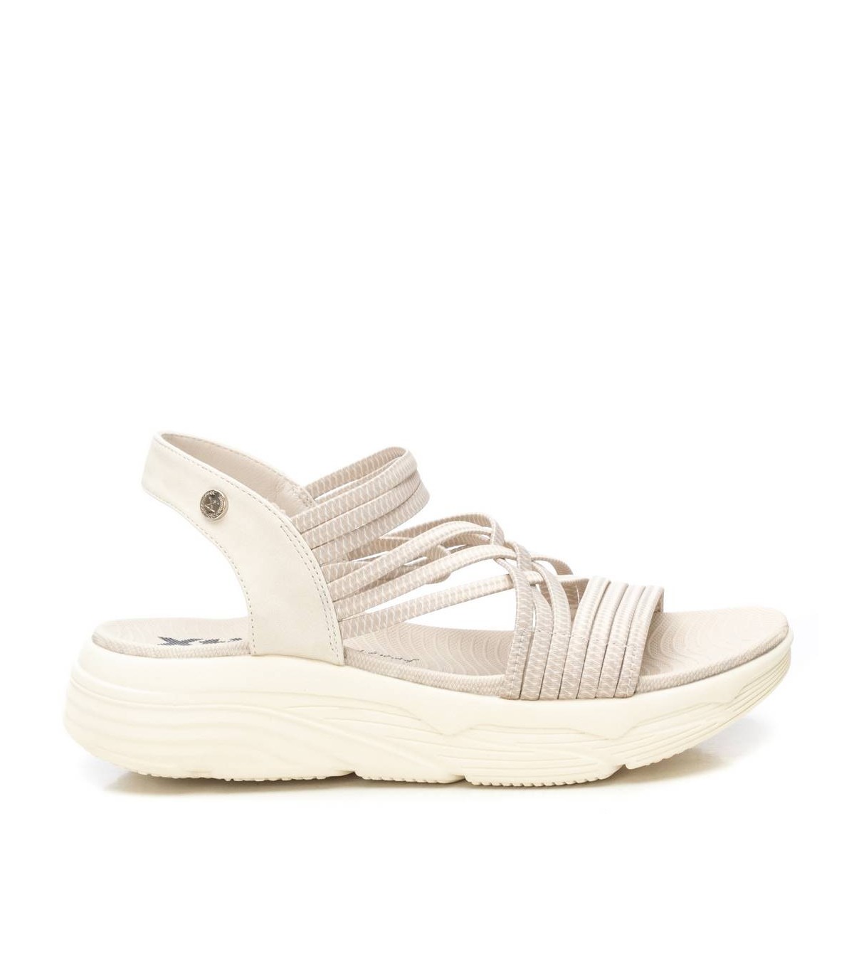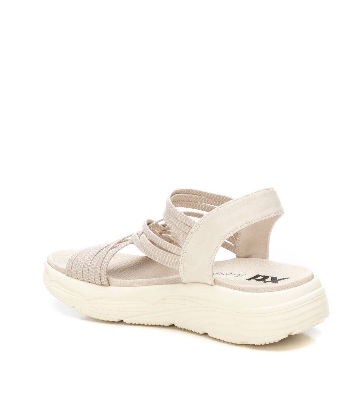 Sandalia de mujer, de la marca Xti. Fabricada en material textil elástico combinada con material que imita la piel para una mayor sujeción y comodidad. Suela gruesa de goma antideslizante.