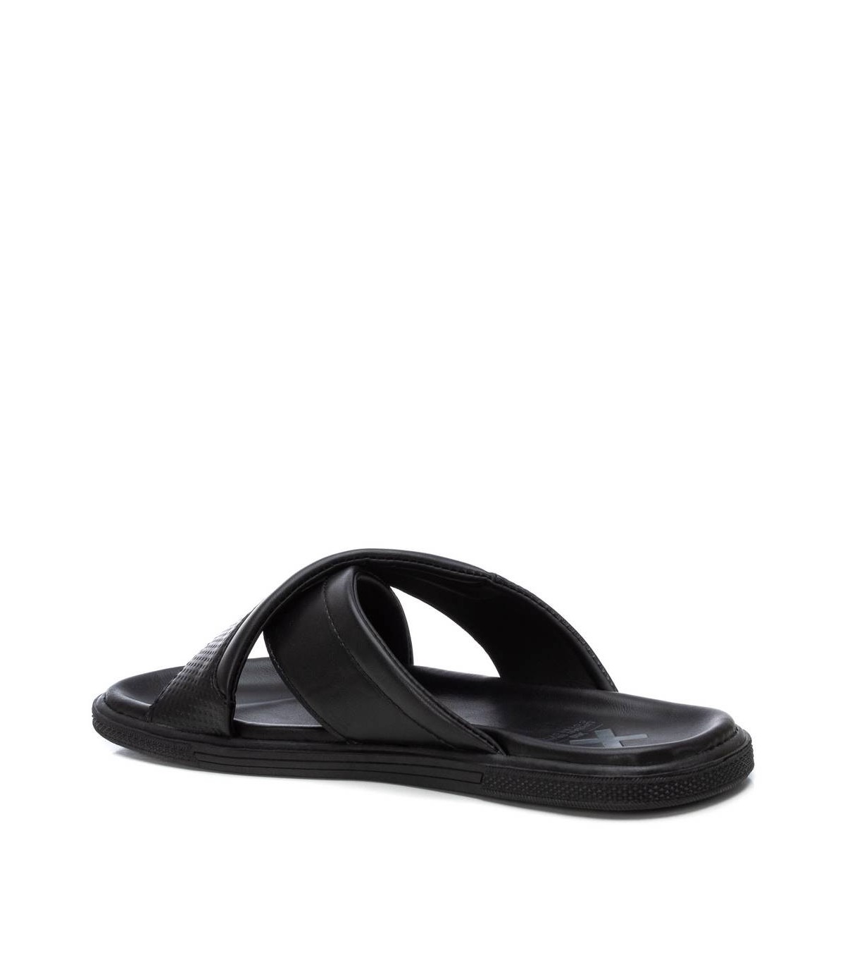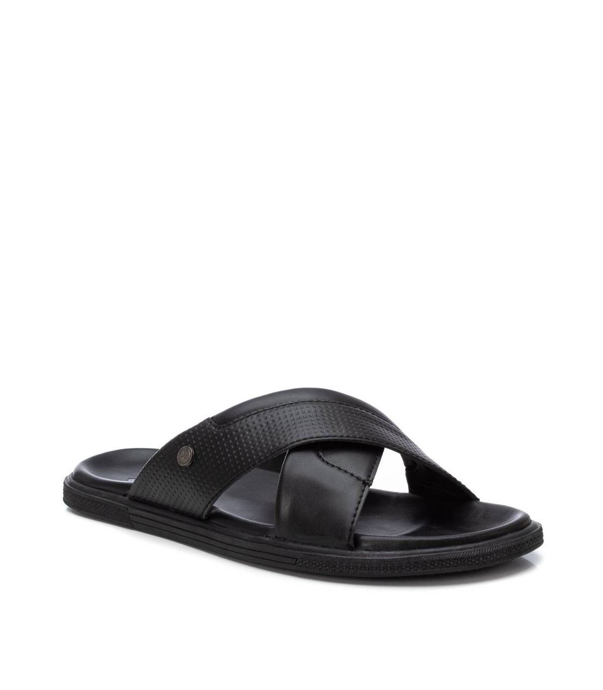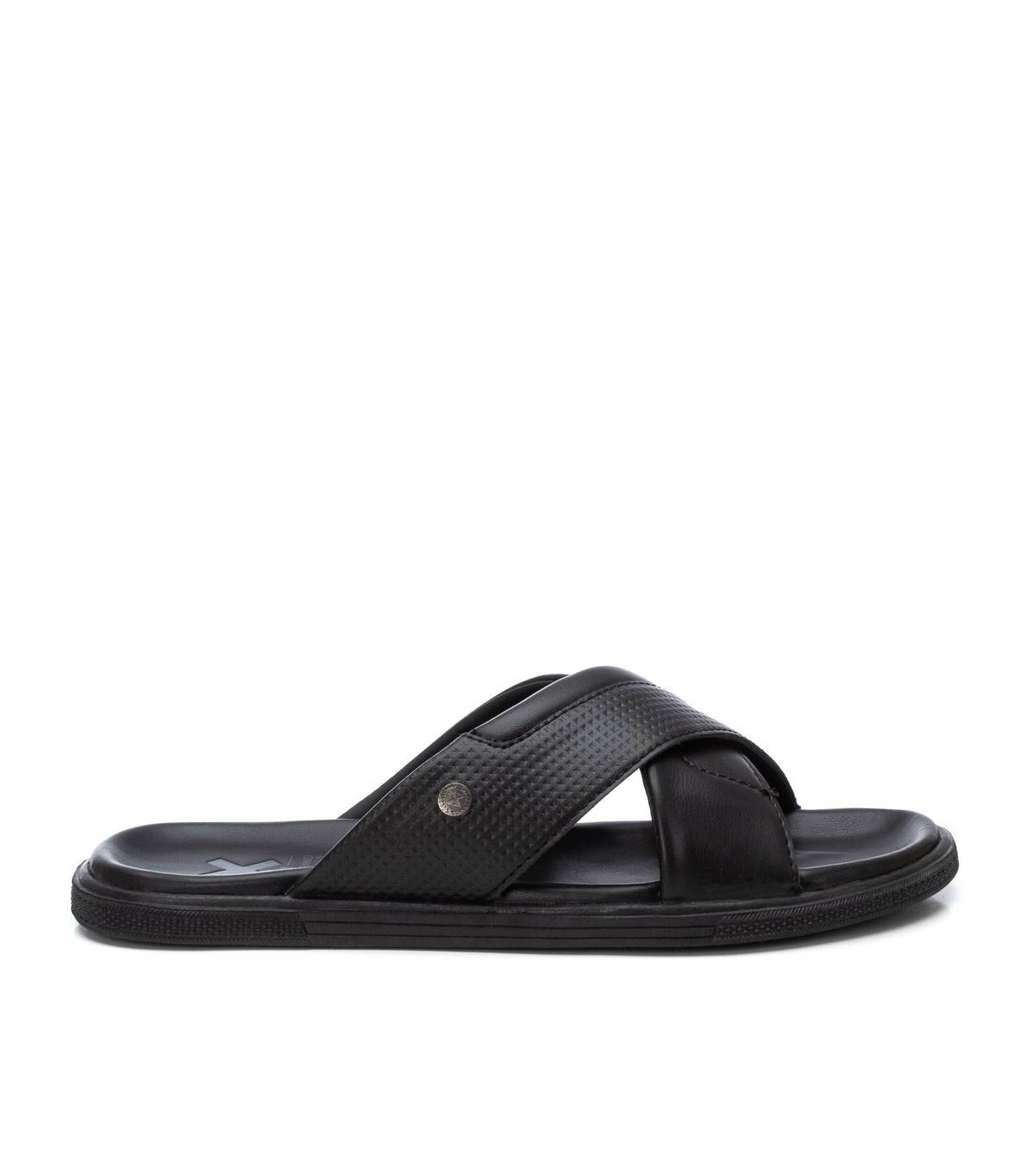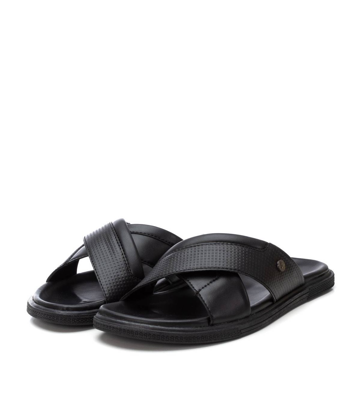 Sandalia de hombre, de la marca Xti. Fabricada en material que imita a la piel. Diseño cruzado. Cómoda planta con suela de goma antideslizante. Este modelo ha obtenido el certificado vegano por la organización mundial PETA (Organización de los derechos de los animales).