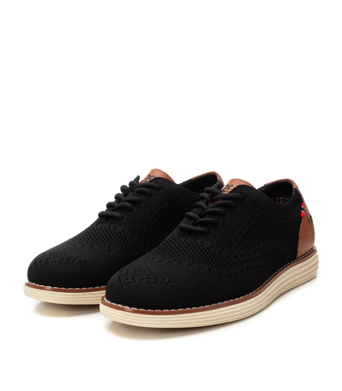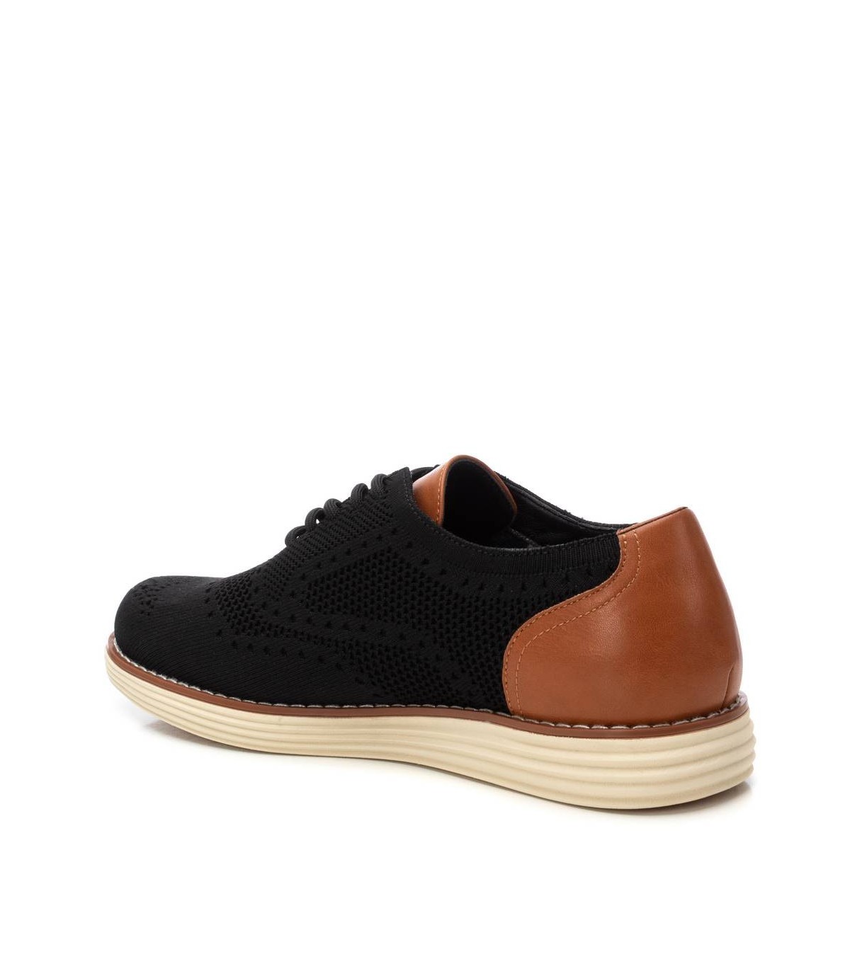 Zapato de caballero, de la marca Xti. Fabricado en material textil combinado en el talón con material que imita la piel. Modelo plano, cómodo y fácil de combinar. Suela de goma antideslizante. Este modelo ha obtenido el certificado vegano por la organización mundial PETA (Organización de los derechos de los animales).