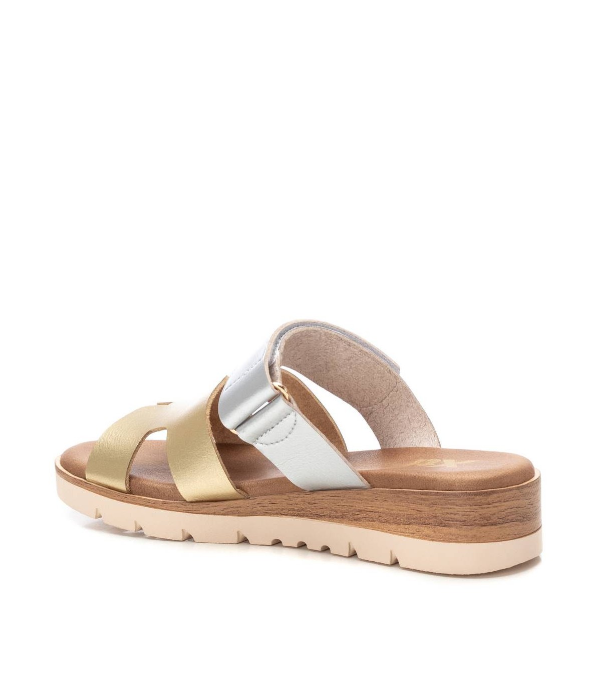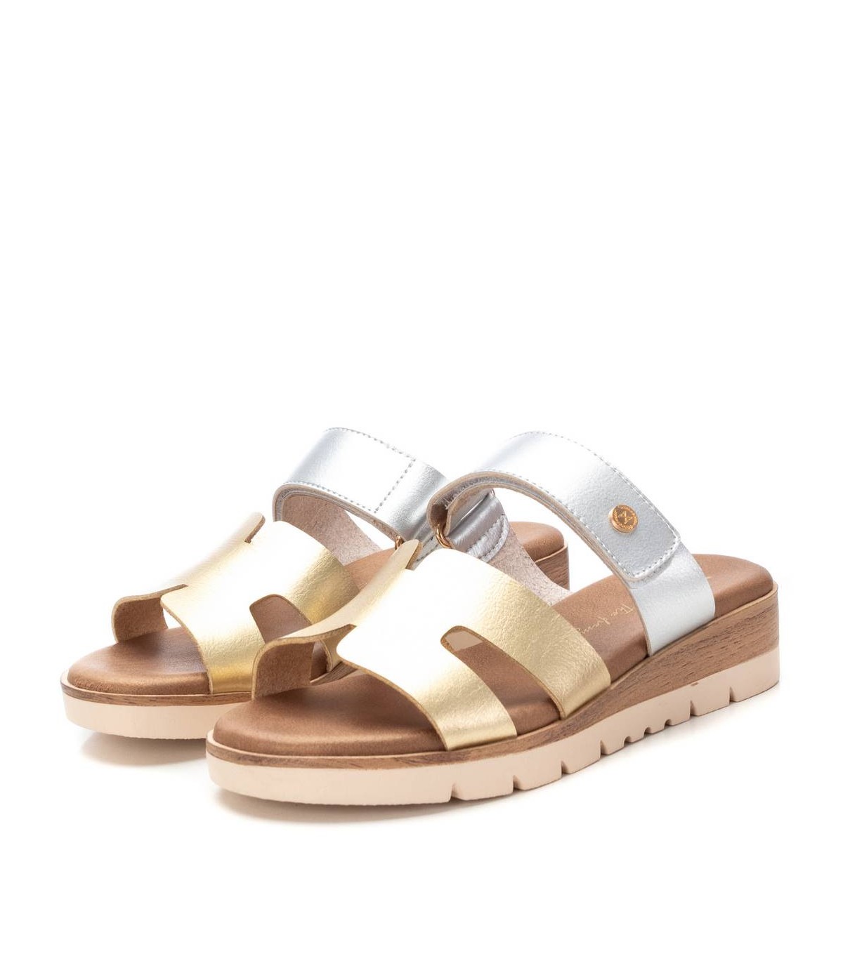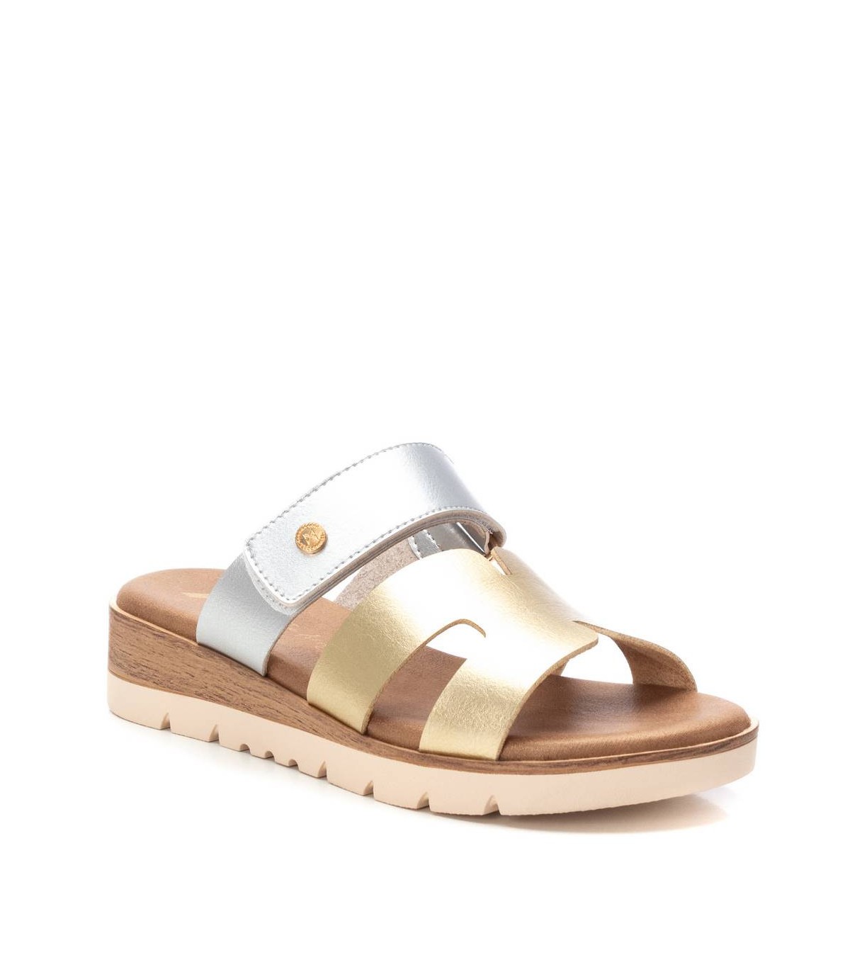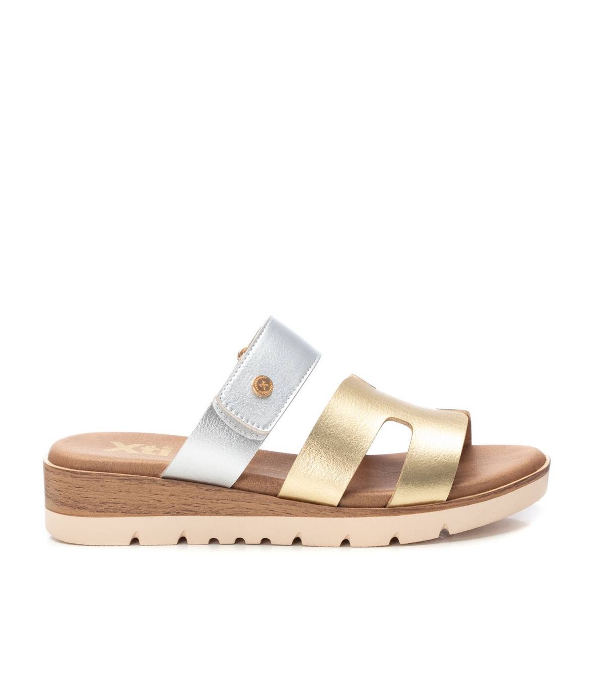 Sandalia de mujer, de la marca Xti. Modelo de doble pala bicolor sin sujeción al tobillo. Super cómoda para llevarlas durante todo el día. Suela con pequeña cuña y antideslizante.