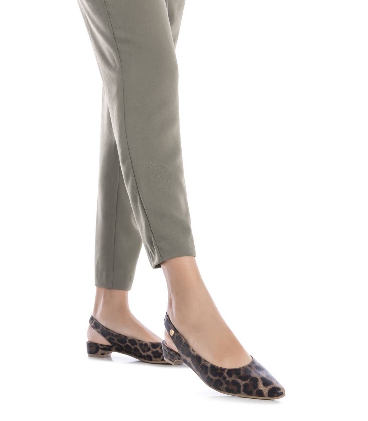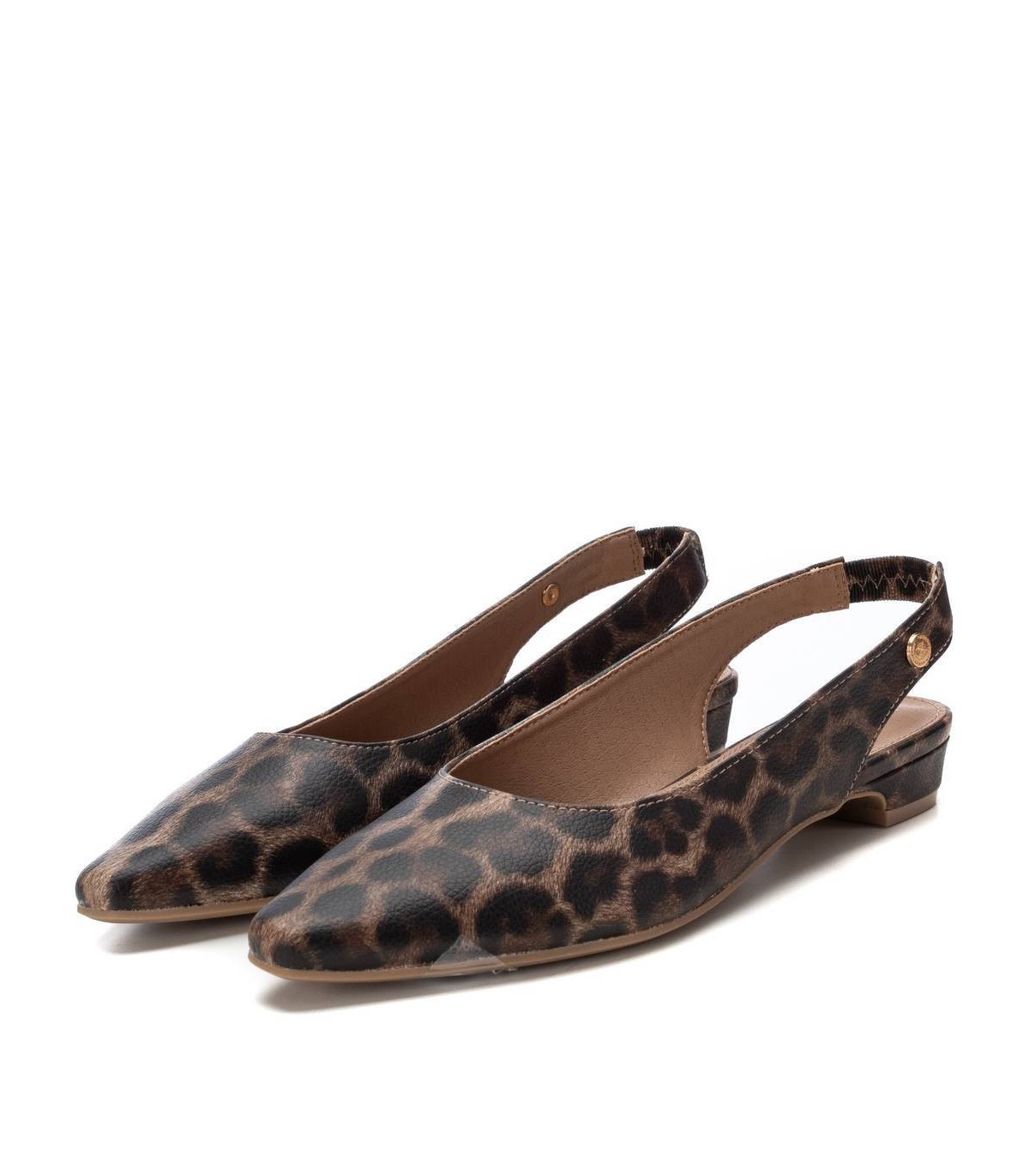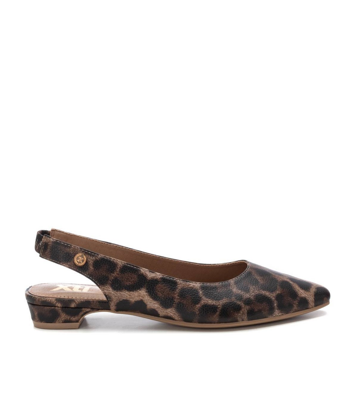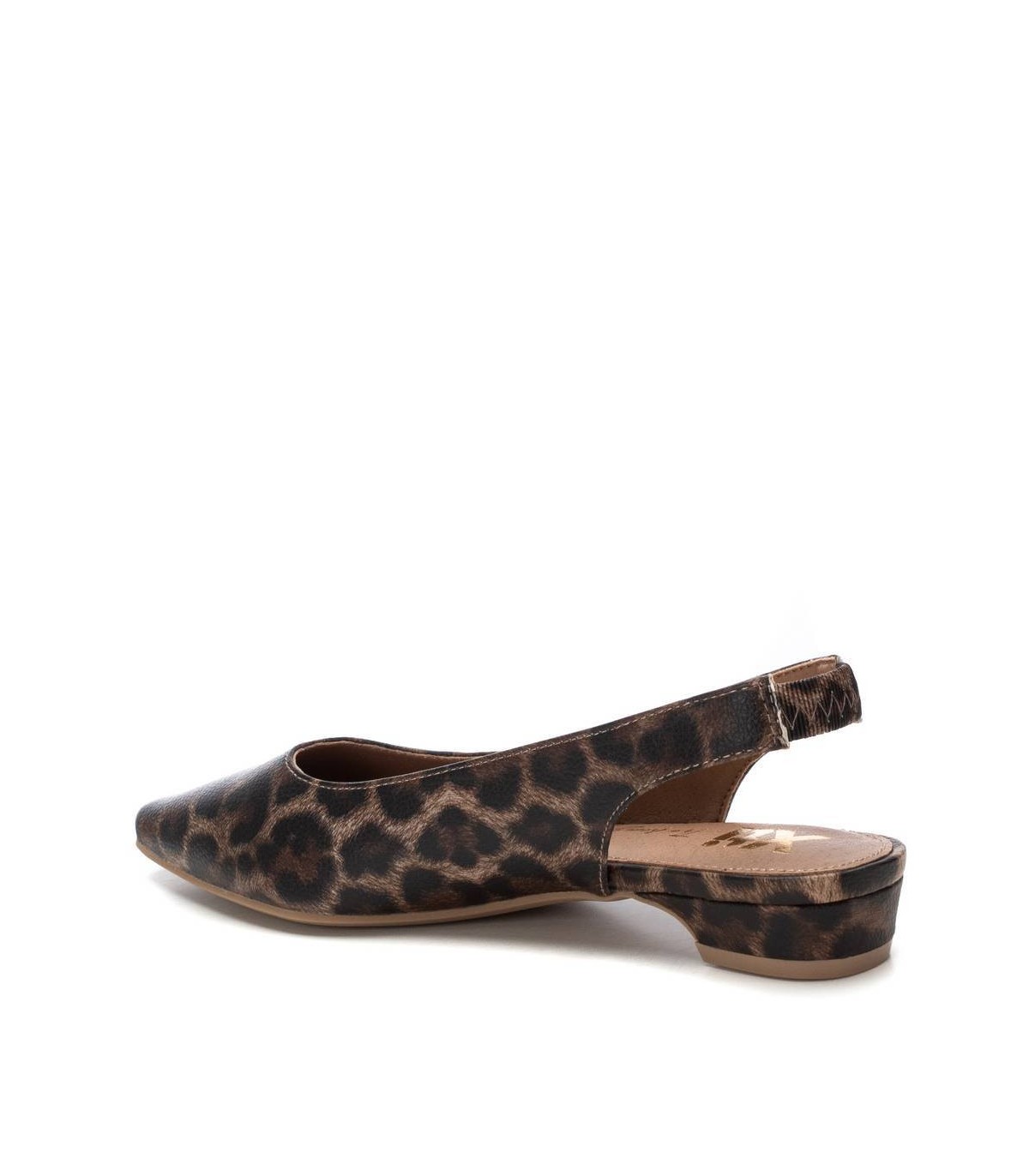 Zapato destalonado de mujer, de la marca Xti. Fabricado en material que imita la piel con animal print. Modelo con pulsera elástica en el tobillo con muy buena sujeción. Ideal para todos tus conjuntos. Este modelo ha obtenido el certificado vegano por la organización mundial PETA (Organización de los derechos de los animales).