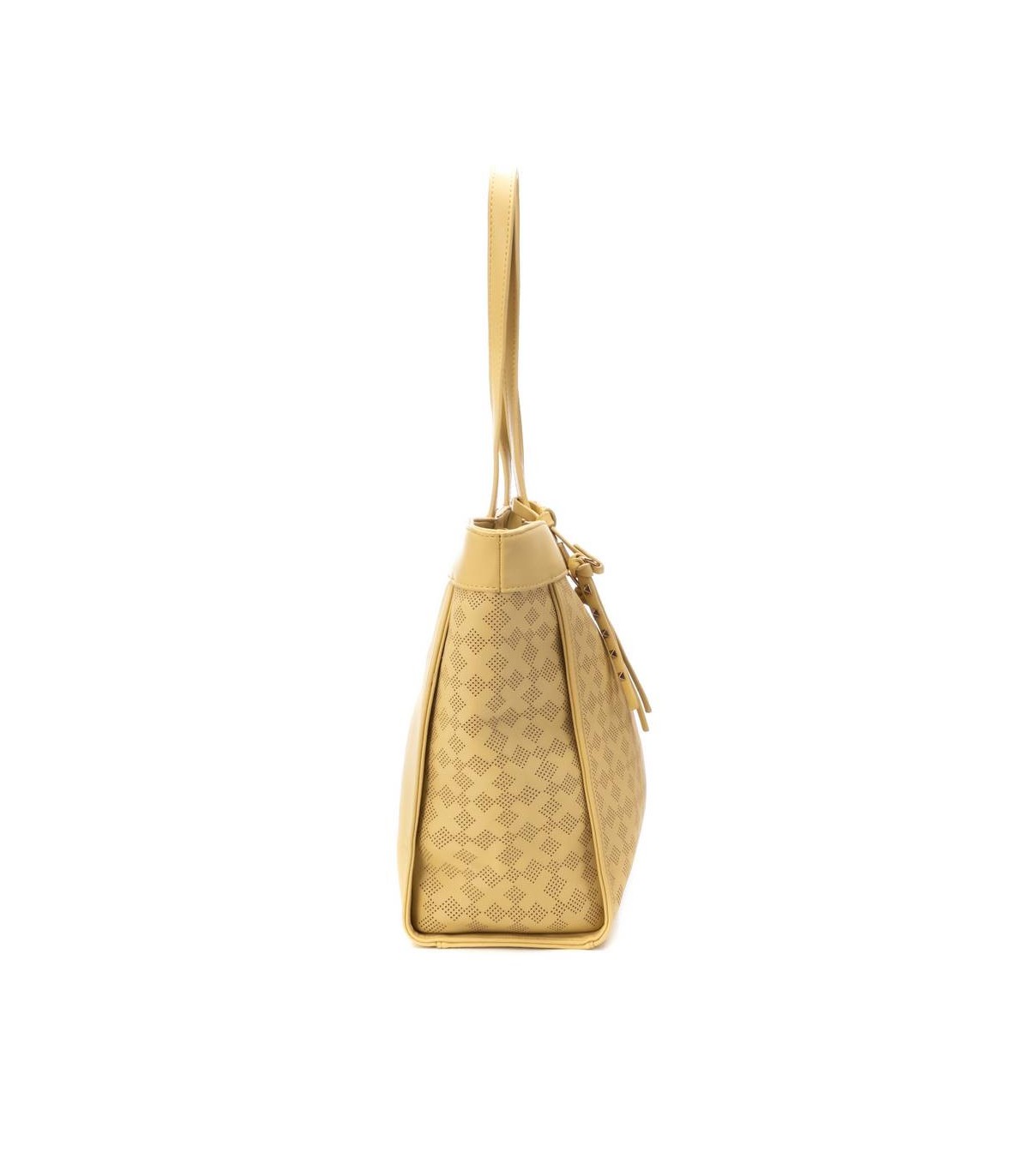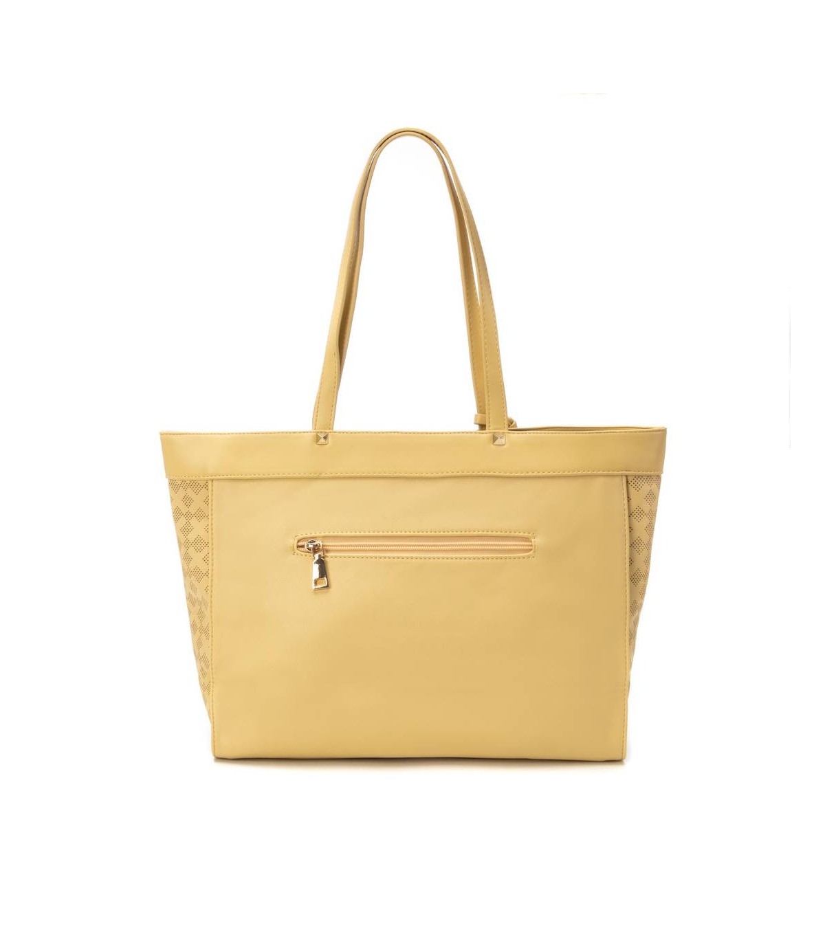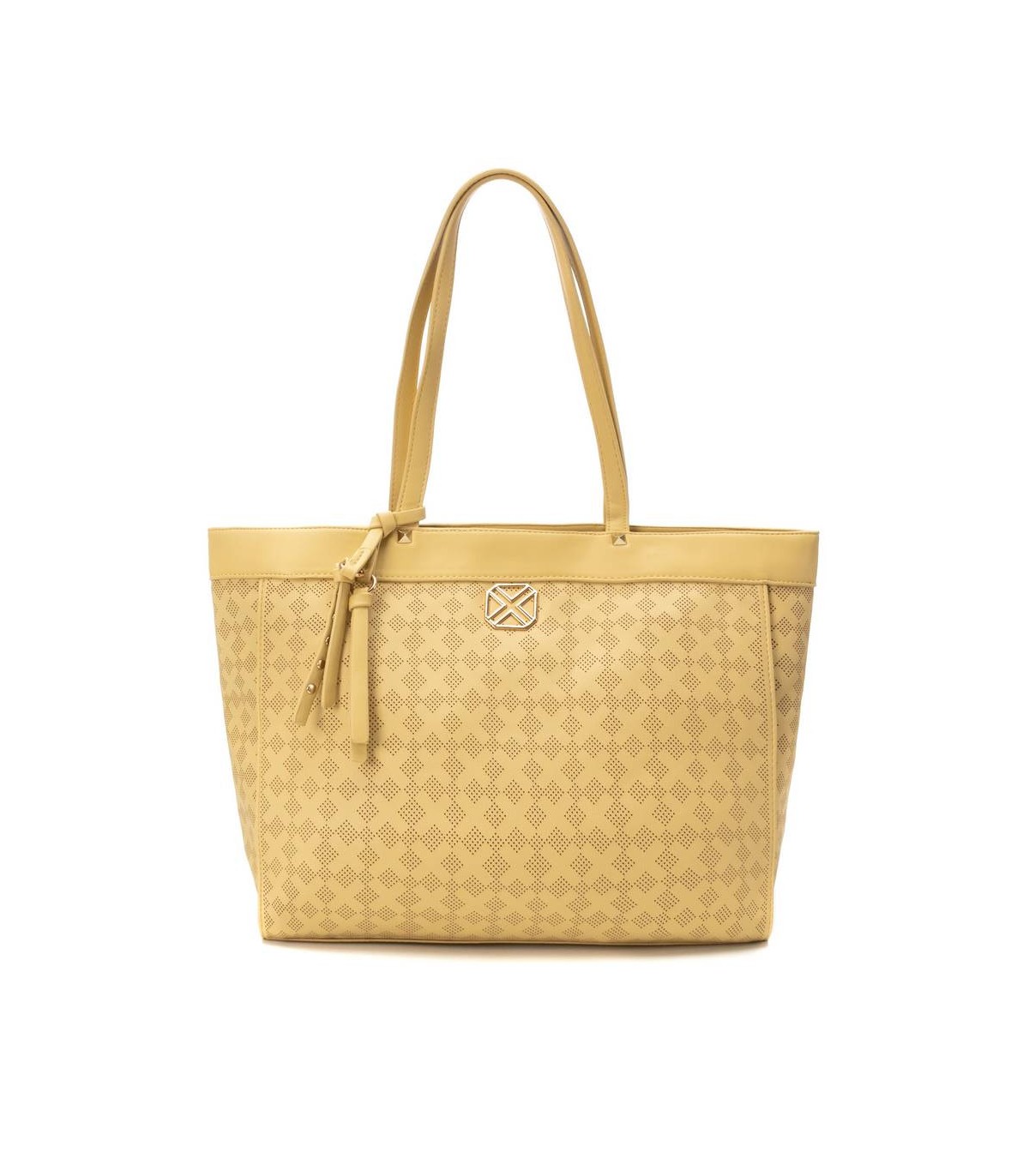 Bolso grande de hombro, marca Xti. Fabricado en material que imita la piel de alta calidad. Detalle marcado con láser. Detalles de oro. Cierre cremallera y bolsillos para proteger tus pertenencias. Medidas 29x20x11cm. Este modelo ha obtenido el certificado vegano por la organización mundial PETA (Organización de los derechos de los animales).